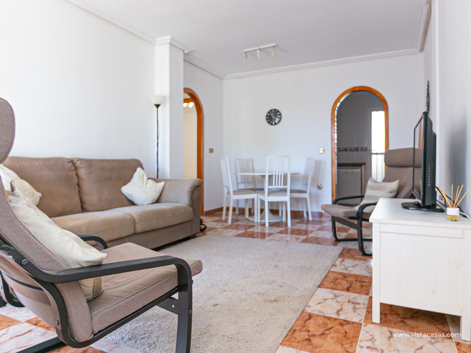 Well presented top floor, penthouse apartment with solarium, located in the popular Pinada Golf 2 complex in Villamartin. The apartment occupies a super corner position, giving it plenty of natural light and open views. The penthouse offers 2 double bedrooms with fitted wardrobes, full family bathroom, spacious living and dining area with direct access to a private balcony overlooking the communal gardens. The separate kitchen is fully fitted and includes a utility room for additional storage. A key feature of the apartment is the private rooftop solarium, which provides ample outdoor space, additional storage and open views across the surrounding area, including distant sea views. Sold as seen in great conditioning ,with white goods, air conditioning and much more. Set in a peaceful urbanisation the community is well maintained and offers landscaped gardens, communal parking and swimming pool for residents. Located easy walking distance to local amenities including the Villamartin Golf Course and Villamartin Plaza. Please note this is a top (second floor) apartment with no lift access and therefore would not be suitable for those with mobility issues. Contact us today to view this well presented and located home. Full photos to follow shortly