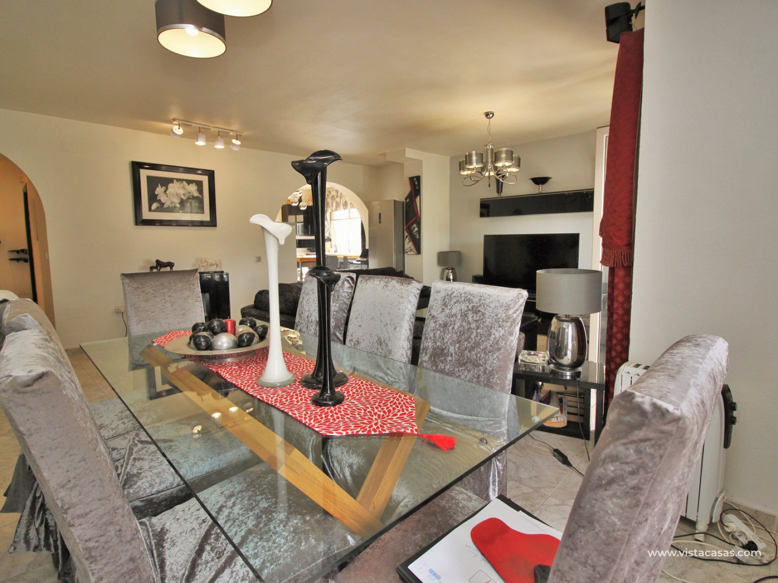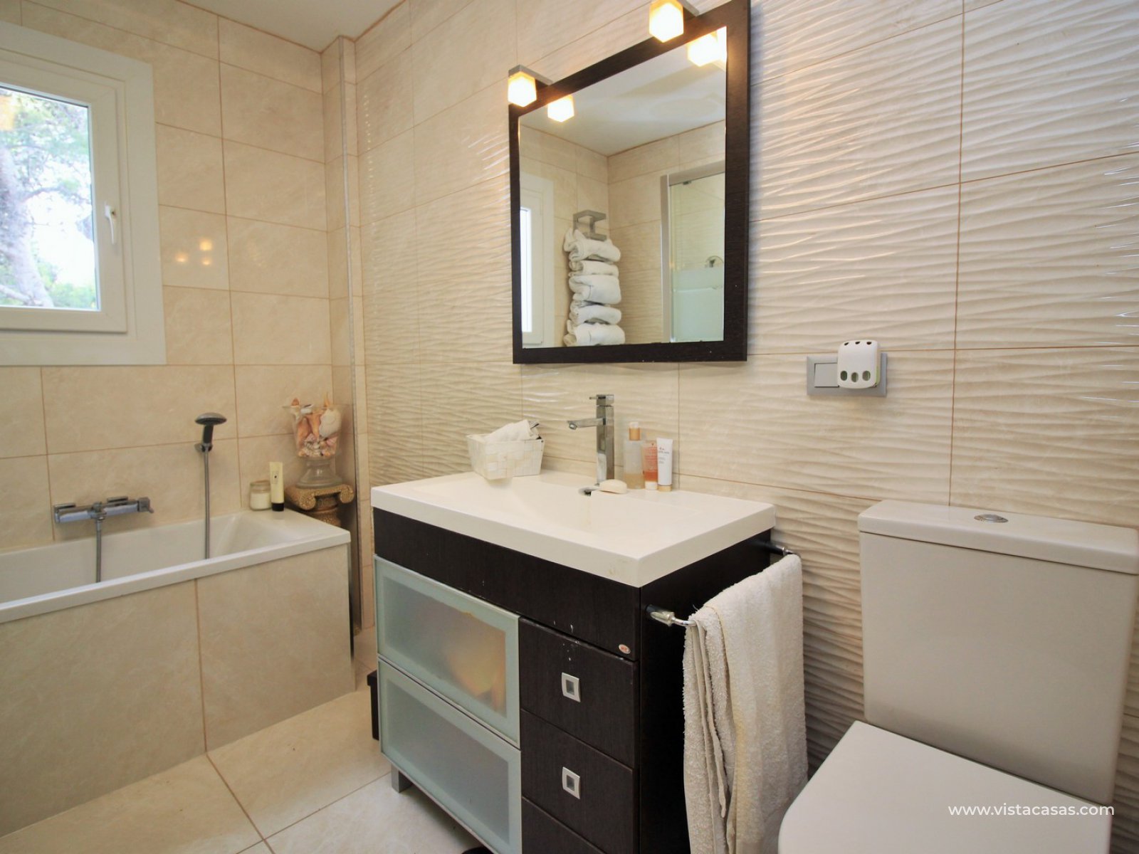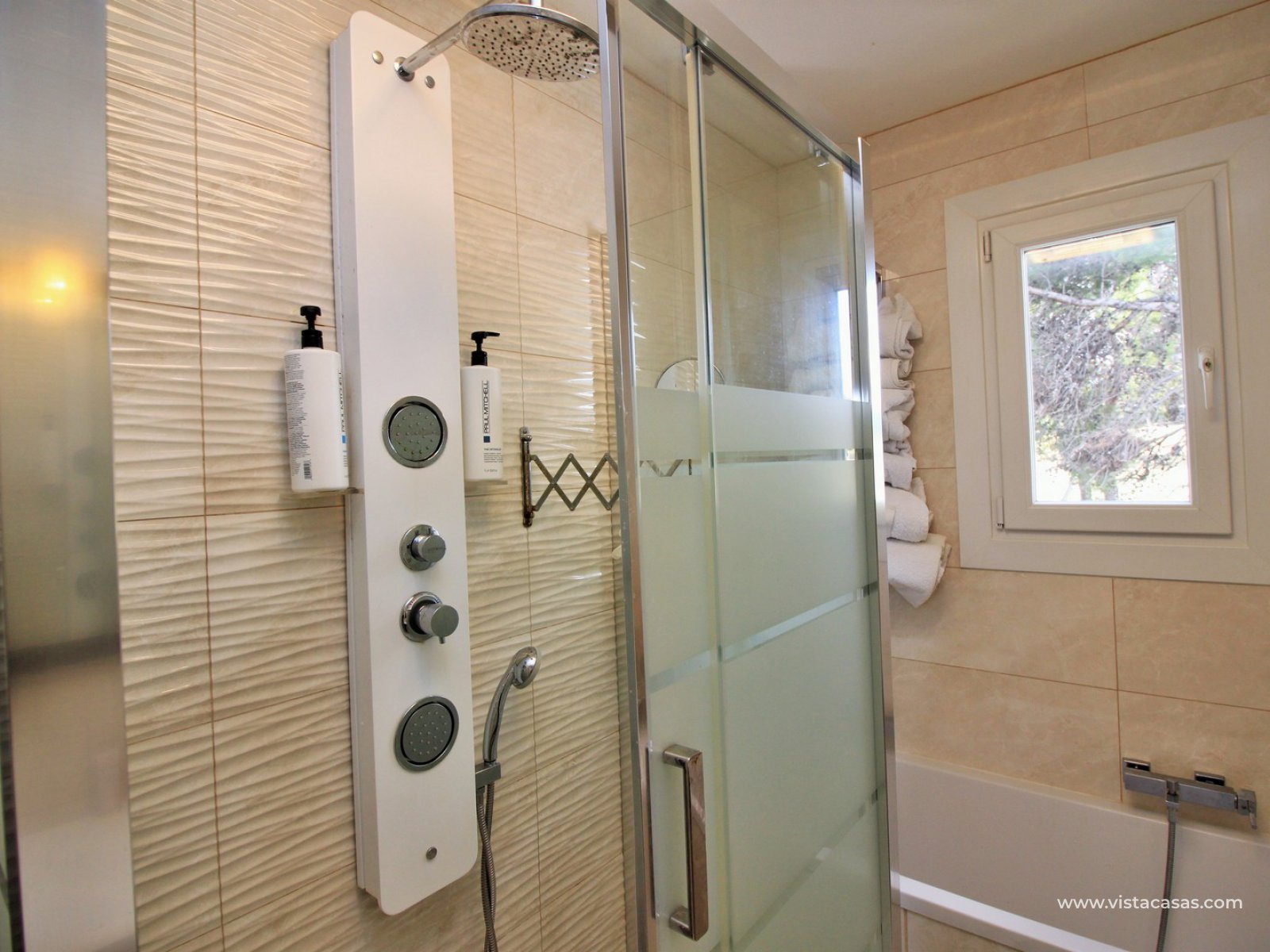 The top level comprises of an entrance hallway leading into a very spacious lounge-dining area with a fully equipped kitchen to the side with dual oven and a induction plus conventional electric hob. Patio doors from the lounge area leads onto the covered balcony overlooking the Villamartin golf course. There is also a WC just off the entrance hallway. Internal stairs lead down into the lower level which comprises of the master bedroom with en-suite bathroom and a private South facing balcony. There is a second double bedroom with fitted wardrobes and benefits from its own en-suite shower room. The apartment can be accessed on both levels. Sold partially furnished with white goods.