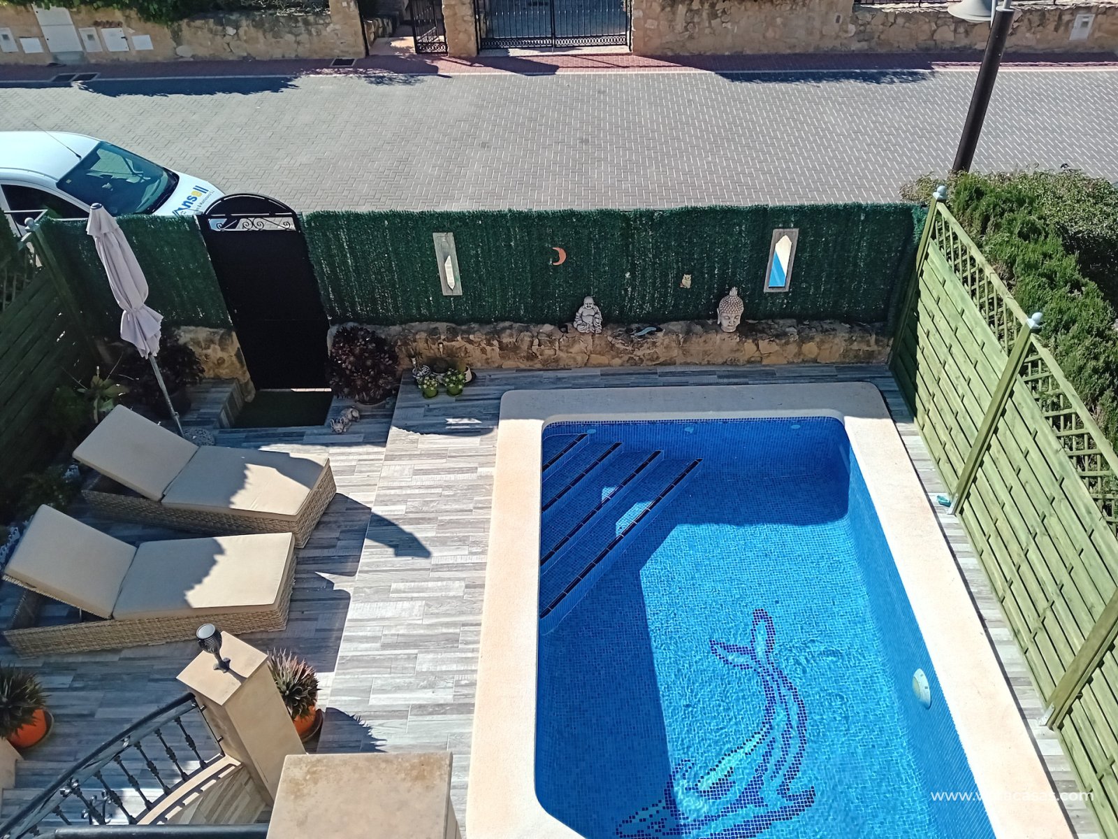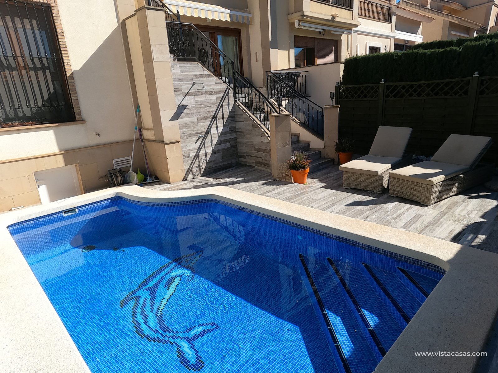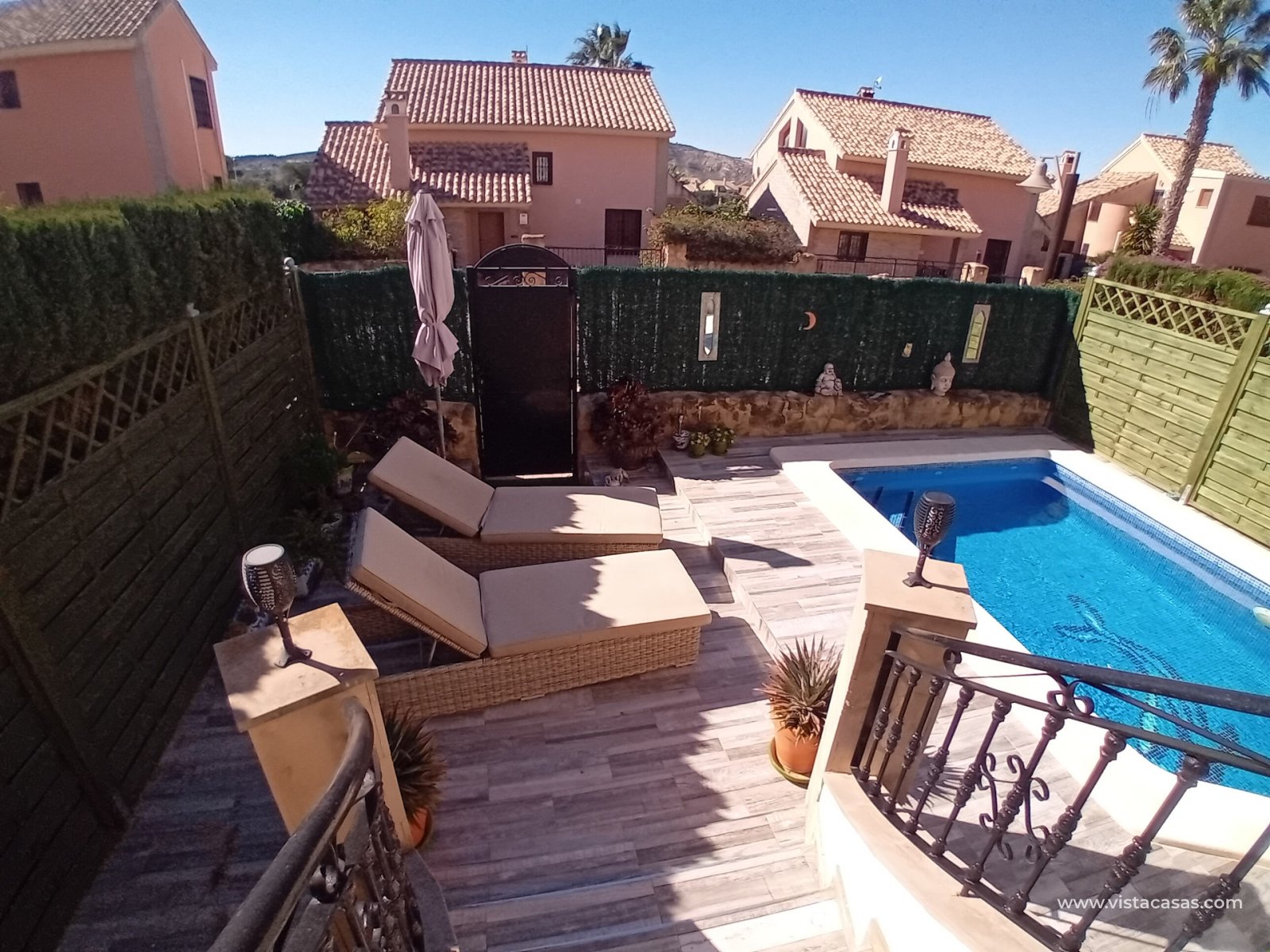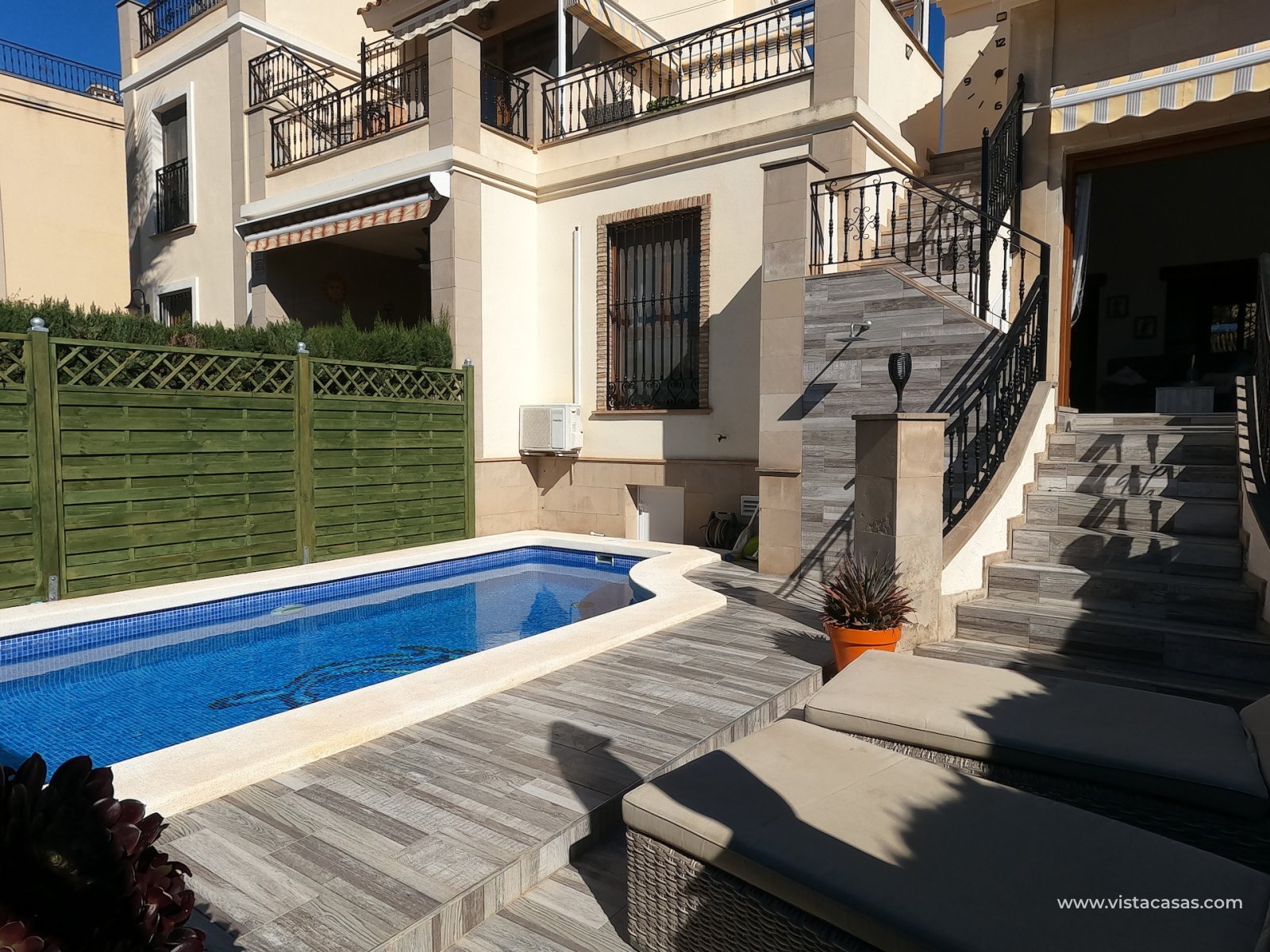 Extra's include: Wood burner heater in lounge, Air conditioning in all rooms, electric lounge shutter, new sliding patio doors, fully tiled terrace and garden, private pool, new modern en-suite shower room, storage space under the property