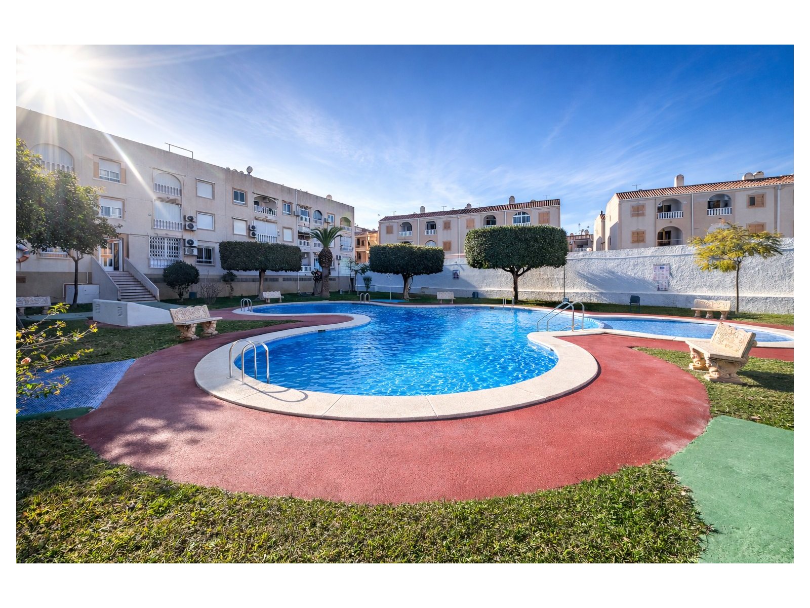 Live the Mediterranean lifestyle in comfort in this cosy 67 m² apartment located in one of the most practical and sought-after areas of Torrevieja. Its south-facing orientation ensures abundant natural light throughout the day, creating a warm and welcoming atmosphere in every room. The property features 2 bedrooms, 1 bathroom and a French-style kitchen, as well as a pleasant 5 m² terrace, perfect for sunny breakfasts or relaxing moments outdoors.Situated just 250 metres from the sea and surrounded by all essential services bars, restaurants, supermarkets, pharmacies, shopping centres and leisure areas it offers a comfortable lifestyle both as a permanent residence and as a holiday home. The residential complex includes a communal swimming pool, and the apartment is sold fully furnished and equipped, ready to move into.Main Features 67 m² built area 2 bedrooms 1 bathroom South-facing orientation 5 m² terrace Communal swimming pool 250 m from the beach Furnished and with appliances Close to shops and services Year of construction 1995 Price €139,990IBI 267,89 €COMUNIDAD c 91,76 € trimestralIn addition, the apartment is located approximately 45 km (around 40 minutes) from Alicante-Elche Miguel Hernández Airport, providing easy national and international connections.Request information today and discover your new home by the sea
