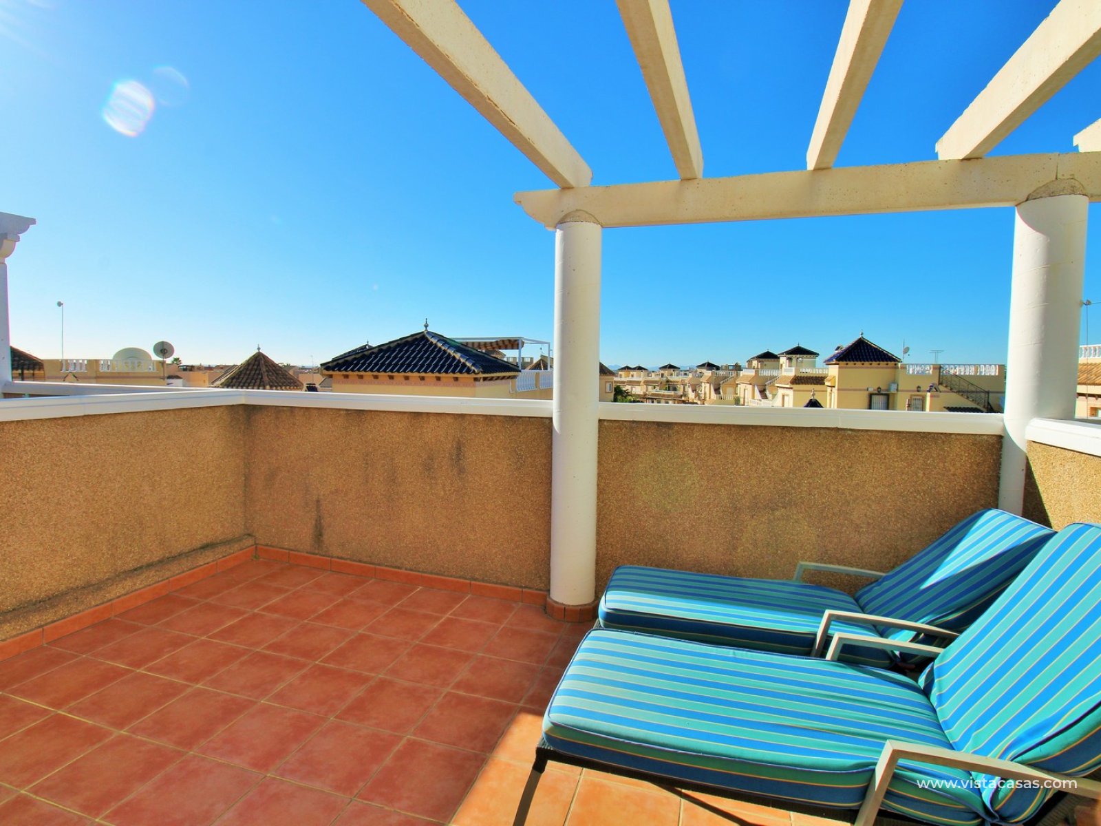 A spacious South-facing 3 bedroom townhouse located within the gated community of Paola II in Playa Flamenca, offering excellent outdoor space, a private garage with internal access, and an ideal position close to amenities.