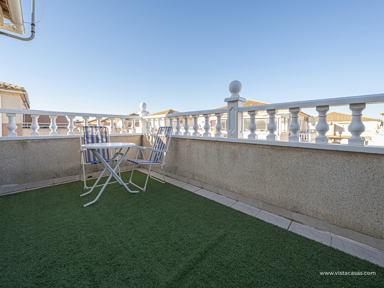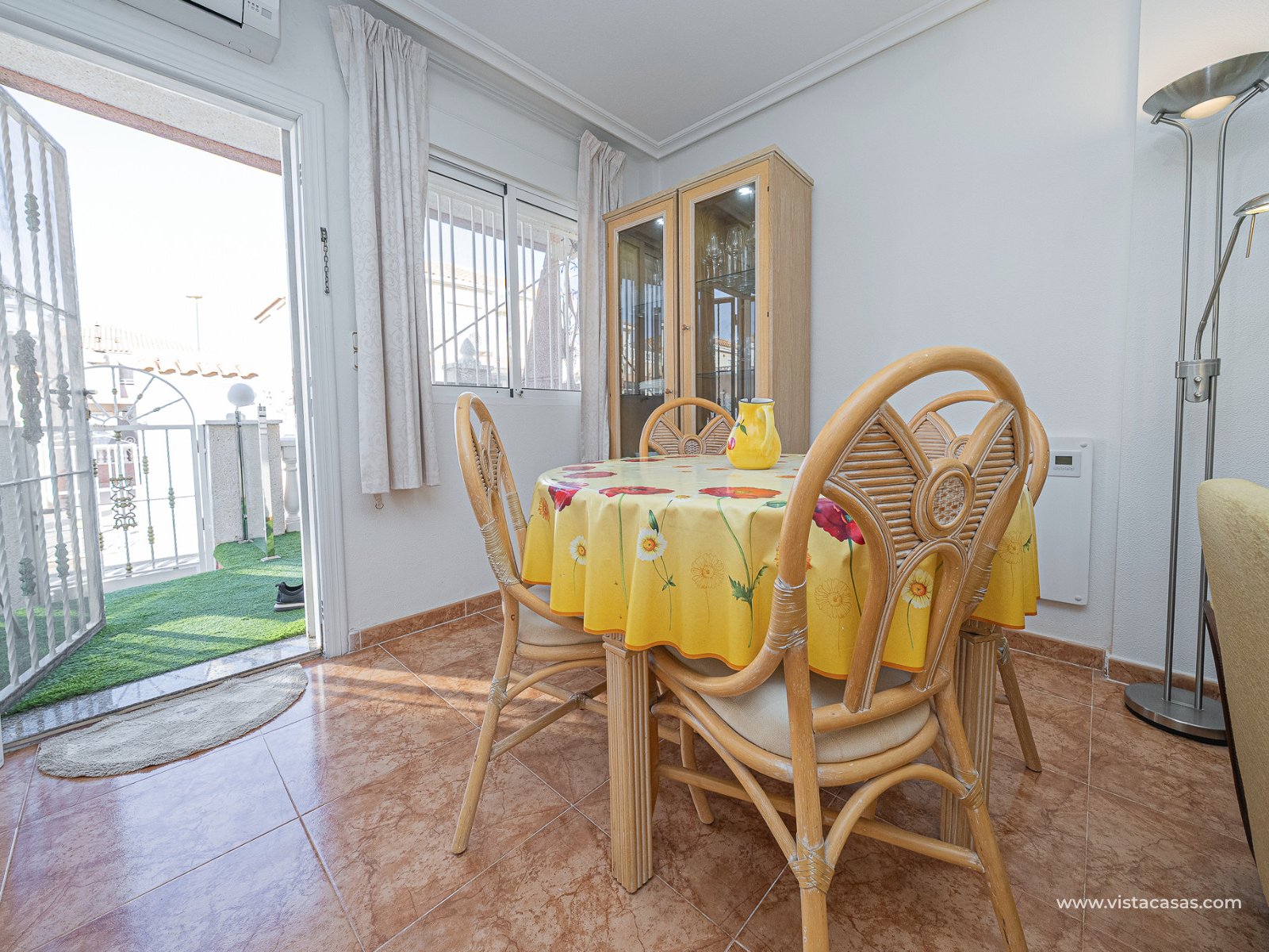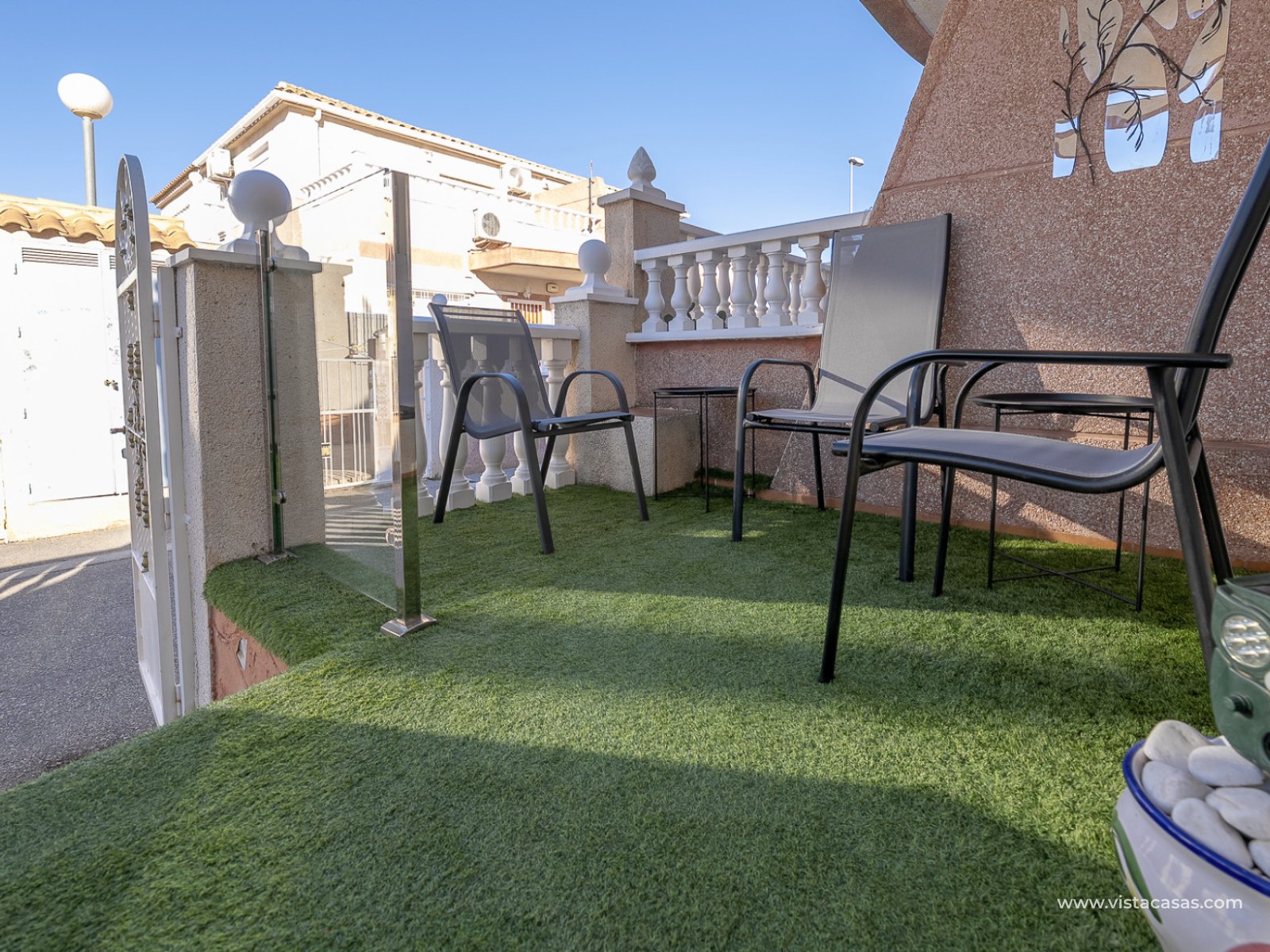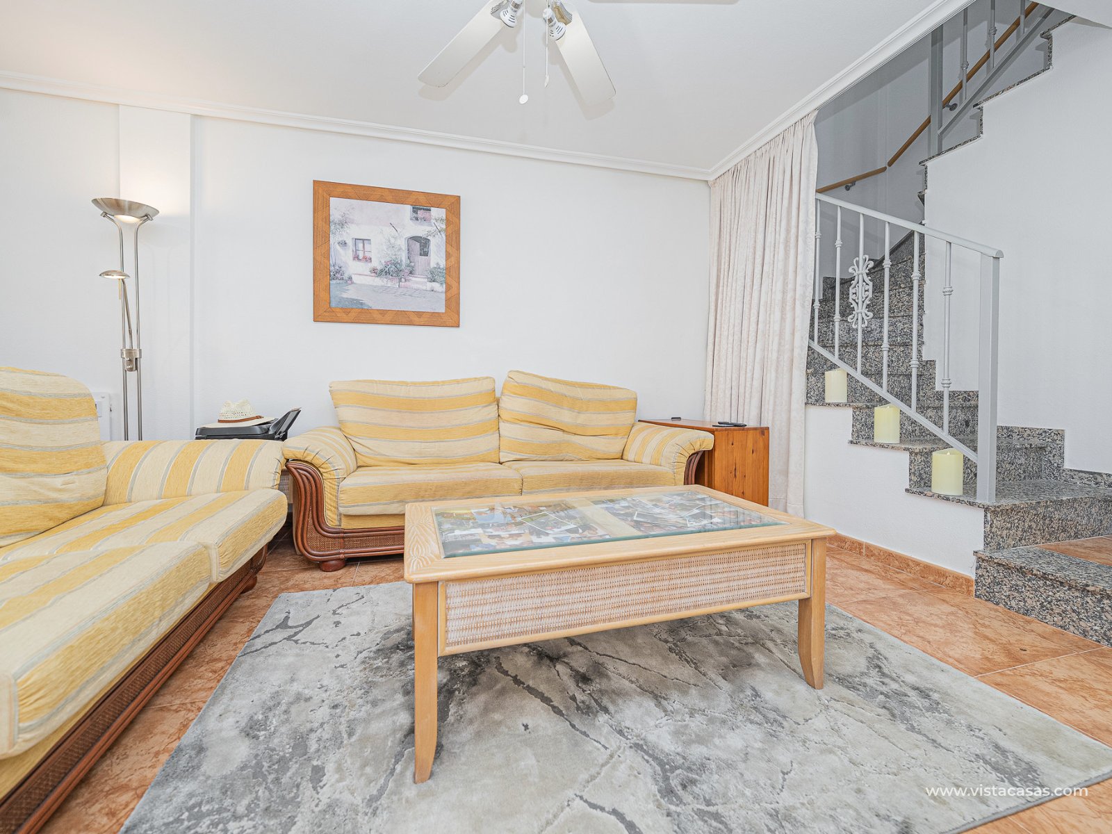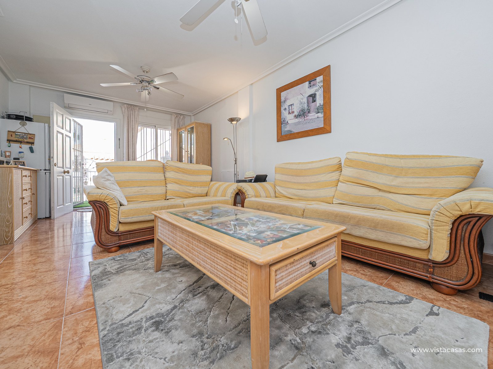 Well presented 3 bedroom 2 bathroom quad villa in the La Regia area of Cabo Roig. This charming home is in excellent condition and  ideal for holidays or permanent living. The living room/dining room is open plan with ample space and renovated, built in wall display unit, semi open modern fitted kitchen with American breakfast bar, spacious under-stairs storage room, plus for added convenience a  ground floor bathroom, with walk in shower, double bedroom, The second floor offers a further 2 double bedrooms  both with access to private balcony terraces and  a fully renovated bathroom with walk in shower,  Outside space offers ample terraces, patio garden laid to artificial grass  and tiles with newly installed glass panels and on site parking. The property benefits from air conditioning, infrared panel heaters, ceiling fans, pvc guttering, white goods, part renovated and fully furnished and is totally key ready. Charming community with communal swimming pool, gardens, football pitch, and children´s park, Quiet location walking distance to the renowned Cabo Roig strip (Under a 10 minute walk)  which hosts many shops, cafe- bars restaurants and supermarkets, the sandy blue flag beach of La Caleta, Cabo Roig is under a 15 minutes walk, and only a short drive to the La Zenia boulevard shopping centre and many first-class golf courses. Contact us today for a viewing.
