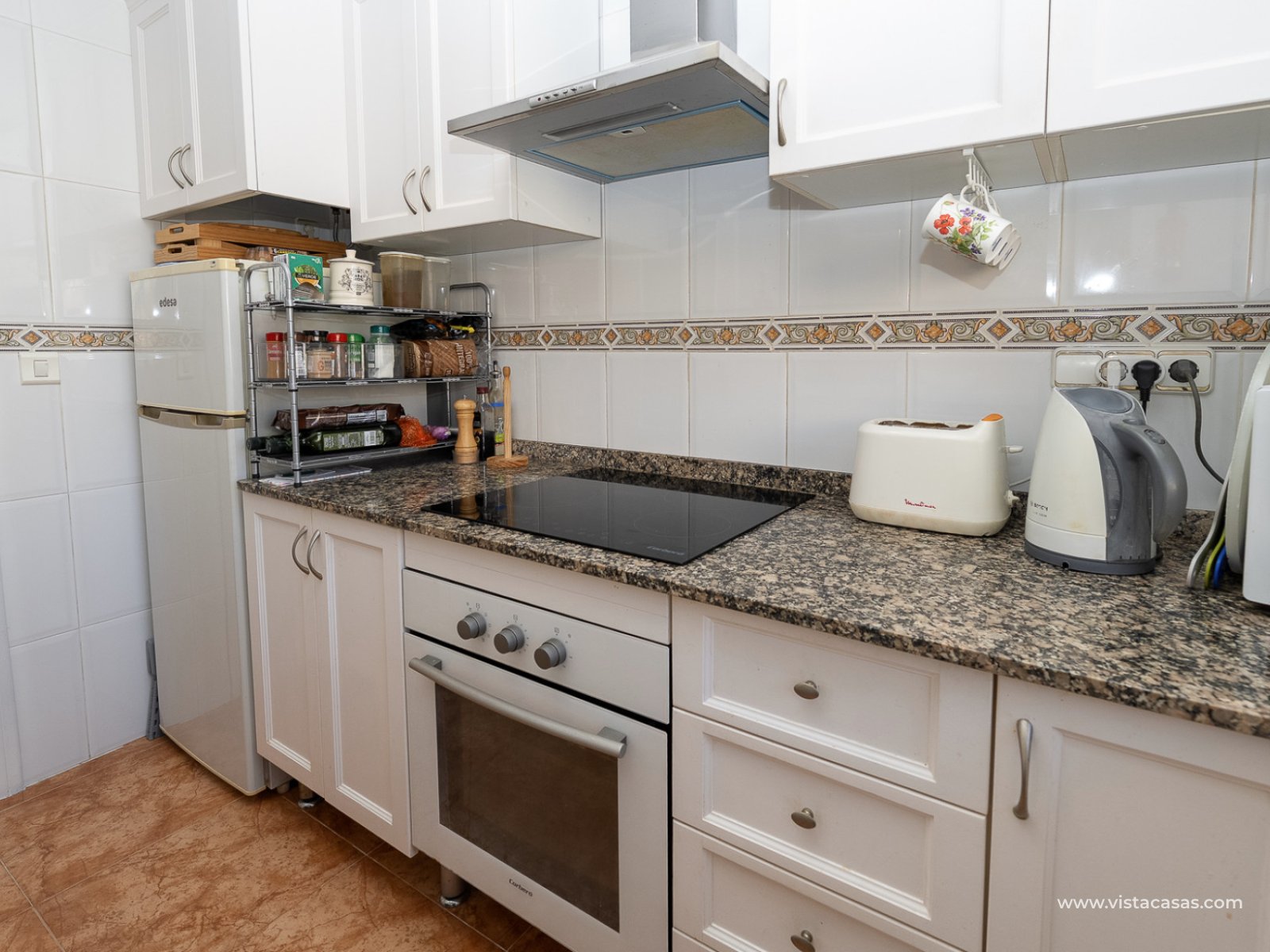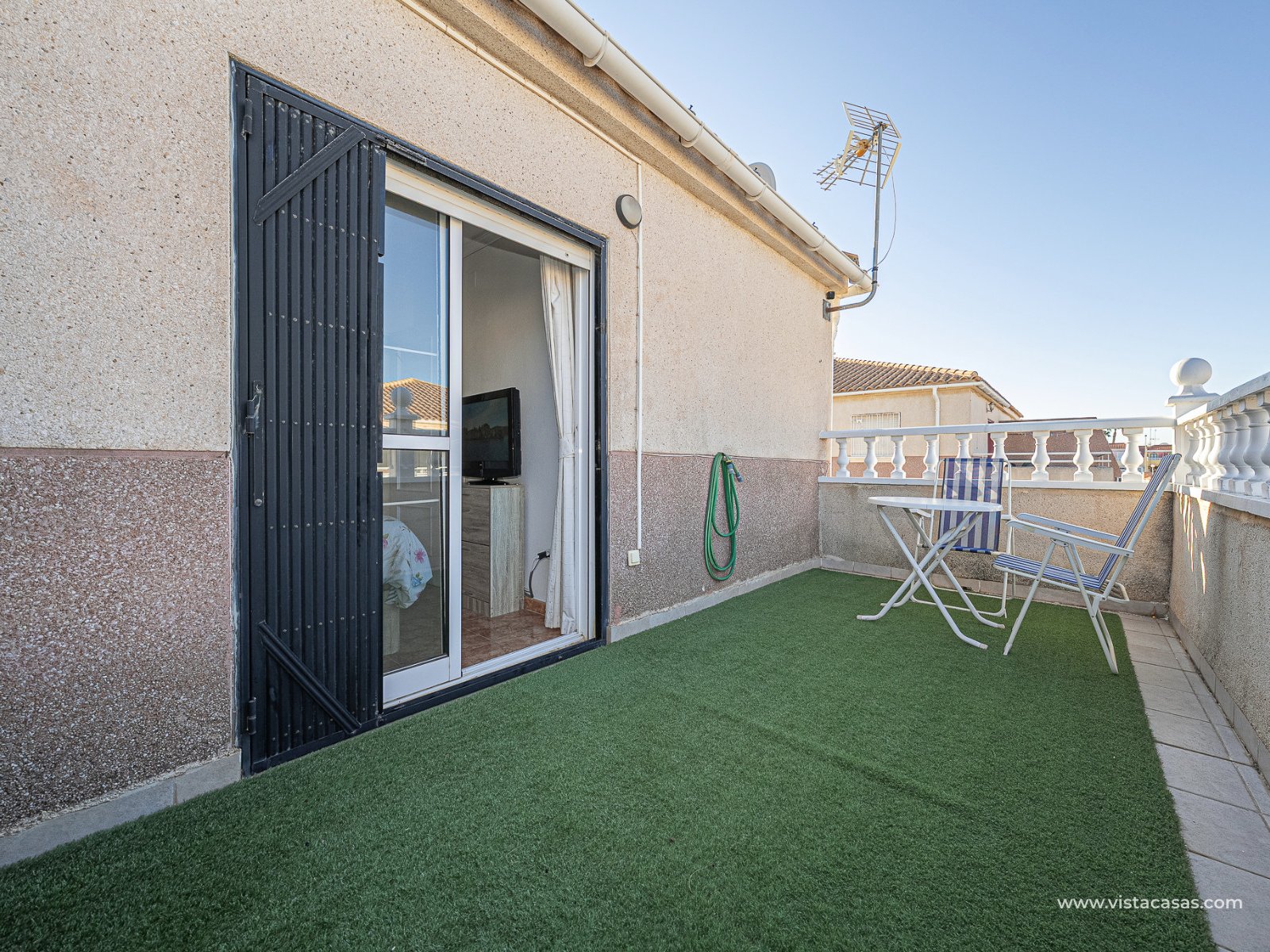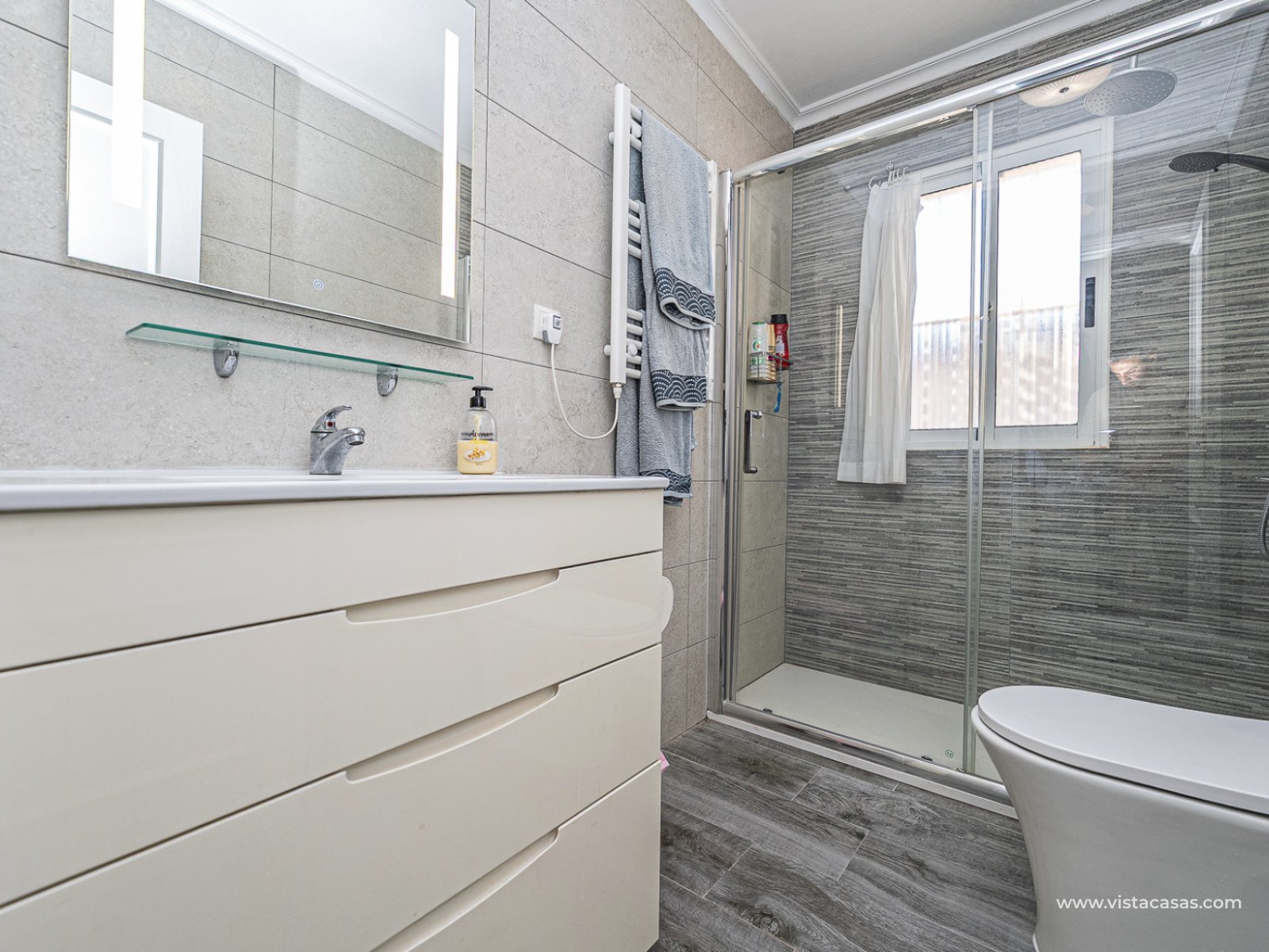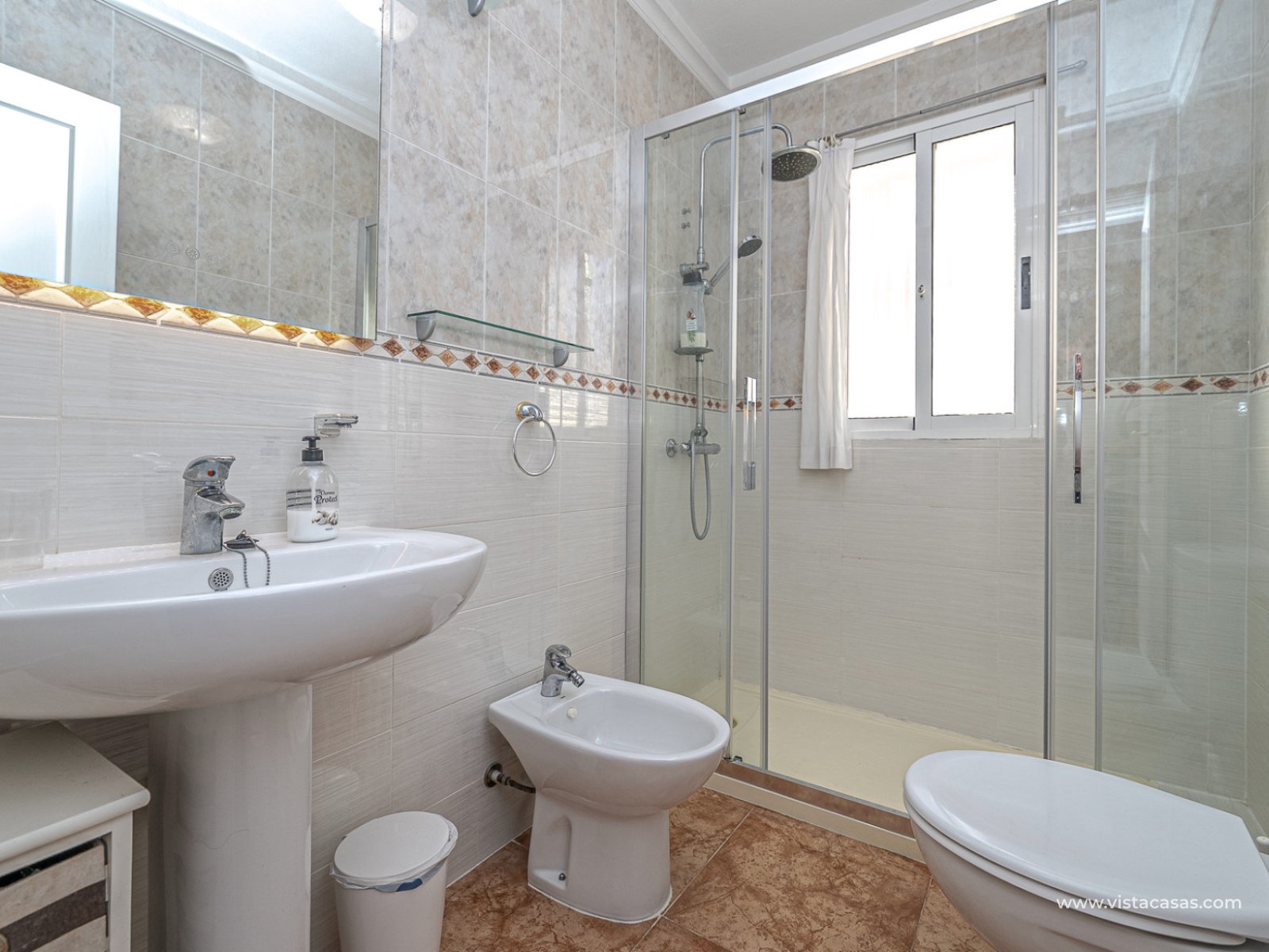 Well presented 3 bedroom 2 bathroom quad villa in the La Regia area of Cabo Roig. This charming home is in excellent condition and  ideal for holidays or permanent living. The living room/dining room is open plan with ample space and renovated, built in wall display unit, semi open modern fitted kitchen with American breakfast bar, spacious under-stairs storage room, plus for added convenience a  ground floor bathroom, with walk in shower, double bedroom, The second floor offers a further 2 double bedrooms  both with access to private balcony terraces and  a fully renovated bathroom with walk in shower,  Outside space offers ample terraces, patio garden laid to artificial grass  and tiles with newly installed glass panels and on site parking. The property benefits from air conditioning, infrared panel heaters, ceiling fans, pvc guttering, white goods, part renovated and fully furnished and is totally key ready. Charming community with communal swimming pool, gardens, football pitch, and children´s park, Quiet location walking distance to the renowned Cabo Roig strip (Under a 10 minute walk)  which hosts many shops, cafe- bars restaurants and supermarkets, the sandy blue flag beach of La Caleta, Cabo Roig is under a 15 minutes walk, and only a short drive to the La Zenia boulevard shopping centre and many first-class golf courses. Contact us today for a viewing.