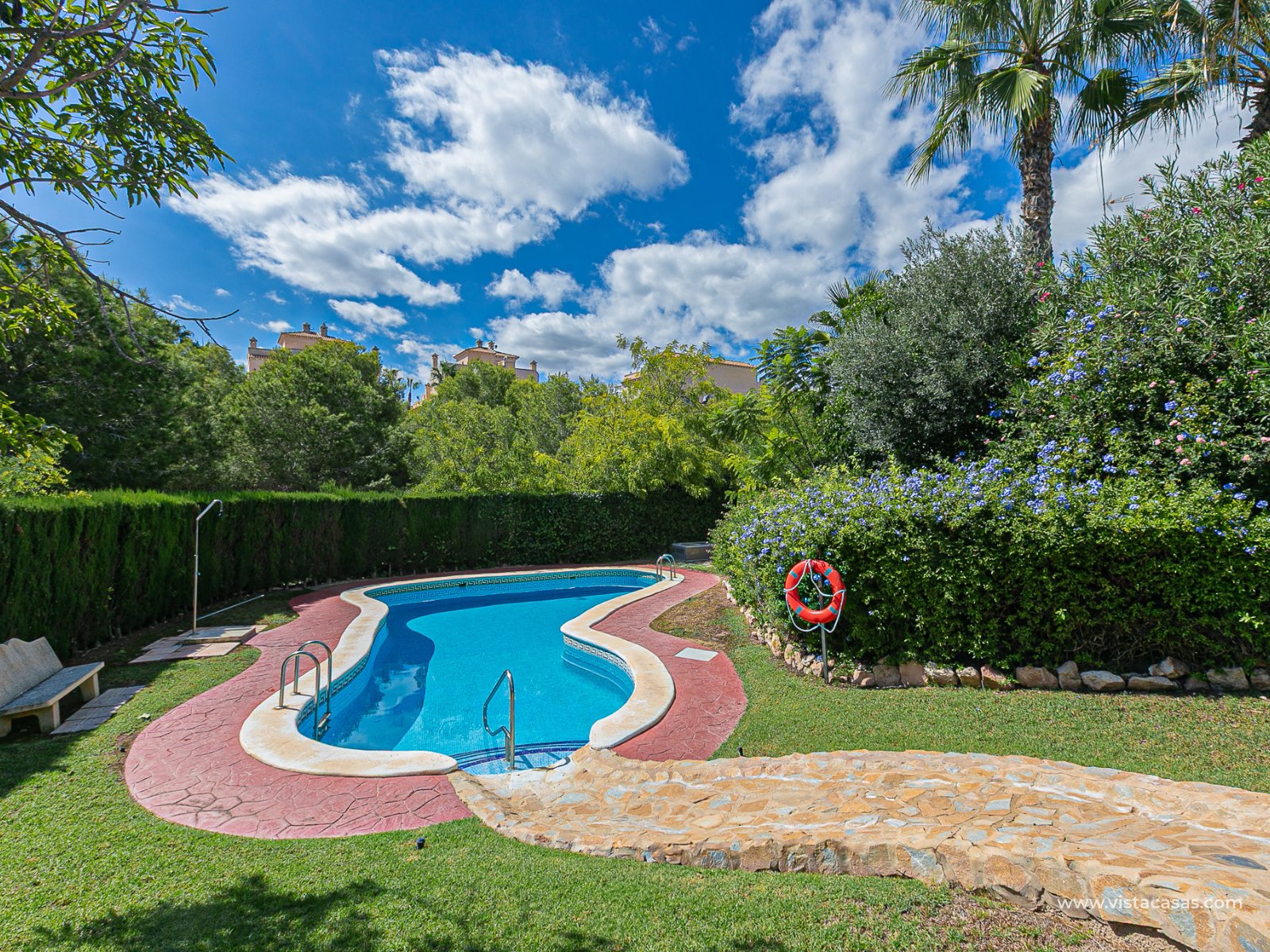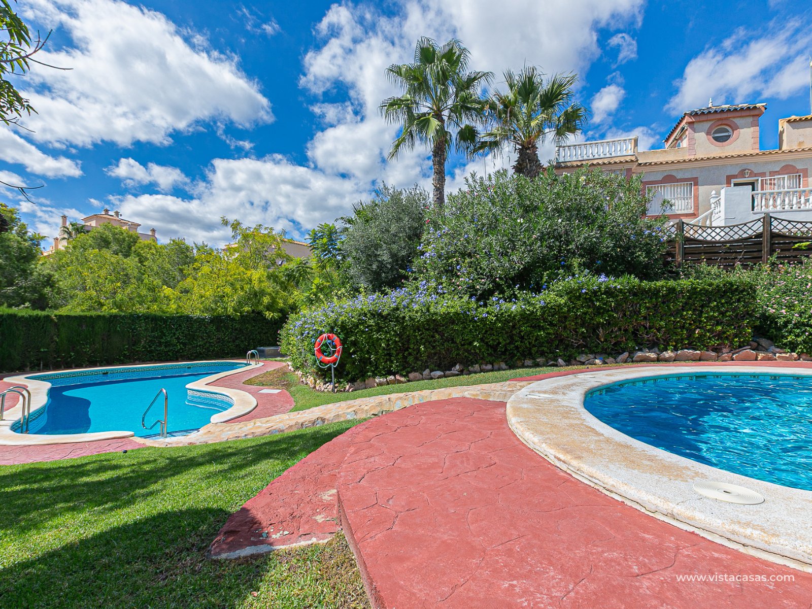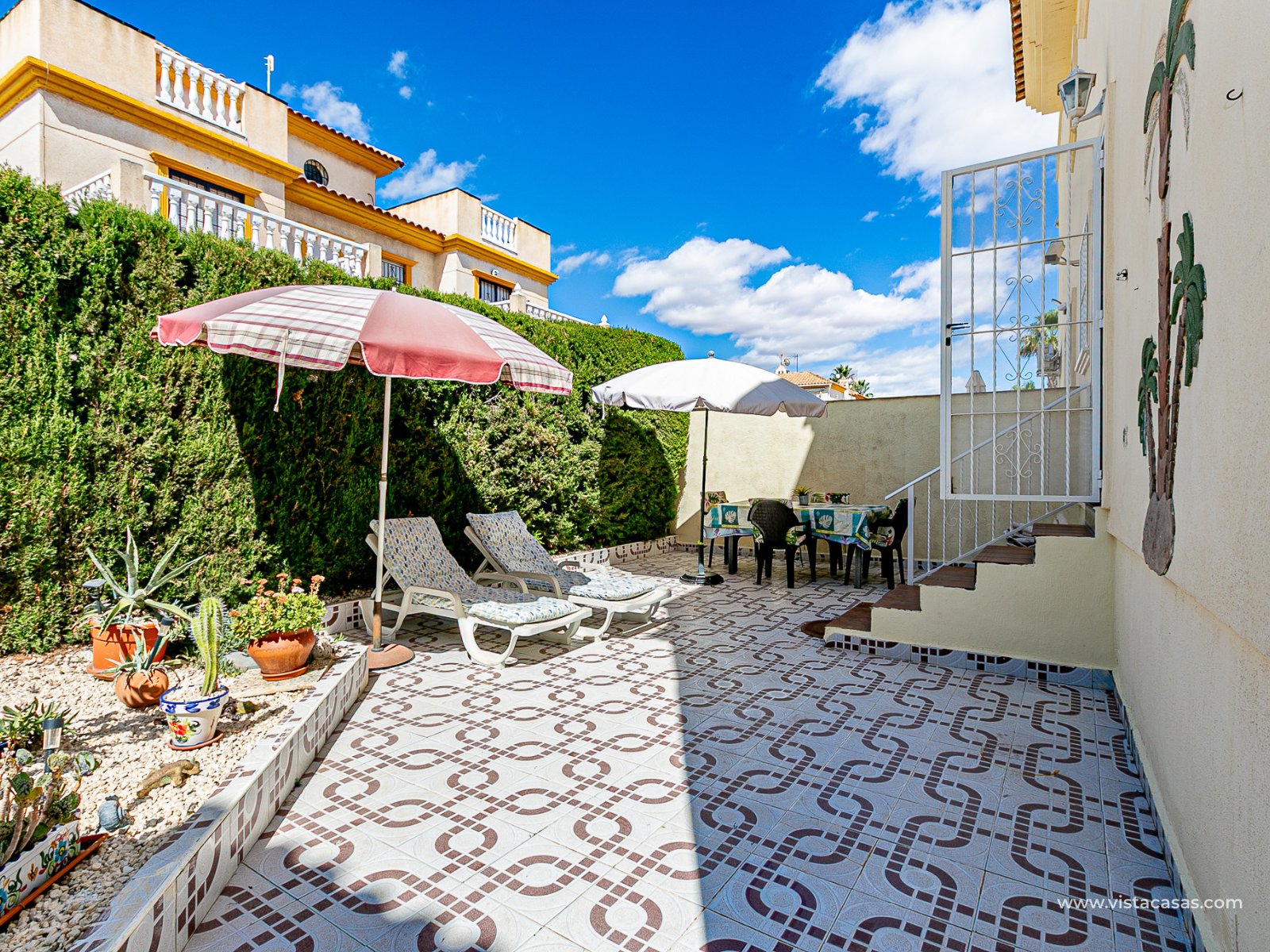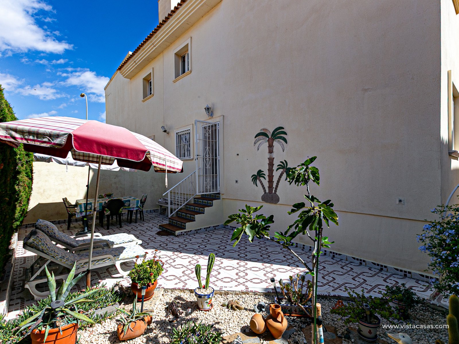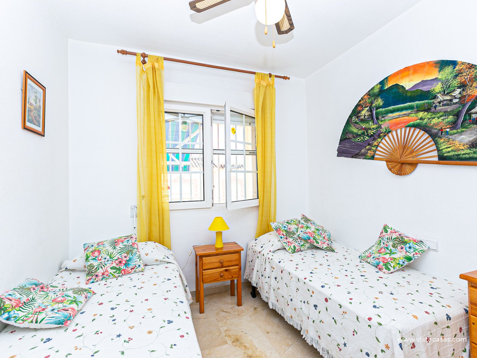 We present this charming ground floor bungalow style apartment, with the convenience of parking your car inside the plot under its practical carport. The property sits on a private semi-circular plot that surrounds the house, offering different outdoor areas to enjoy the Mediterranean climate. At the front, it features a double terrace: one by the entrance and another main terrace equipped with an awning, perfect for relaxing in the shade or sharing meals outdoors. Inside, you will find a spacious living-dining room with air conditioning and a fireplace, creating a cosy atmosphere both in summer and winter. The large independent kitchen includes a breakfast bar and has direct access to the rear garden, adding even more functionality to the home. The night area consists of two bedrooms and one bathroom with shower. The property comes with extras such as ceiling fans and air conditioning in the living room and master bedroom. It is sold furnished (except personal items), without refrigerator and washing machine. Location – Playa Flamenca Playa Flamenca is one of the most sought-after areas of Orihuela Costa, famous for its cosmopolitan atmosphere and blue-flag beaches. It offers all kinds of services within walking distance: restaurants, bars, supermarkets, sports centres and the popular Zenia Boulevard shopping centre. It also enjoys excellent connections to nearby golf courses such as Villamartin, Las Ramblas and Campoamor, as well as to the beaches of La Zenia and Cabo Roig. This property is ideal as a holiday home, investment or permanent residence in one of the most desirable areas of the Costa Blanca. Don’t miss this opportunity and contact us today to arrange a viewing.