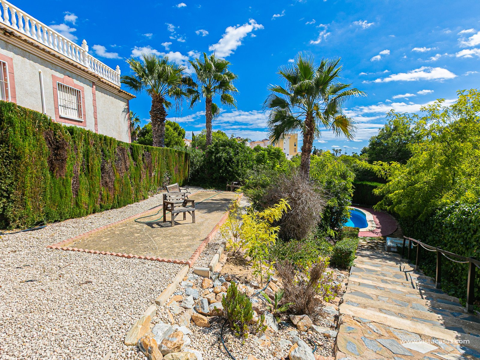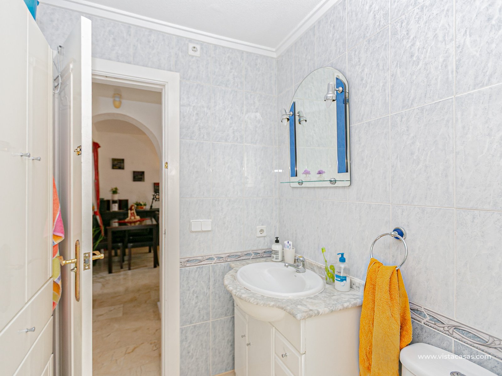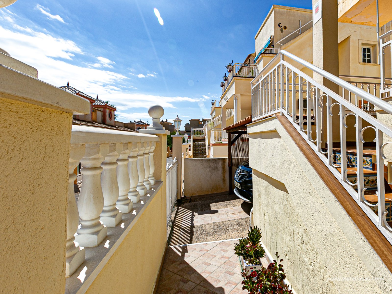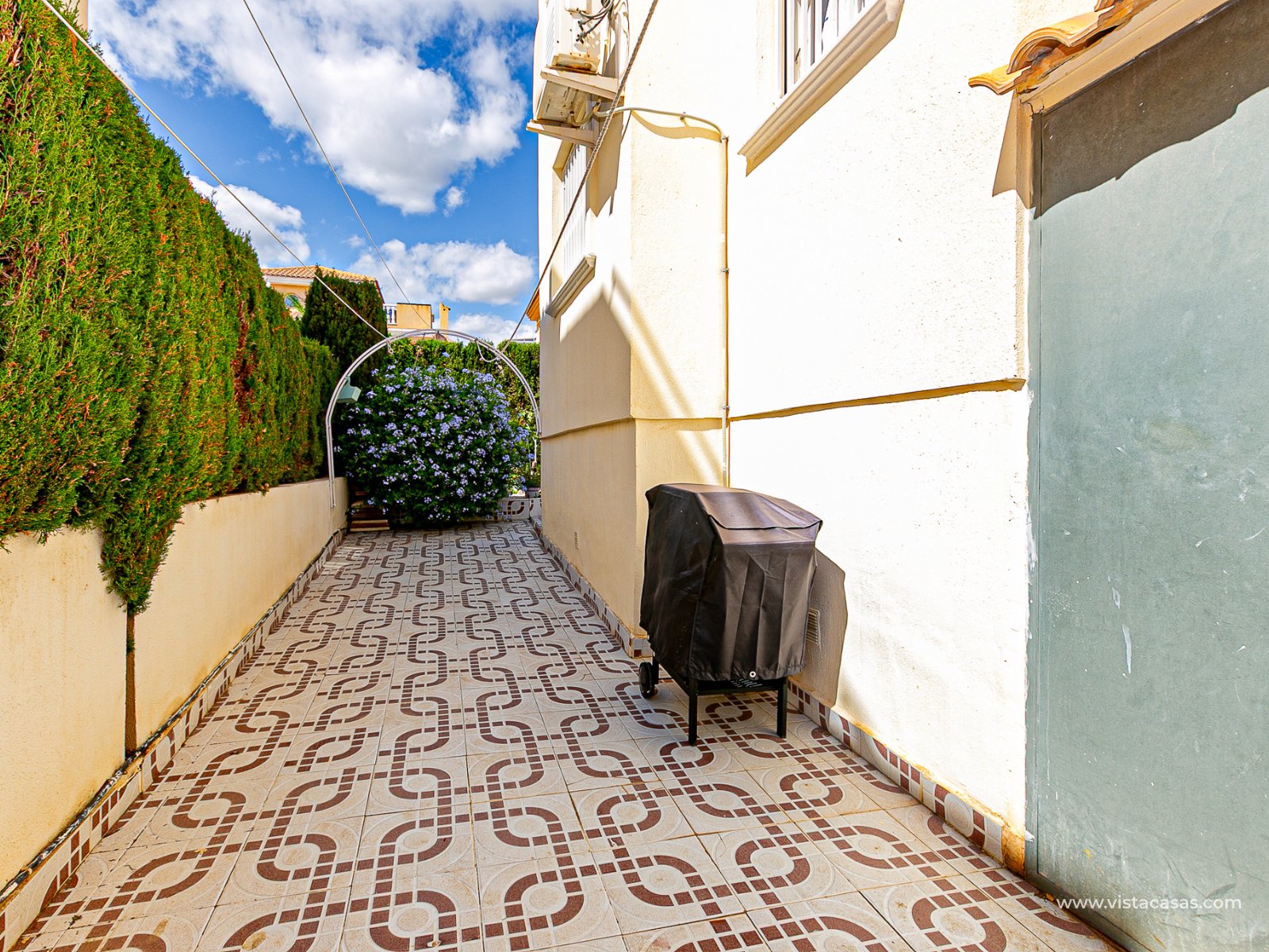 We present this charming ground floor bungalow style apartment, with the convenience of parking your car inside the plot under its practical carport. The property sits on a private semi-circular plot that surrounds the house, offering different outdoor areas to enjoy the Mediterranean climate. At the front, it features a double terrace: one by the entrance and another main terrace equipped with an awning, perfect for relaxing in the shade or sharing meals outdoors. Inside, you will find a spacious living-dining room with air conditioning and a fireplace, creating a cosy atmosphere both in summer and winter. The large independent kitchen includes a breakfast bar and has direct access to the rear garden, adding even more functionality to the home. The night area consists of two bedrooms and one bathroom with shower. The property comes with extras such as ceiling fans and air conditioning in the living room and master bedroom. It is sold furnished (except personal items), without refrigerator and washing machine. Location – Playa Flamenca Playa Flamenca is one of the most sought-after areas of Orihuela Costa, famous for its cosmopolitan atmosphere and blue-flag beaches. It offers all kinds of services within walking distance: restaurants, bars, supermarkets, sports centres and the popular Zenia Boulevard shopping centre. It also enjoys excellent connections to nearby golf courses such as Villamartin, Las Ramblas and Campoamor, as well as to the beaches of La Zenia and Cabo Roig. This property is ideal as a holiday home, investment or permanent residence in one of the most desirable areas of the Costa Blanca. Don’t miss this opportunity and contact us today to arrange a viewing.