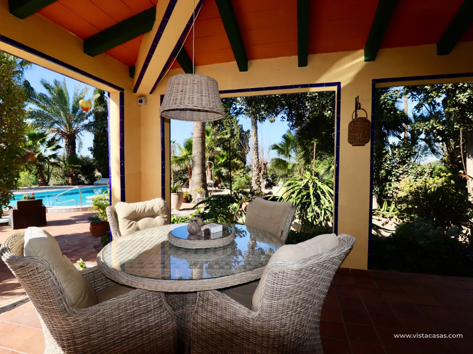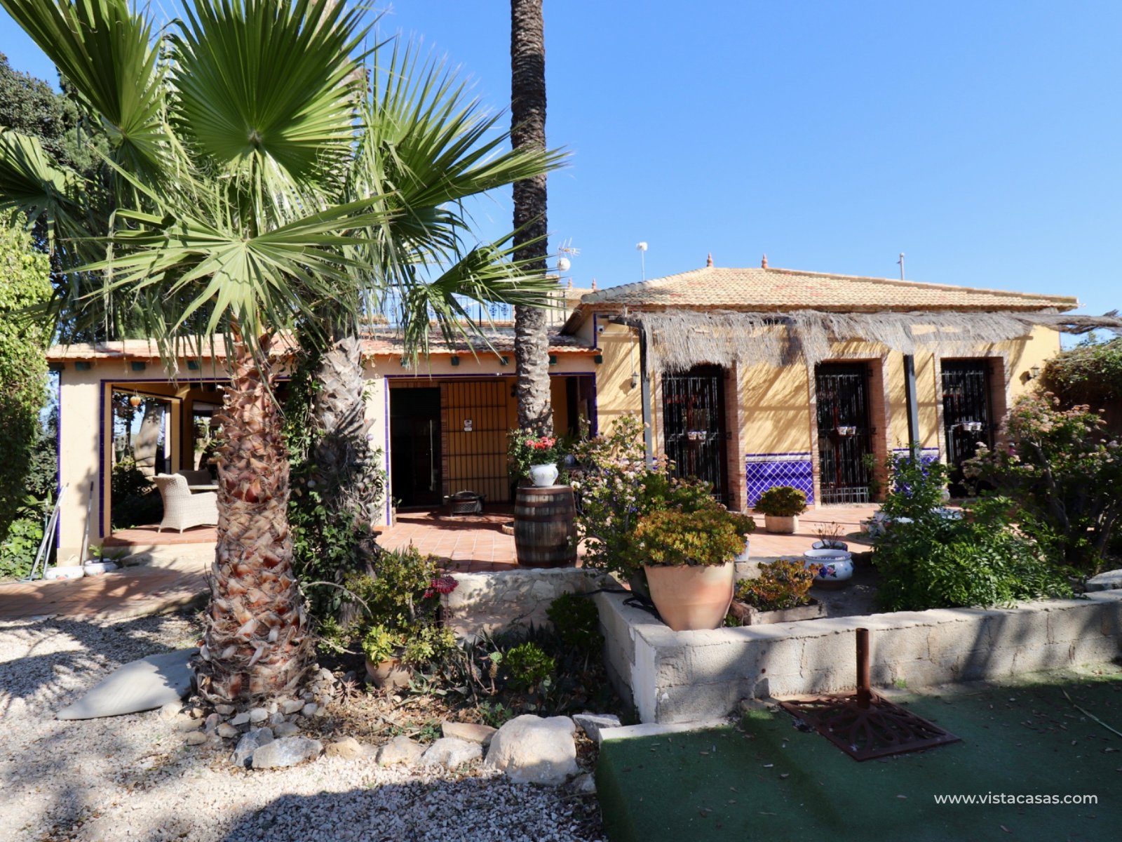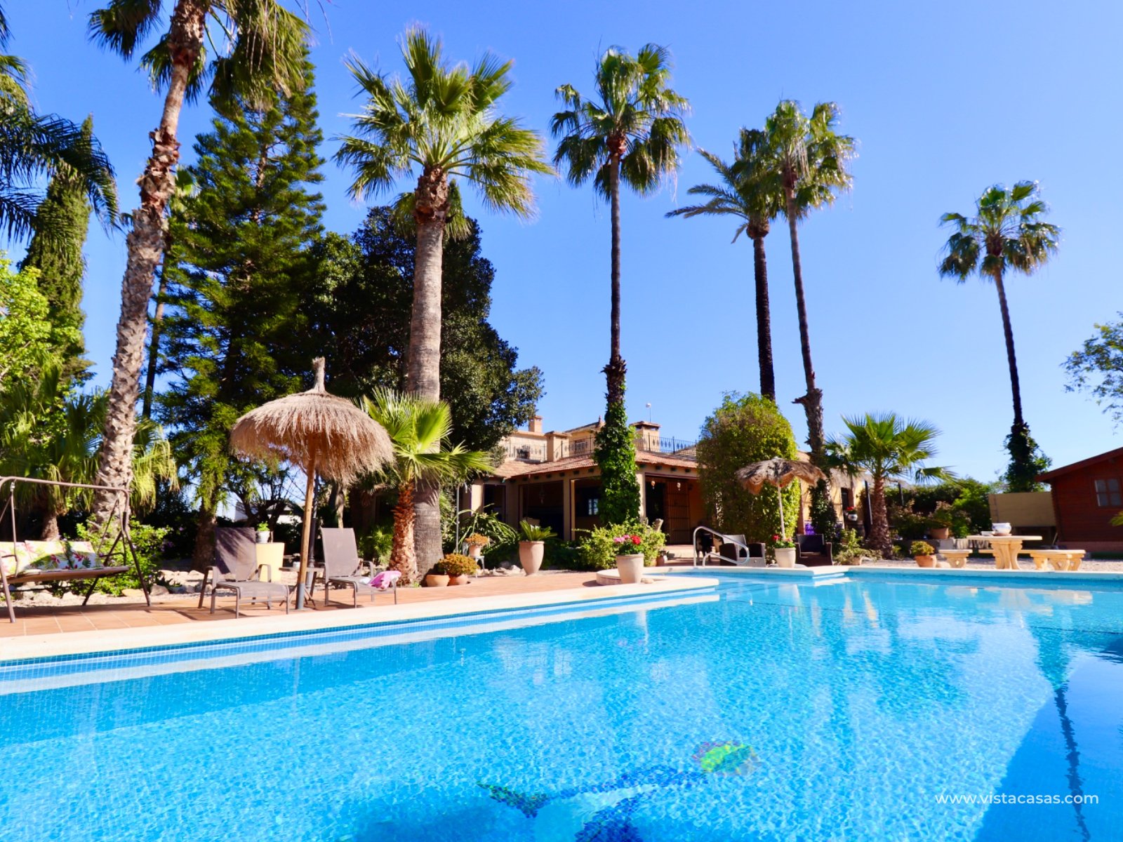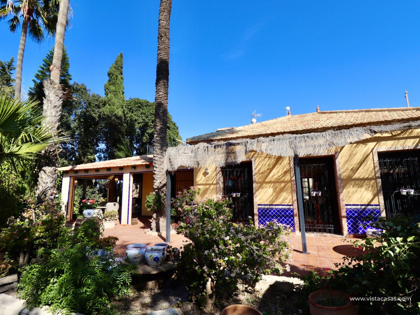 We proudly present this beautiful exceptional Andalusian style country house, completely renovated, rebuilt and excellently maintained. This extraordinary country villa is one of a kind. If you are looking for an exceptional hidden germ…this is the ONE! The main residence has 3 bedrooms , 2 bathrooms , large basement room and a lovely covered terrace on two sides overlooking the pool (12 x 5) and garden. In total there are 6 beds and 4 baths. In addition, this country house offers a surprising amount of extra space: In the garden there is a log cabin that has been converted into a guest house with a living, bedroom and a bathroom. Also space to put a kitchenette in. On the solarium there is a fully furnished apartment with 1 bedroom , kitchen and bathroom . An additional bedroom has also been created in a separate room.there is a specious garage The garden also features a pond that you can reuse or transform into a beautiful jacuzzi, for example. At the rear, there's space to create a separate entrance —ideal for storing a camper or caravan. Also a garage comes with this extraordinary country villa. This hidden germ is wheelchair accessible! Location: Located near Rojales/Herades and accessible by bike just a few minutes away. It's quiet, yet close to all amenities such as supermarkets, restaurants, and charming villages in the area. You are also in perfect location in terms of accessibility: Beaches of Guardamar / La Mata a short drive away Alicante Airport is approximately 35–40 minutes' drive away