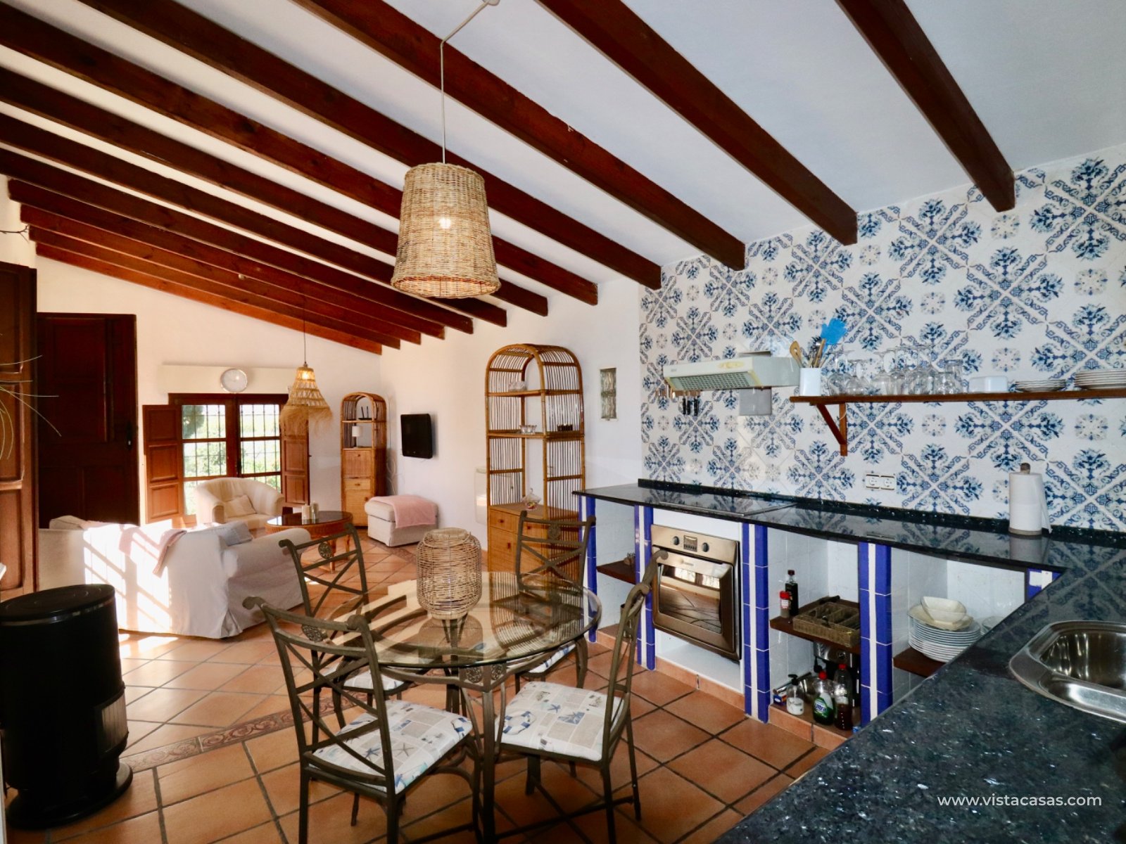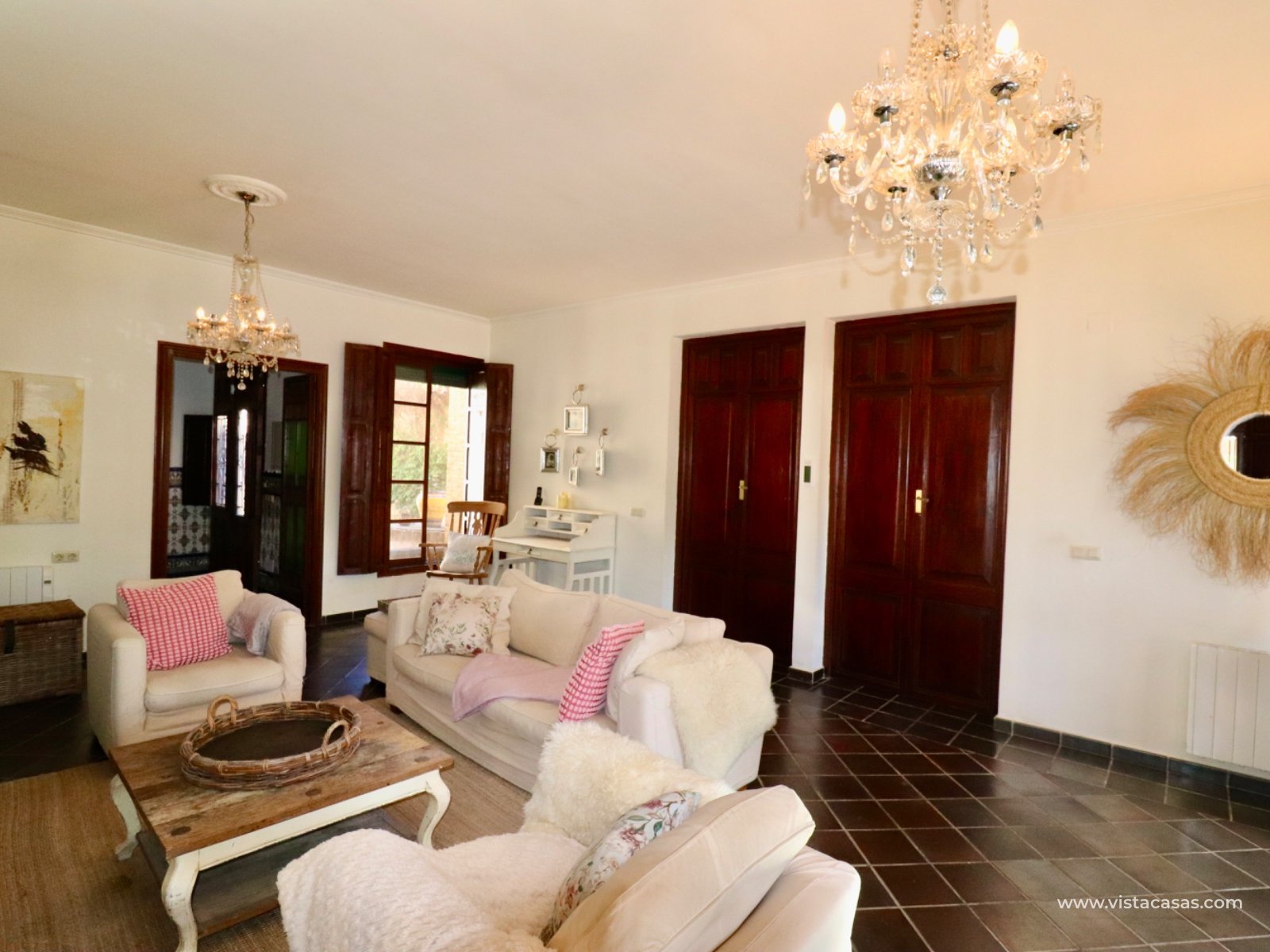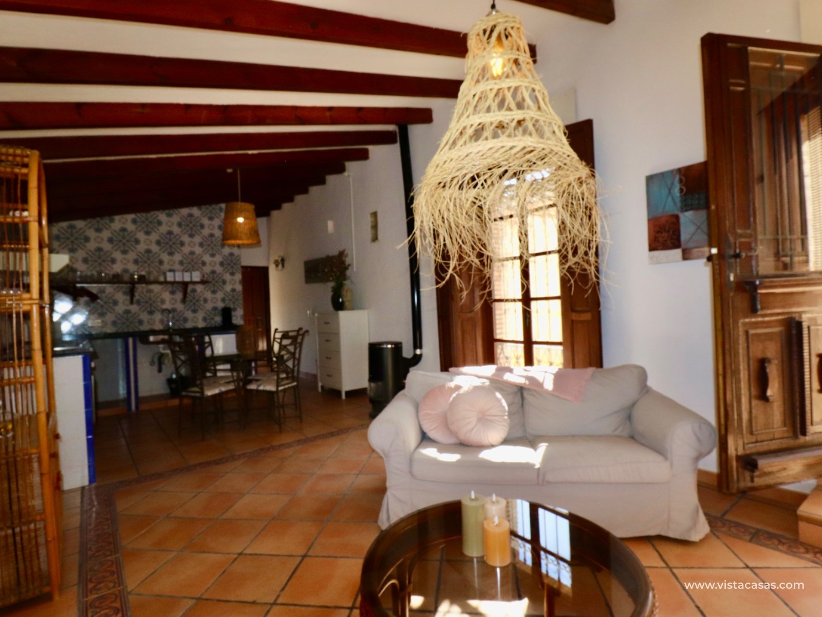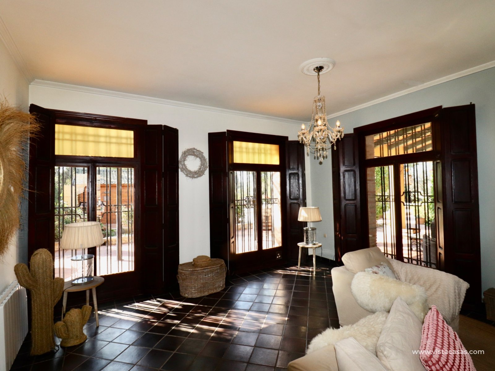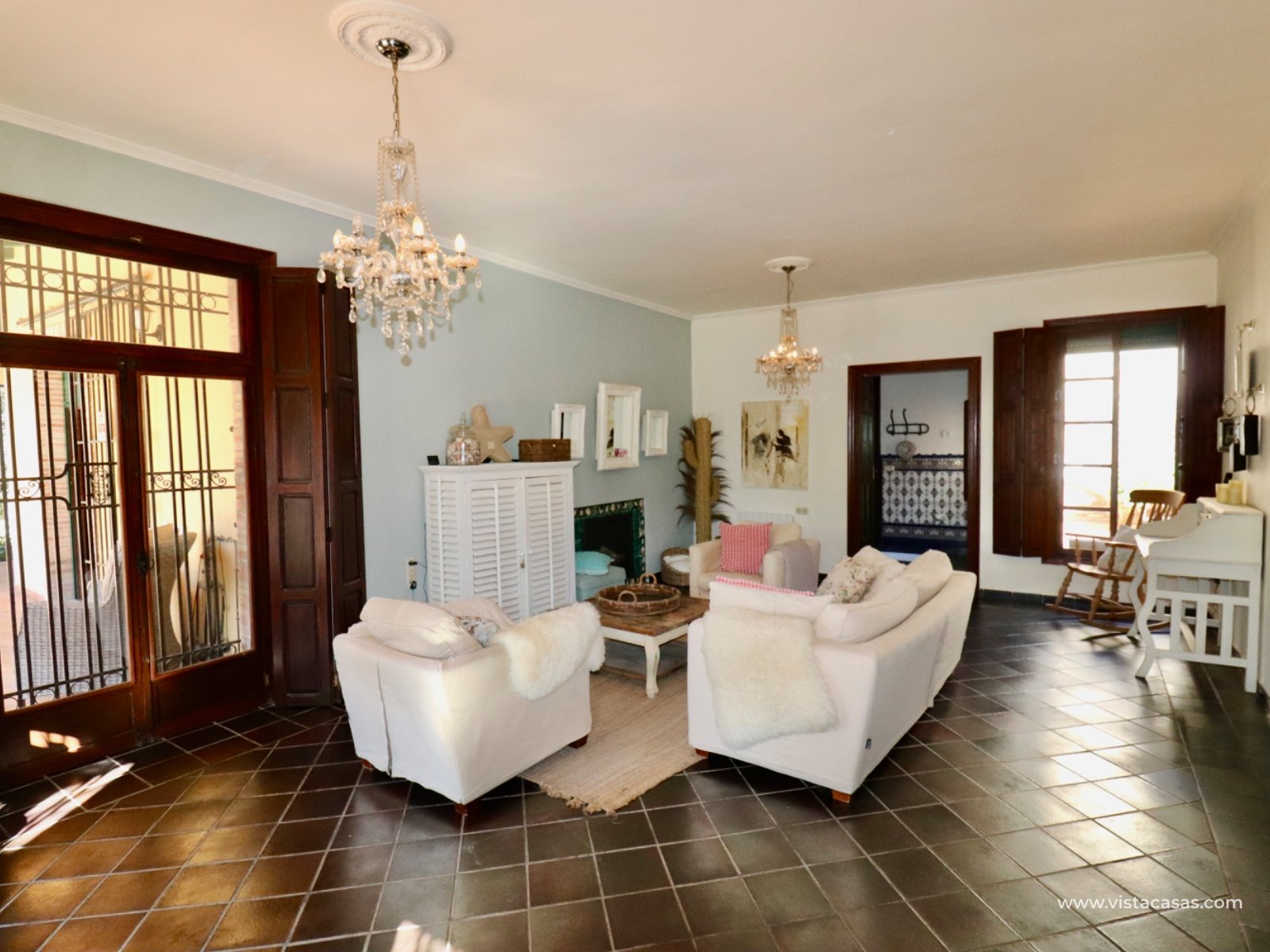 We proudly present this beautiful exceptional Andalusian style country house, completely renovated, rebuilt and excellently maintained. This extraordinary country villa is one of a kind. If you are looking for an exceptional hidden germ…this is the ONE! The main residence has 3 bedrooms , 2 bathrooms , large basement room and a lovely covered terrace on two sides overlooking the pool (12 x 5) and garden. In total there are 6 beds and 4 baths. In addition, this country house offers a surprising amount of extra space: In the garden there is a log cabin that has been converted into a guest house with a living, bedroom and a bathroom. Also space to put a kitchenette in. On the solarium there is a fully furnished apartment with 1 bedroom , kitchen and bathroom . An additional bedroom has also been created in a separate room.there is a specious garage The garden also features a pond that you can reuse or transform into a beautiful jacuzzi, for example. At the rear, there's space to create a separate entrance —ideal for storing a camper or caravan. Also a garage comes with this extraordinary country villa. This hidden germ is wheelchair accessible! Location: Located near Rojales/Herades and accessible by bike just a few minutes away. It's quiet, yet close to all amenities such as supermarkets, restaurants, and charming villages in the area. You are also in perfect location in terms of accessibility: Beaches of Guardamar / La Mata a short drive away Alicante Airport is approximately 35–40 minutes' drive away