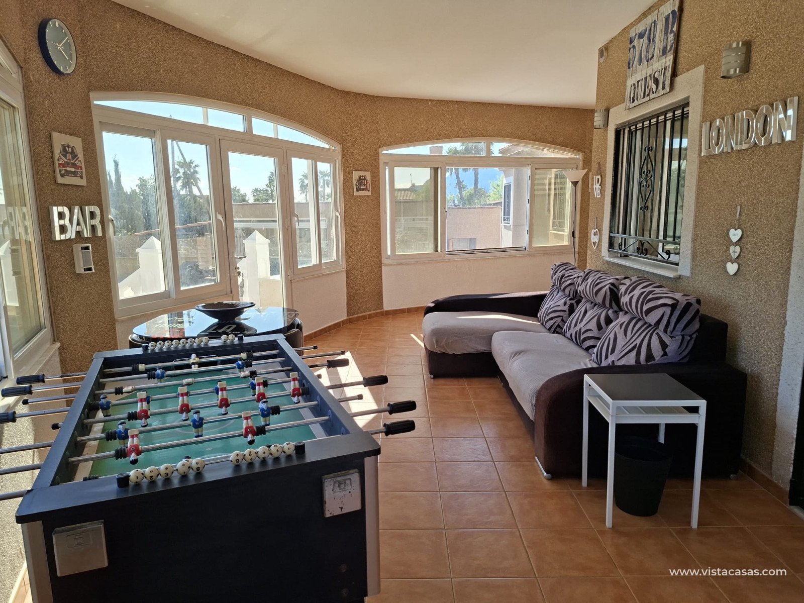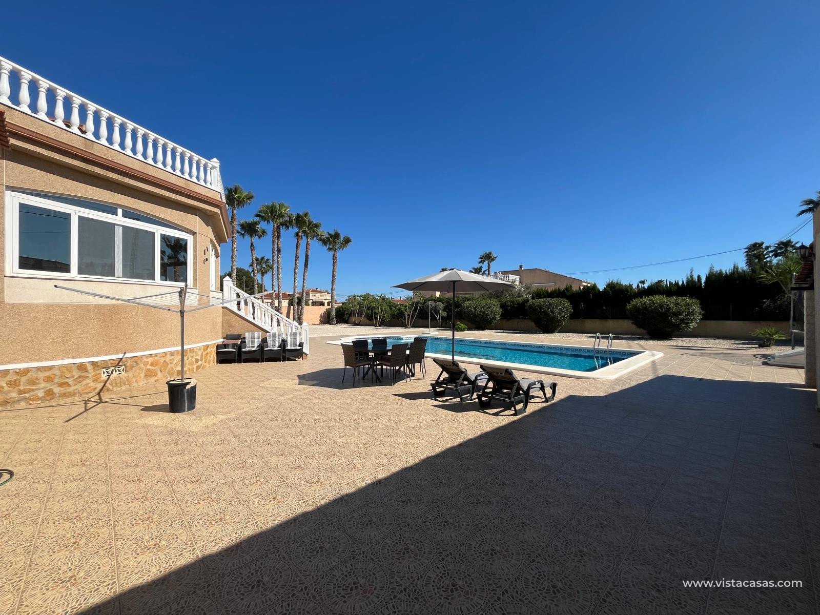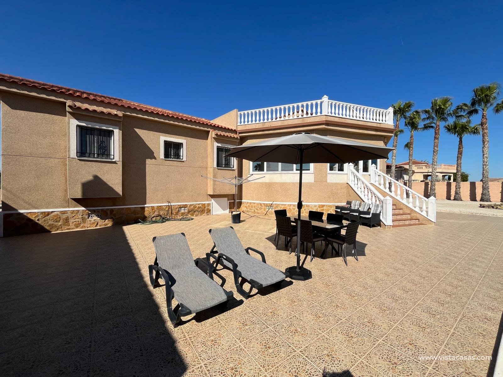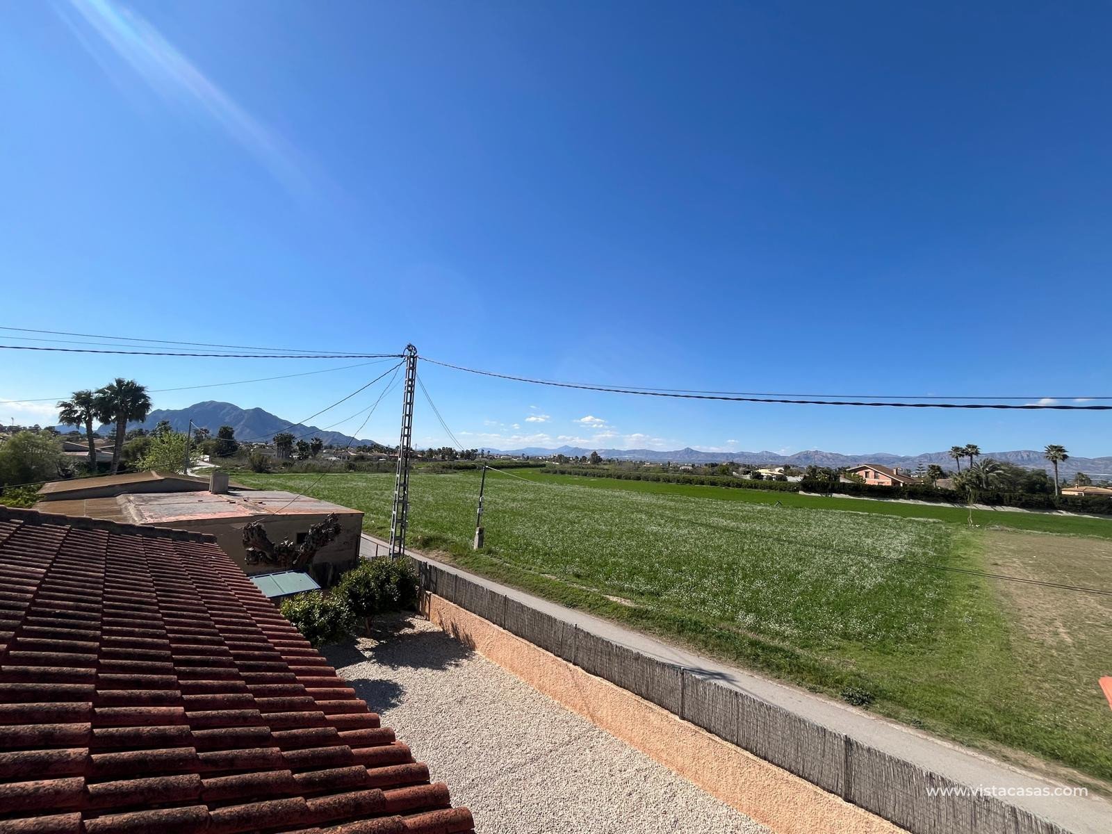 South-Facing 4/5 Bedroom Amelia Style Country Detached Villa with 12m x 6m Pool – Catral 224m² Build | 2,000m² Plot | Mountain Views This beautifully maintained, south-facing country villa is set in peaceful open countryside just outside Catral, offering privacy, space, and stunning mountain views—yet only a five-minute drive from the town’s shops, restaurants, and everyday services. Occupying a generous 2,000m² plot, the property offers 224m² of single-level living designed for comfort and versatility. Interior Features The villa is accessed via double doors into an entrance hallway, leading to an exceptionally spacious lounge with a log burner and striking high galleried ceiling. From here, a doorway connects to the large fully fitted kitchen and dining area, which opens onto a fully glazed curved terrace / sun room with direct access to the the large private roof top solarium and to the garden and pool area—perfect for year-round enjoyment. The main accommodation includes: Three double bedrooms, all with fitted wardrobes and en-suite shower rooms One single bedroom with fitted wardrobesAdditional family shower room Off the kitchen, steps lead down to a 25m² multi-purpose room, currently used as a second lounge / TV room / games room / office / storage area. This flexible space could easily be converted into a fifth bedroom if required. Outdoor Living The walled and landscaped garden has been thoughtfully designed for low maintenance and relaxed outdoor living. Features include: 12 x 6 metre private swimming pool Carport and ample off-road parking Mature palms and established trees Barbecue area 28m² glazed summer house / outdoor kitchen Outdoor shower room 4m x 4m wooden shed Small dog kennels The front of the property enjoys open countryside views stretching to the distant mountain range, reinforcing the villa’s tranquil rural setting. Additional Features Air conditioning throughout the propertyNewly installed EU-approved water treatment systemMonitored alarm system & CCTV Mains water and electricity Excellent outdoor entertaining spaceEasy & direct access from a tarmac road Location An ideal home for families, remote workers, or those seeking a peaceful rural retreat without isolation. The beaches of Costa Blanca South are just 15 minutes away, while the renowned golf courses at La Finca Golf and La Marquesa Golf Course can be reached in approximately 20 minutes.The AP7 motorway is a 3 minute drive taking you to Alicante airport in 20 minutes. Summary A fantastic opportunity to acquire a spacious, move-in-ready villa in a serene countryside location, yet close to all amenities and lifestyle attractions the Costa Blanca has to offer.