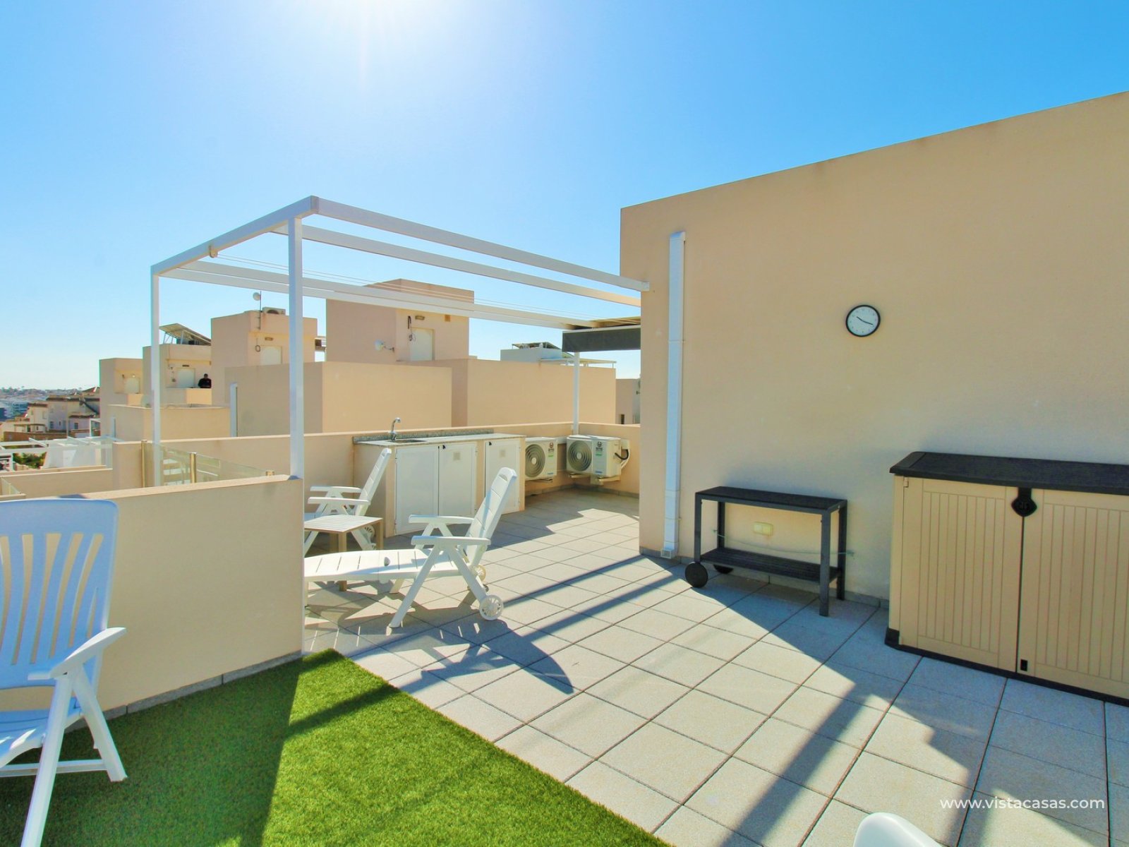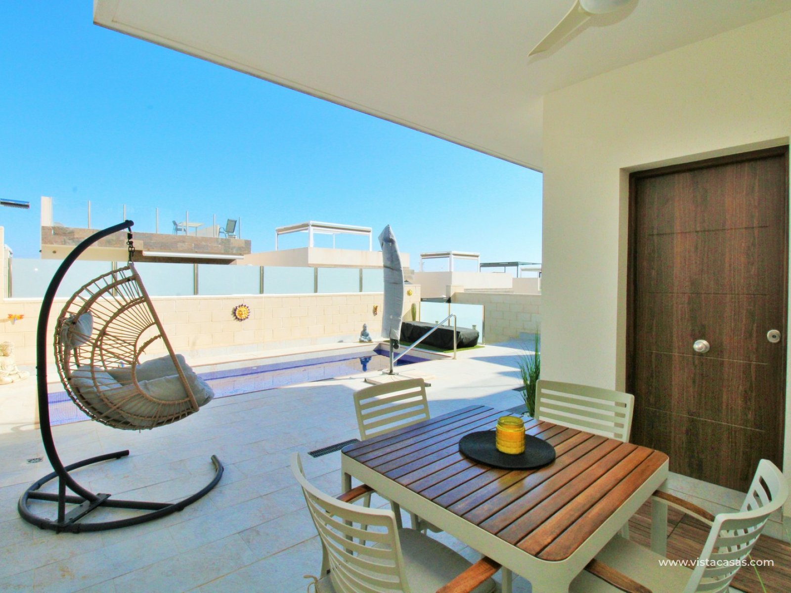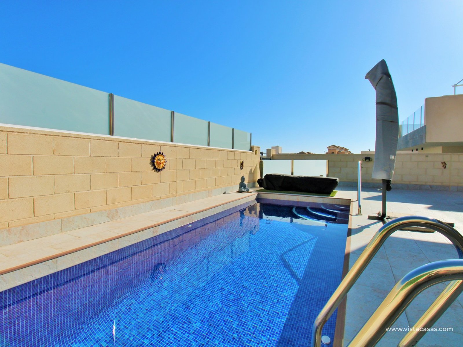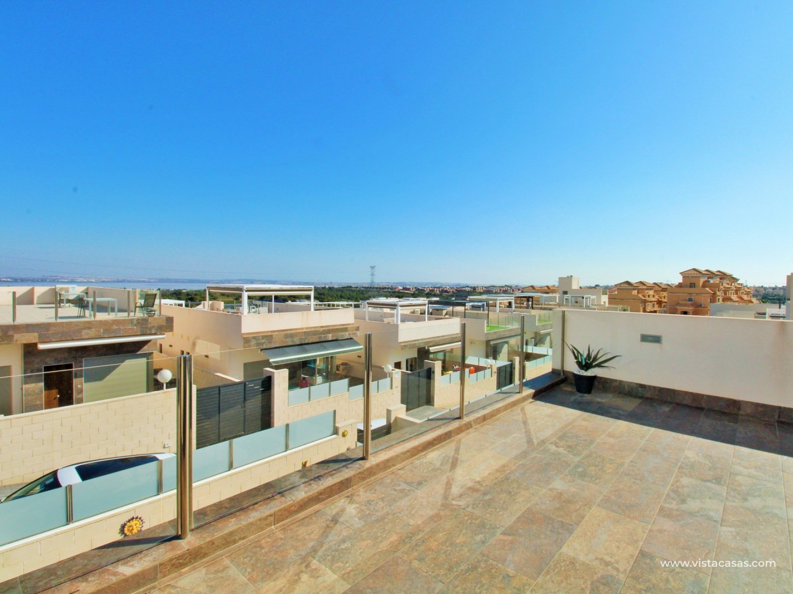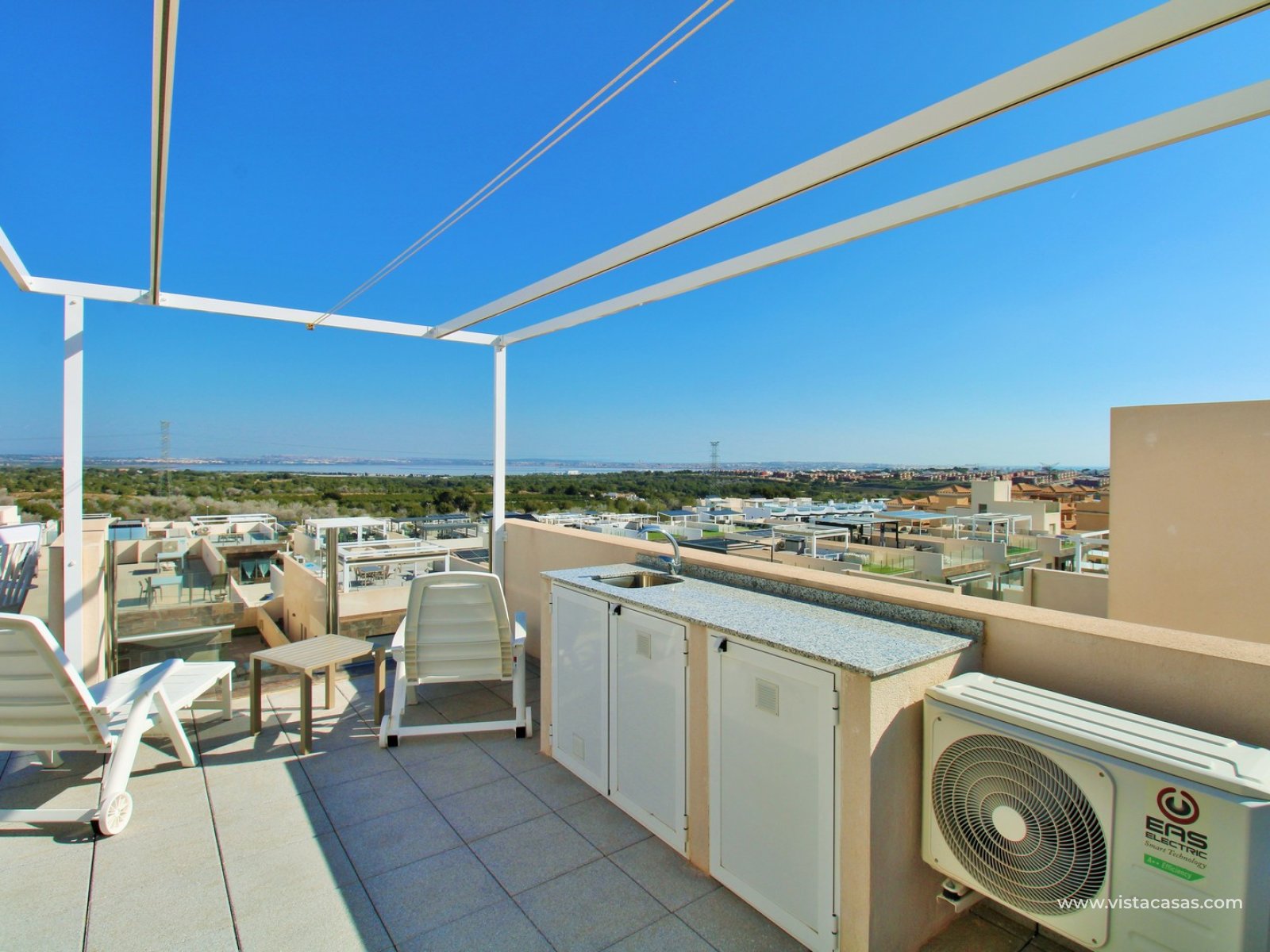 The standout feature is the private rooftop solarium, accessed via internal stairs. From here, you can enjoy open views towards the salt lake, with plenty of space for sunbathing, entertaining, or simply relaxing in complete privacy.