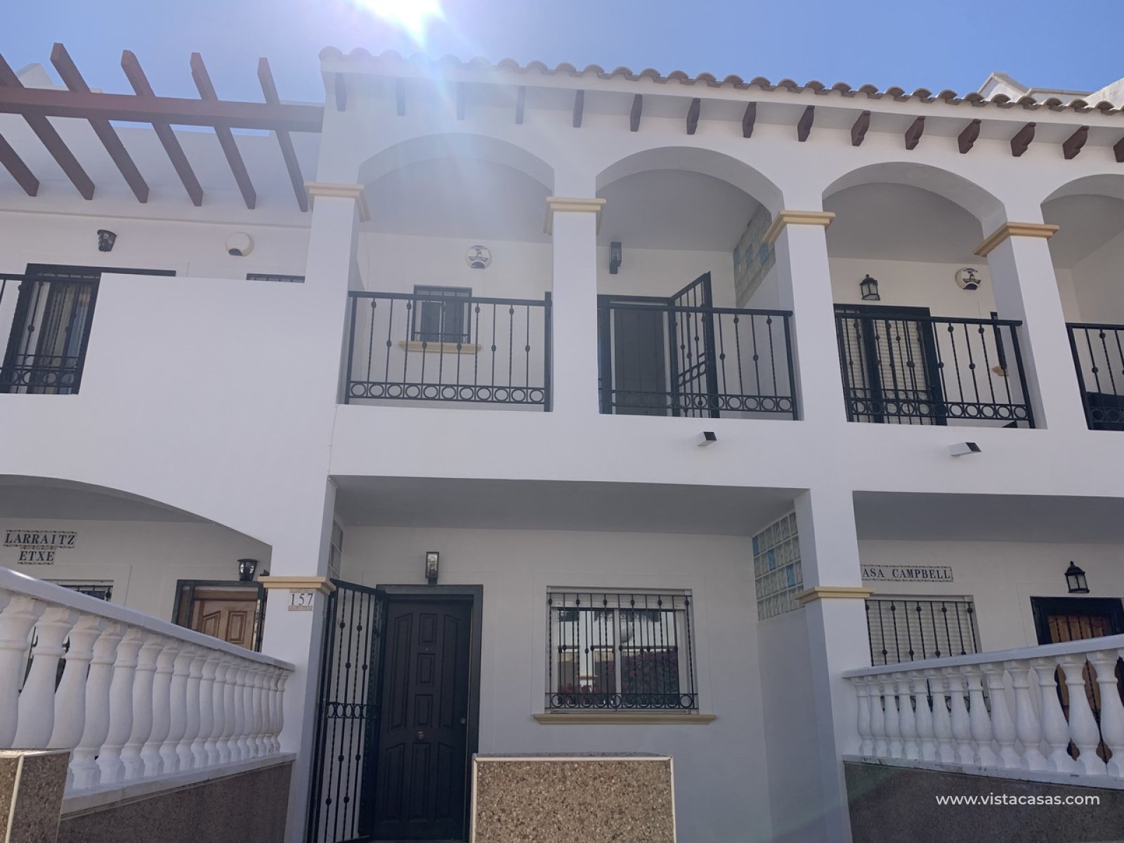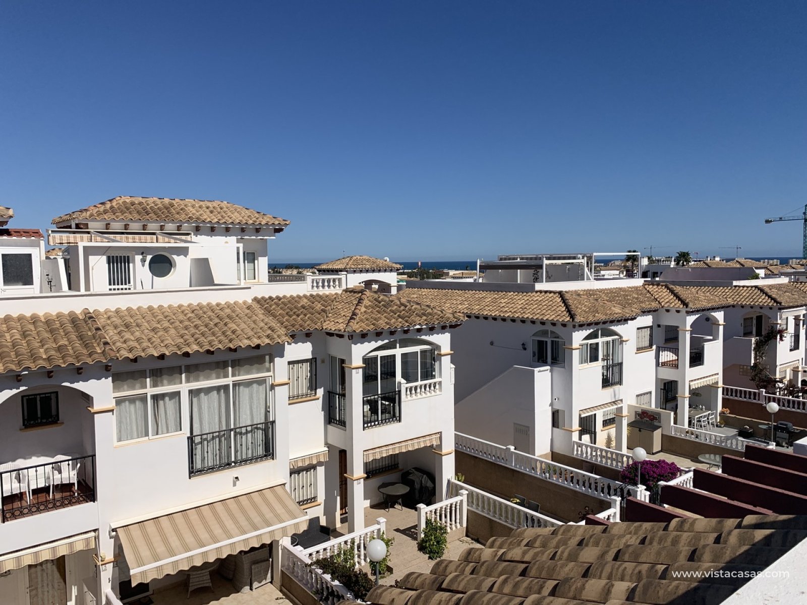 Stunning 2 Bedroom Townhouse in La Cinuelica R15, Punta PrimaDiscover the charm of this stunning 2 bedroom townhouse located in the desirable La Cinuelica R15, Punta Prima. This property boasts a spacious front garden, perfect for outdoor relaxation and entertaining friends and family. The gated secure complex offers peace of mind, complemented by beautiful communal gardens and two inviting community pools, ideal for those warm summer days.Step inside to find an open-plan living and dining area, featuring a fitted ceiling fan for added comfort. The generously-sized double bedrooms come with fitted wardrobes, providing ample storage space. The main bathroom is well-equipped with a shower, bath, bidet, and sink, ensuring convenience for all residents. Enjoy morning coffee on the front balcony accessible from the main bedroom or soak up the sun on the large solarium with stunning sea views.This townhouse is just a stone's throw away from beautiful beaches, vibrant bars, restaurants, and local shops, making it an ideal location for those who love the coastal lifestyle. While the property requires a new kitchen to personalise it to your taste, it presents a fantastic opportunity to create your dream home in a sought-after area. With reasonable community fees of just 500 Euros per year and an additional Suma of 250 Euros annually, this is a chance not to be missed.Schedule a viewing today and start envisioning your new life in the picturesque Punta Prima!