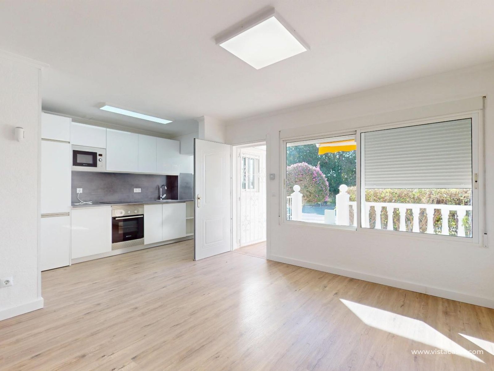 Fully Renovated Bungalow in Villamartín Ready to Move In We present this fantastic property with a complete renovation just finished, where every detail has been carefully designed to offer comfort, style, and functionality.The interior features wood-effect laminate flooring, adding warmth throughout the home, and a spacious, bright living-dining area, perfect for relaxing or entertaining.The property offers 2 bedrooms with built-in wardrobes, ideal for maximizing space, and a modern bathroom with a walk-in shower and glass screen. The brand-new kitchen comes fully equipped, including a washing machine and dishwasher, ready for everyday living. There is also a practical outdoor storage cupboard. Outdoor Spaces to Enjoy All Year RoundThe home boasts a cozy front porch with awning and a large rear terrace, perfect for enjoying the Mediterranean climate. All within a community featuring well-maintained gardens throughout the year. Prime Location Everything Within Walking Distance 2 minutes La Rioja Shopping Centre (restaurants, bank, hairdressers, etc.) 5 minutes Dialprix supermarket Golf courses just a short distance away 6 minutes by car Zenia Boulevard and beaches such as La Zenia Low Running CostsProperty tax (IBI) approx. €200/yearCommunity fees €180/quarter A bright home located in a quiet community, ideal as a permanent residence or a holiday property.
