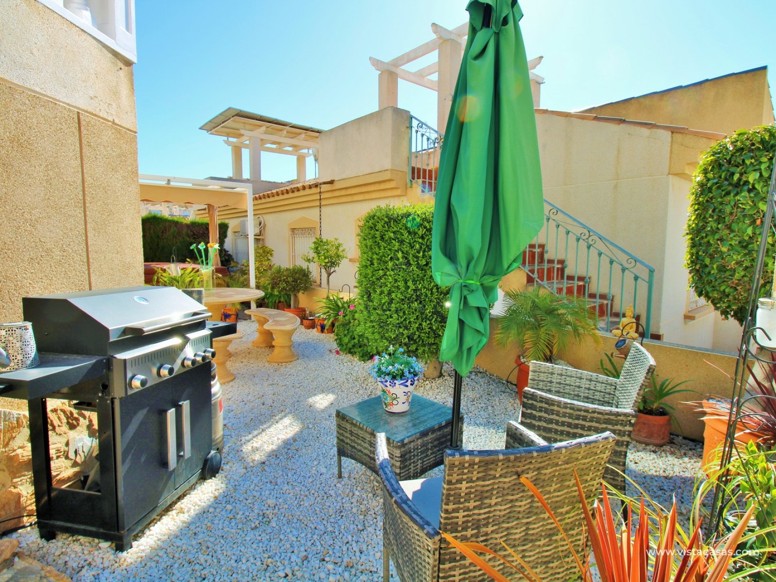 Located within the popular residential community of Loma Golf in Villamartin, this well-presented south-facing 2 bedroom bungalow offers excellent outdoor space, a sunny private garden, and lovely sea views from the roof solarium.