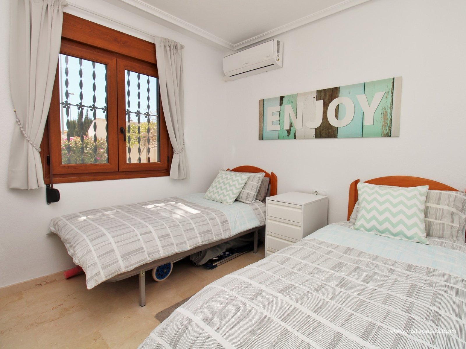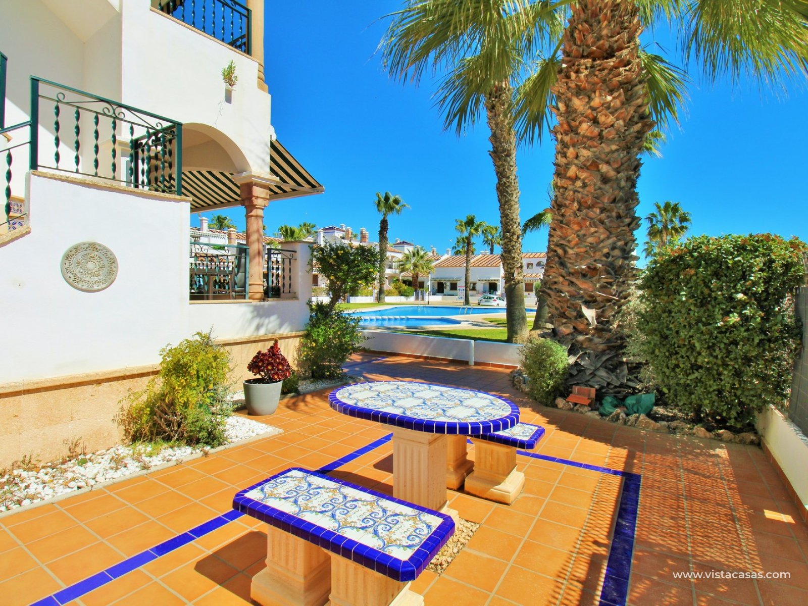 Immaculately presented ground floor 2 bedroom, 2 bathroom apartment ideally positioned directly overlooking the communal pool within the highly sought-after gated community of R9 in Pau 8, Villamartin.