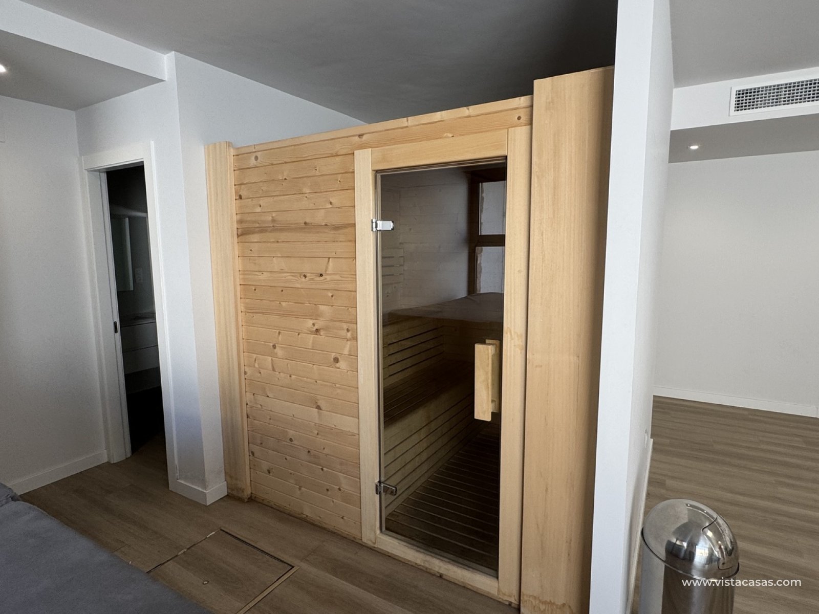 Located in the prestigious Amanecer Deluxe, this gorgeous and exceptionally spacious three-bedroom, two-bathroom apartment offers luxury coastal living just moments from everything you need in Playa Flamenca. The property boasts a large private terrace with panoramic sea views, providing the perfect setting for outdoor dining, entertaining, or simply relaxing while enjoying the Mediterranean breeze and spectacular scenery. Inside, the apartment features a bright and modern open living space, designed for comfort and style. The master bedroom includes a private en-suite bathroom, while two additional double bedrooms share a well-appointed family bathroom—ideal for families, guests, or those working remotely. Set within a stunning and impeccably maintained gated complex, residents benefit from beautifully landscaped communal gardens, a large swimming pool, and exclusive wellness facilities including a gym and sauna, creating a true resort-style living experience. The location is unbeatable—just a stone’s throw from supermarkets, bars, restaurants, and everyday amenities, making it possible to enjoy a vibrant lifestyle without needing to drive. This outstanding apartment combines generous living space, breathtaking views, and premium community facilities, making it an ideal permanent residence, luxurious holiday home, or high-demand rental investment on the Costa Blanca.
