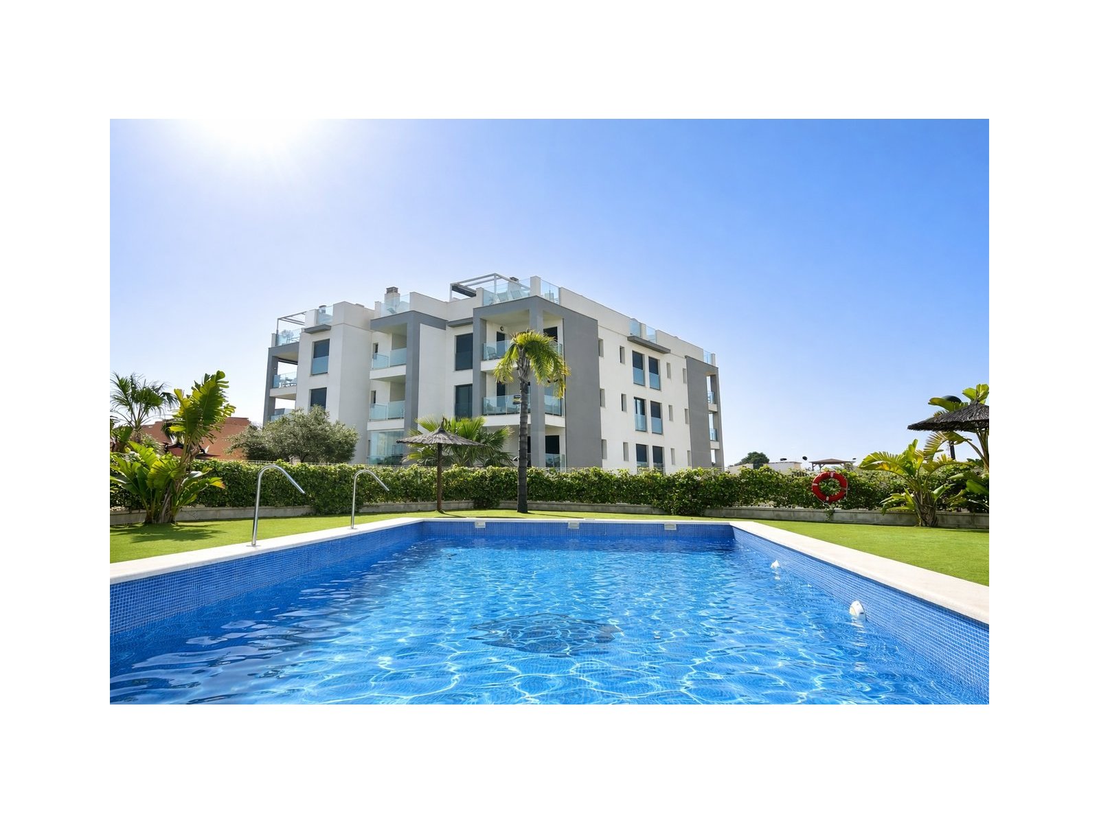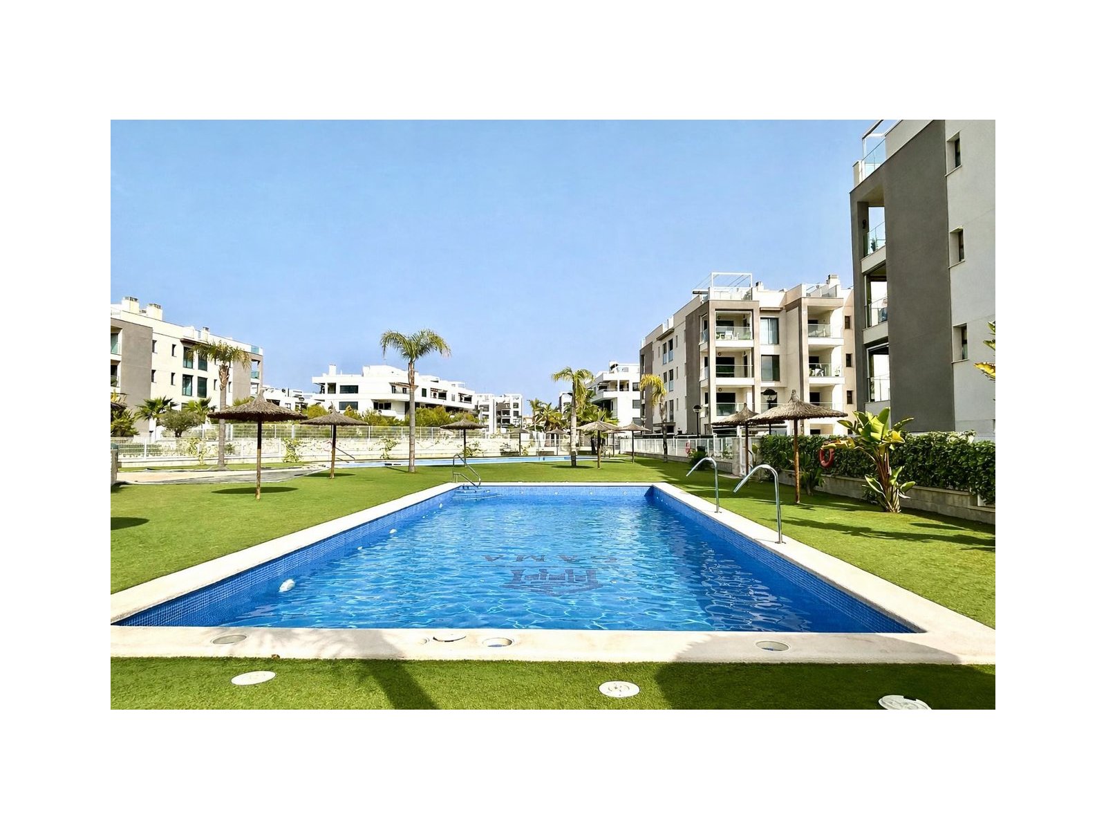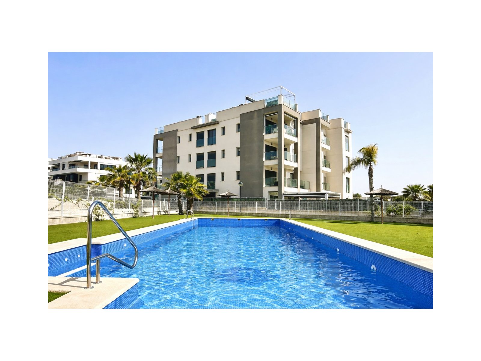Discover stylish Mediterranean living in this beautifully presented 2-bedroom, 2-bathroom apartment located in the sought-after Valentino Golf complex in Villamartín. This modern home offers a bright and airy open-plan layout, designed to maximize natural light and create a seamless flow throughout the living spaces. The spacious lounge opens onto a private balcony, where you can unwind while enjoying picturesque views over the lush communal gardens and sparkling pools—perfect for soaking up the relaxed Costa Blanca lifestyle. The standout feature is the private solarium, offering an additional sun-drenched space ideal for entertaining, sunbathing, or simply enjoying panoramic views in complete privacy—your own rooftop retreat under the Spanish sun. The master bedroom is a true sanctuary, featuring a private en-suite bathroom and direct access to the balcony, allowing you to wake up to tranquil views each morning. A second well-proportioned bedroom and a contemporary family bathroom complete the interior. Residents of this popular gated community benefit from exceptional on-site amenities, including multiple swimming pools, a tennis court, and a children’s playground—ideal for both families and holidaymakers alike. The property also includes a generous private parking space in the underground garage, offering both convenience and security. Whether you're looking for a permanent residence, a holiday home, or a smart investment, this apartment combines comfort, location, and lifestyle in one of Villamartín’s most desirable developments