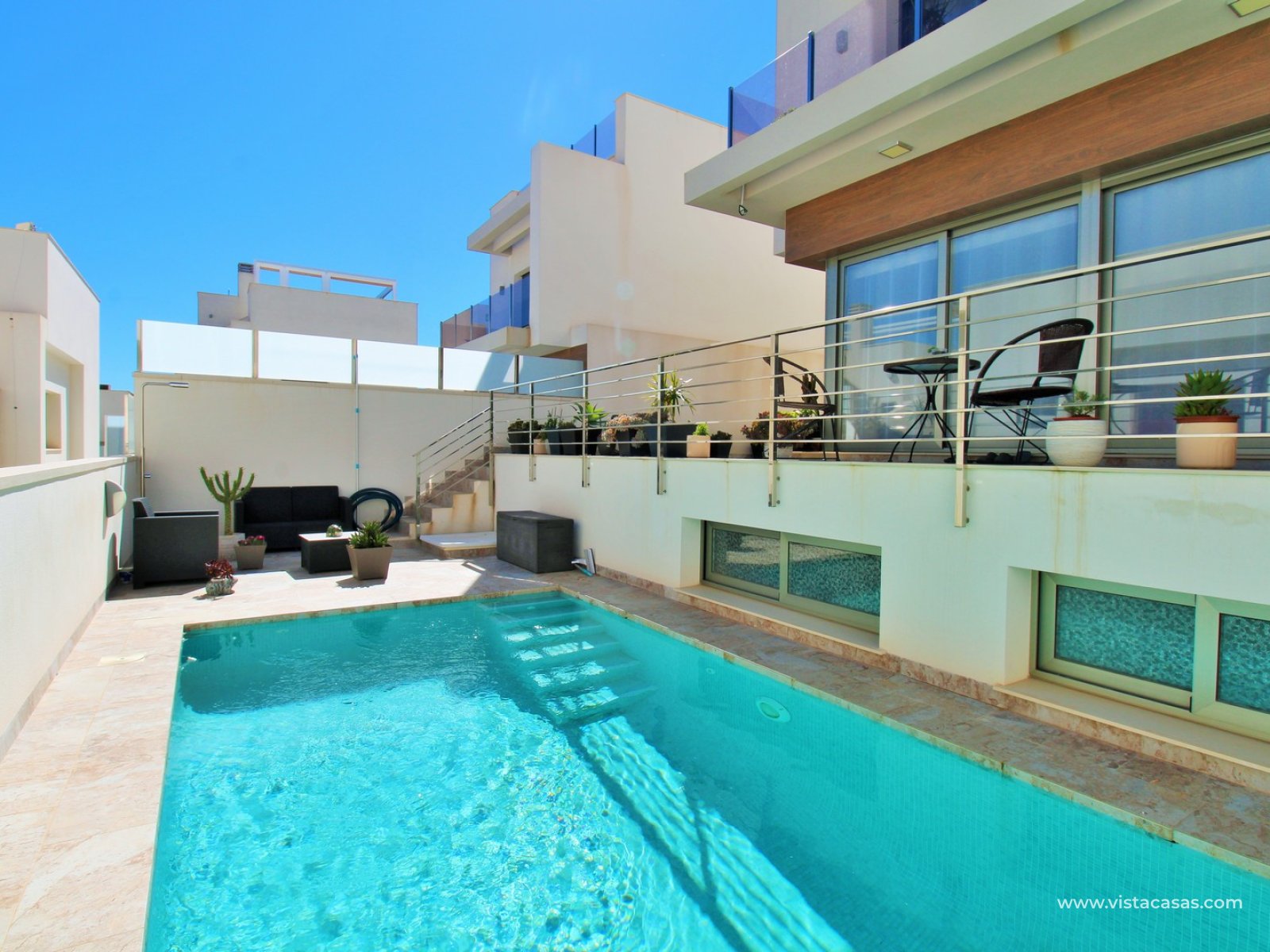 Located within the sought-after residential community of Marina III in Villamartin (Pau 26), this modern detached villa built in 2022 offers spacious, high-quality living across multiple levels, with a private pool, solarium, and a versatile basement level.
