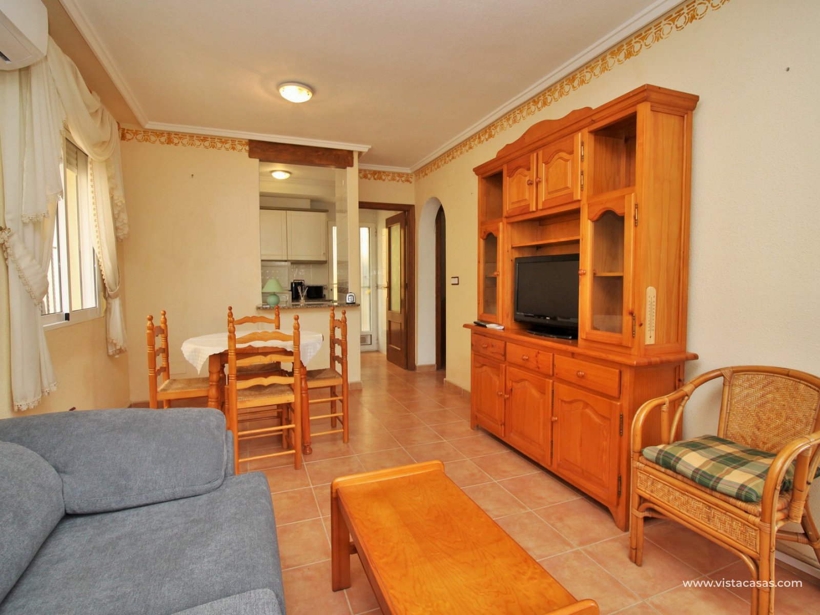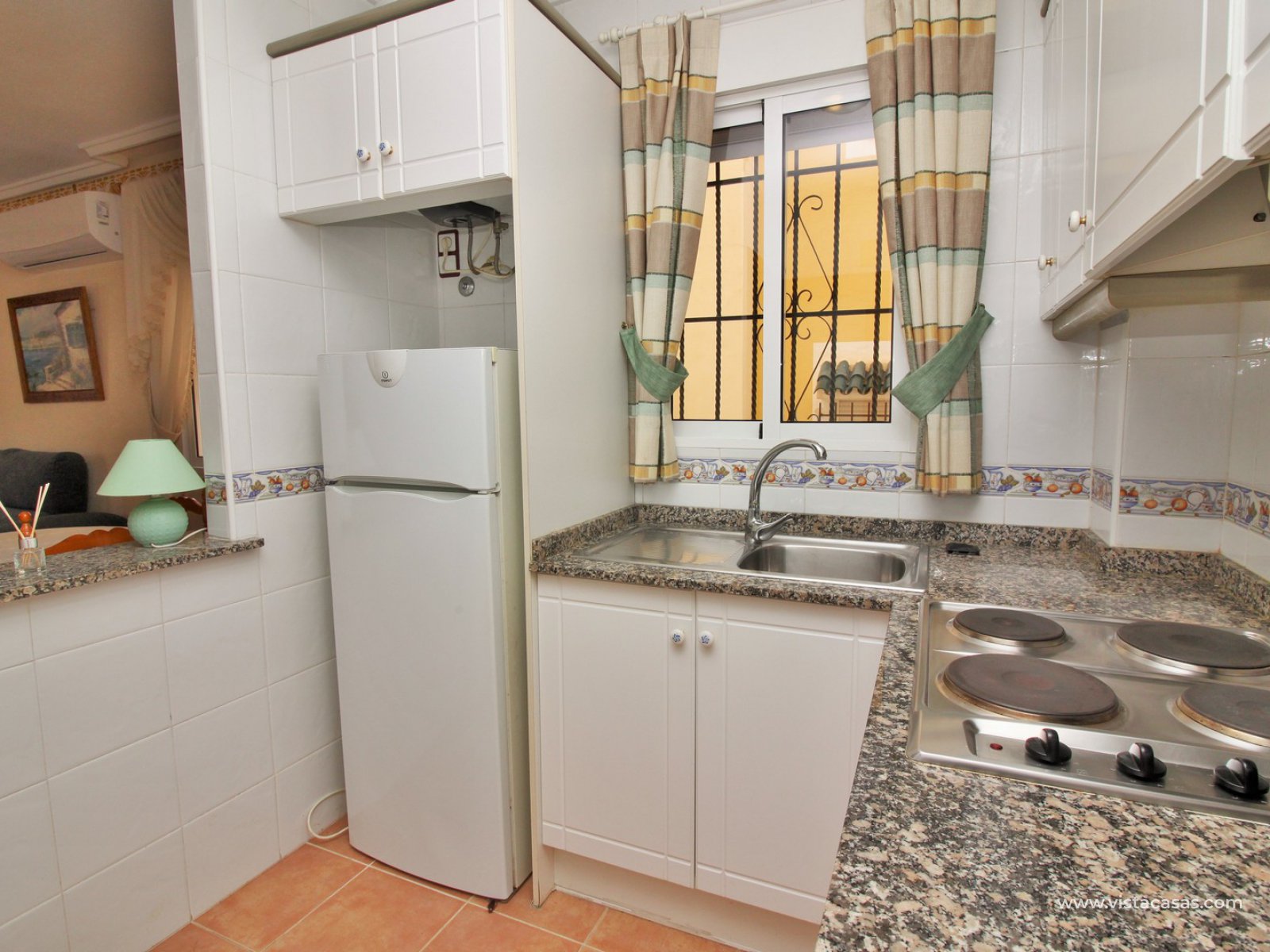 The living accommodation on the ground level comprises of a lounge-dining area, with separate kitchen to the rear, 1 twin bedroom with fitted wardrobes, and a toilet with small utility area for a washing machine. Upstairs are a further 2 bedrooms with fitted wardrobes, and a family bathroom. The master bedroom offers an en-closed balcony for use during the winter months. Sold as seen with air-conditioning.