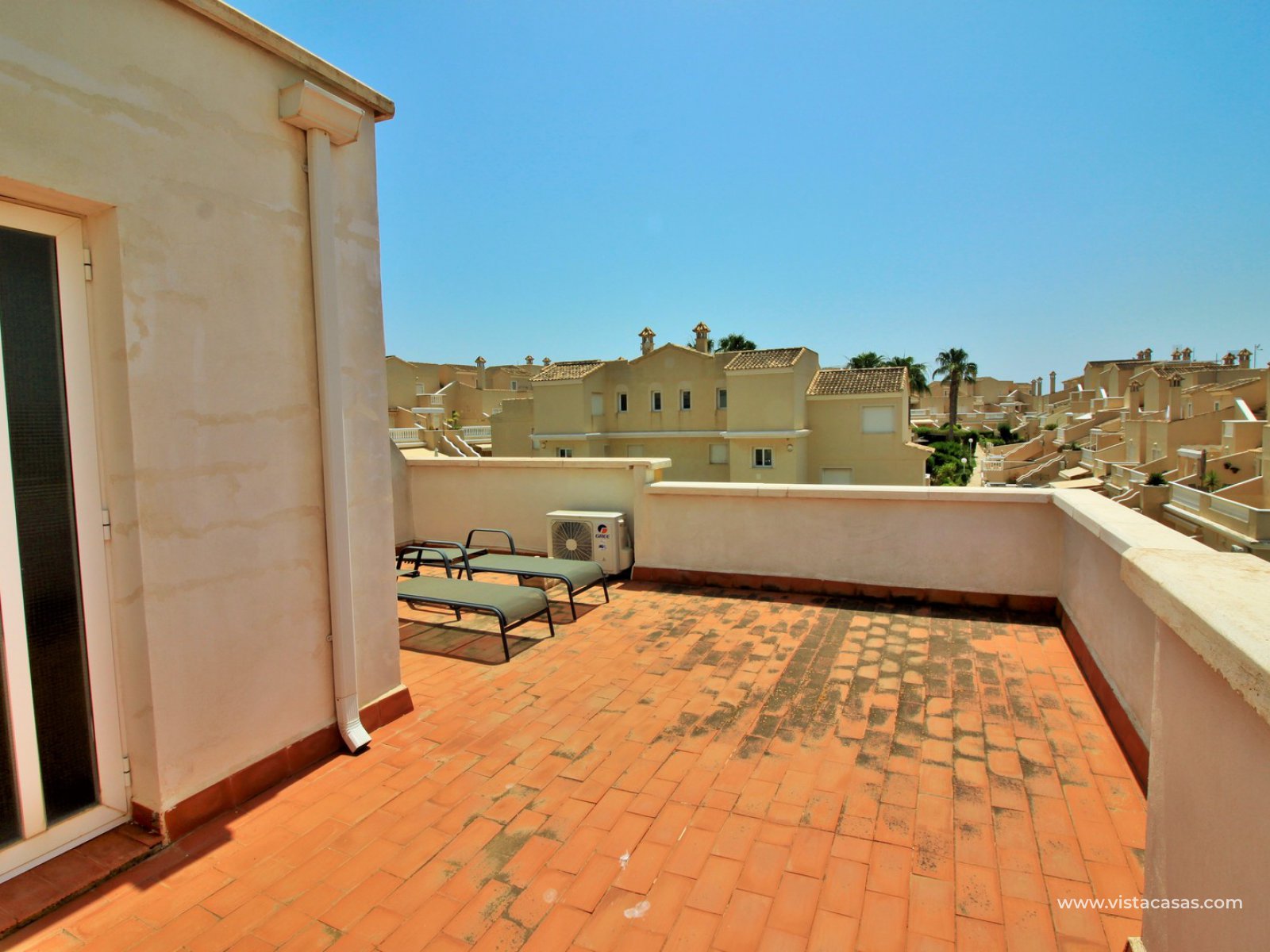 Competitively priced South facing 3 bedroom townhouse for sale in the residential community of Pinewood Valley in Los Altos, Orihuela Costa. The property is located just an 8 minutes' walk from the Via Park III commercial centre, and just 350 metres from the popular Emerald Isle bar in La Florida. The property offers good outdoor space including a private garden and large roof solarium. Part of a community with use of a communal pool.