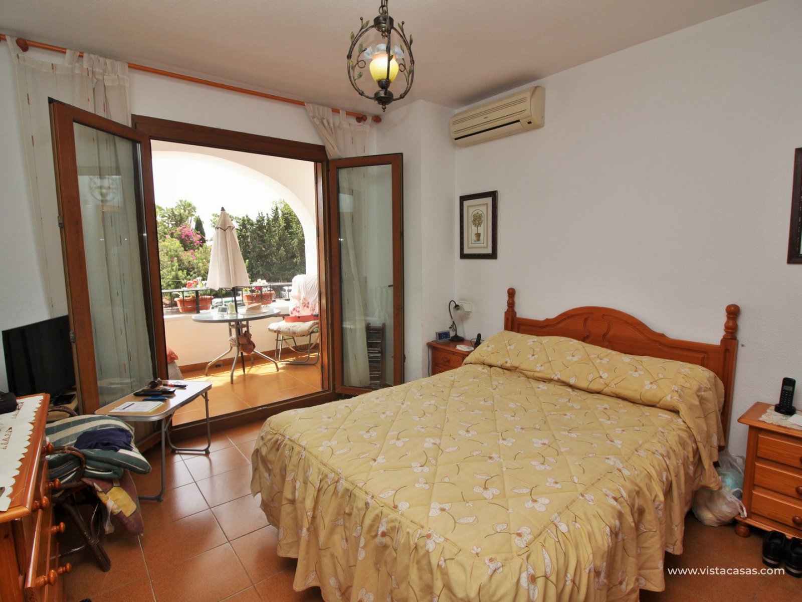 The ground floor comprises of a lounge-dining area, separate kitchen and downstairs toilet. Internal stairs leads up to the 2nd level, from the landing you can access 2 double bedrooms with fitted wardrobes, and a family bathroom with walk-in shower. From the master bedroom, French doors leads out onto the South facing covered balcony. Sold furnished with air-conditioning.