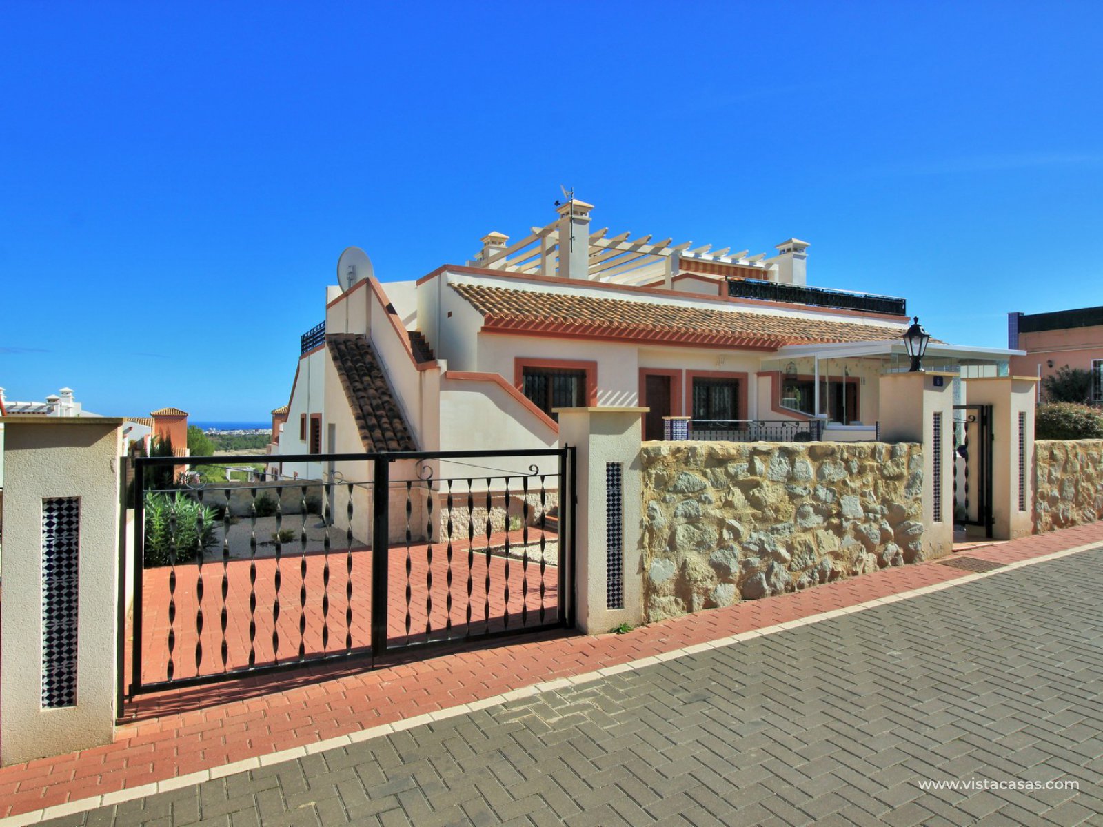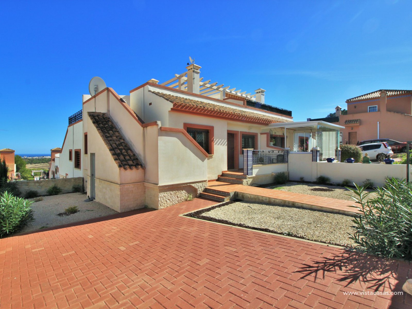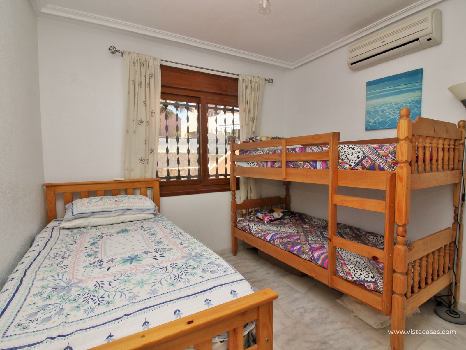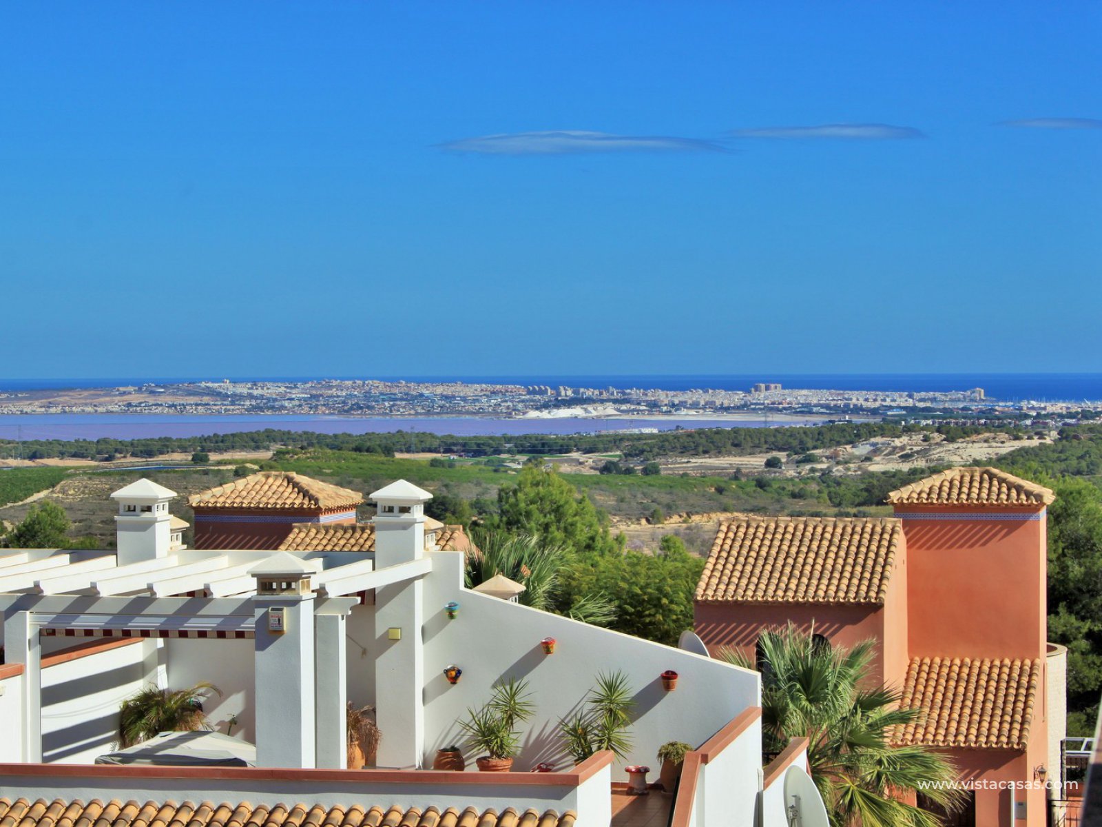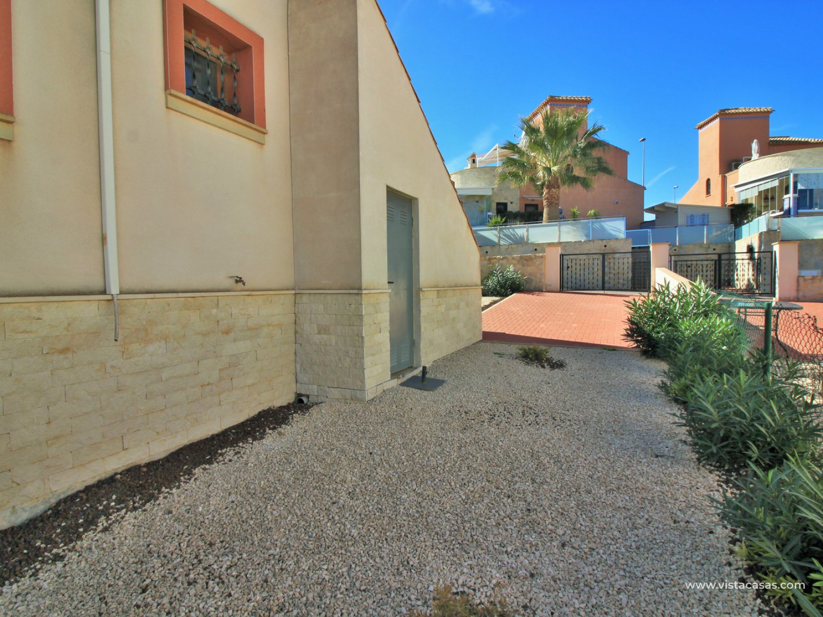 Wonderful Jumilla style bungalow for sale in the gated complex of La Cañada in San Miguel de Salinas. The bungalow is located in the secure gated community of La Cañada Phase II, with use of a communal pool, and offers great views of the sea, countryside and the Torrevieja salt lakes from the massive roof solarium. The current owners have taken very good care of the property, and is sold furnished with white goods. The property offers a very generous plot size with off-road parking and storage room.