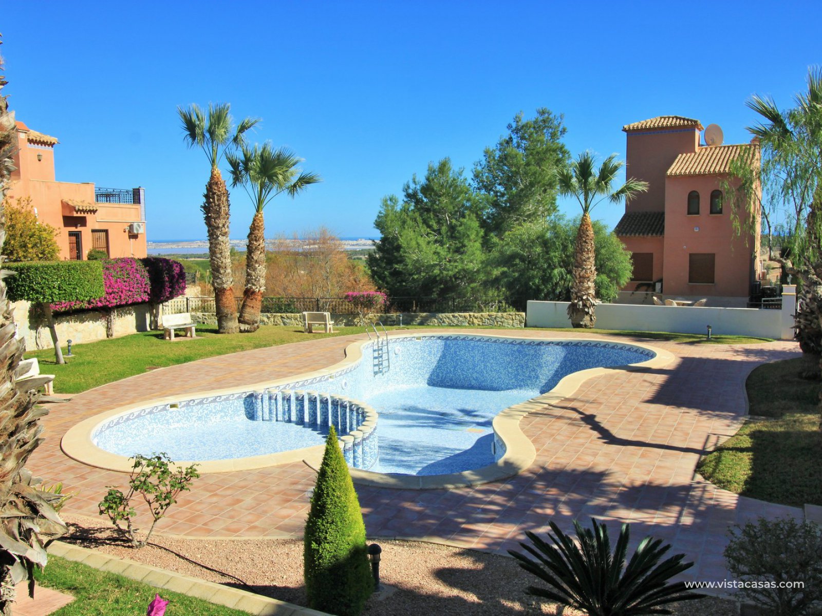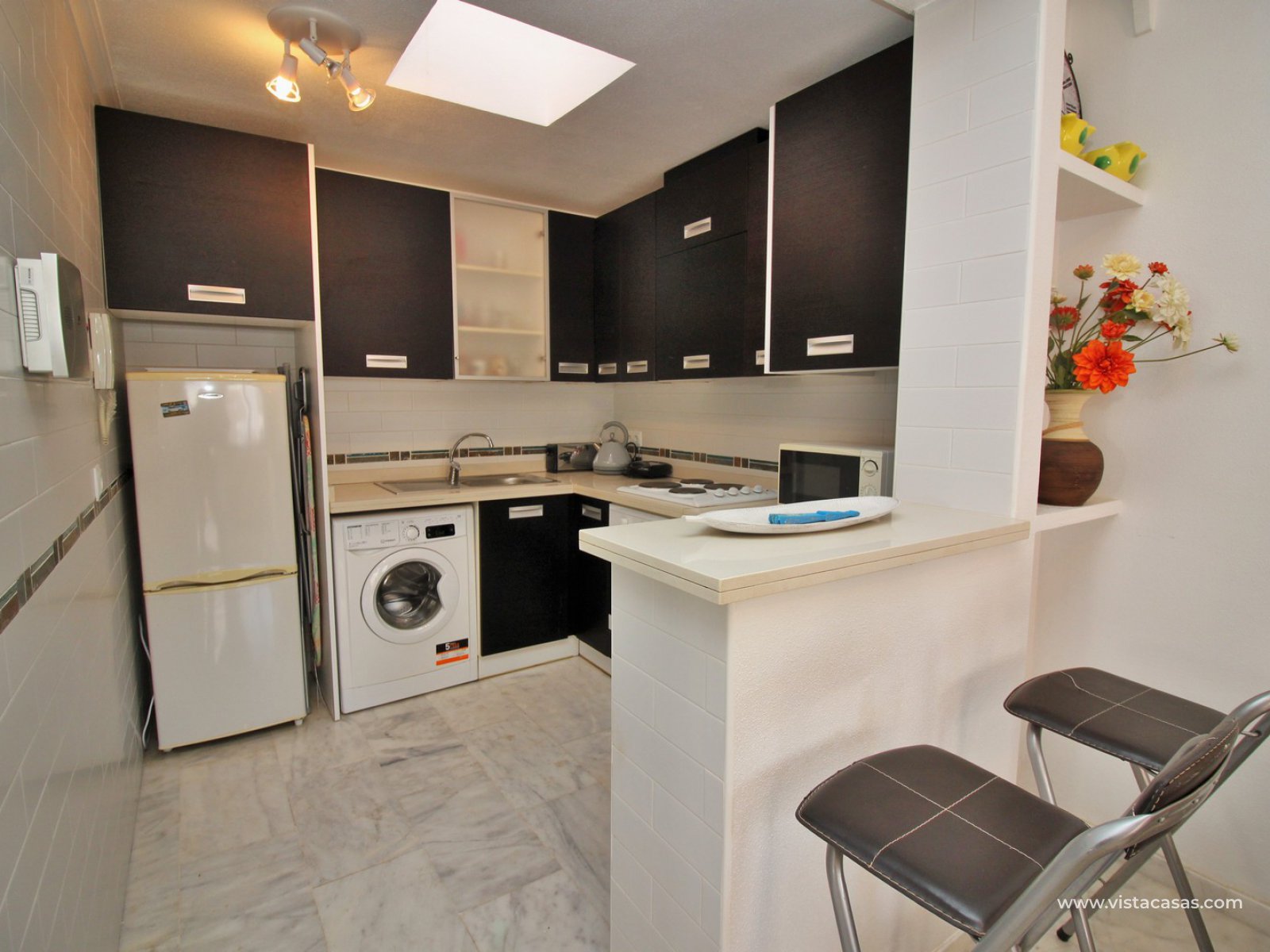 La Cañada is a well maintained community where homeowners has use of a beautiful communal pool and garden areas. The communal pool is currently undergoing refurbishment, ready for when the hotter months arrives. The style of the properties in the complex are very charming with a very Spanish feel. Located just 3km from the town centre of San Miguel de Salinas and the Villamartin Plaza and golf course. The beaches of Orihuela Costa are within a 15 minute drive.