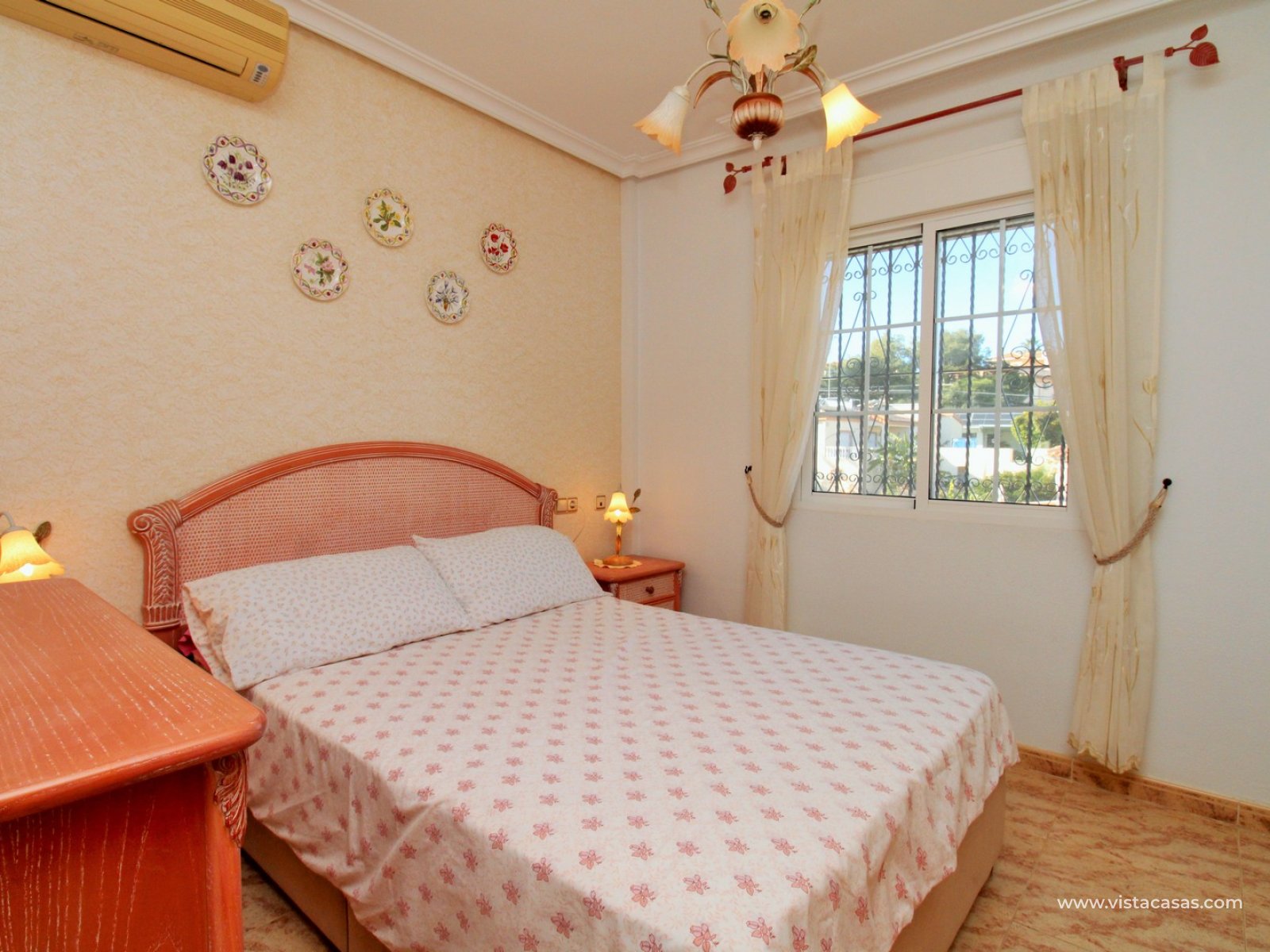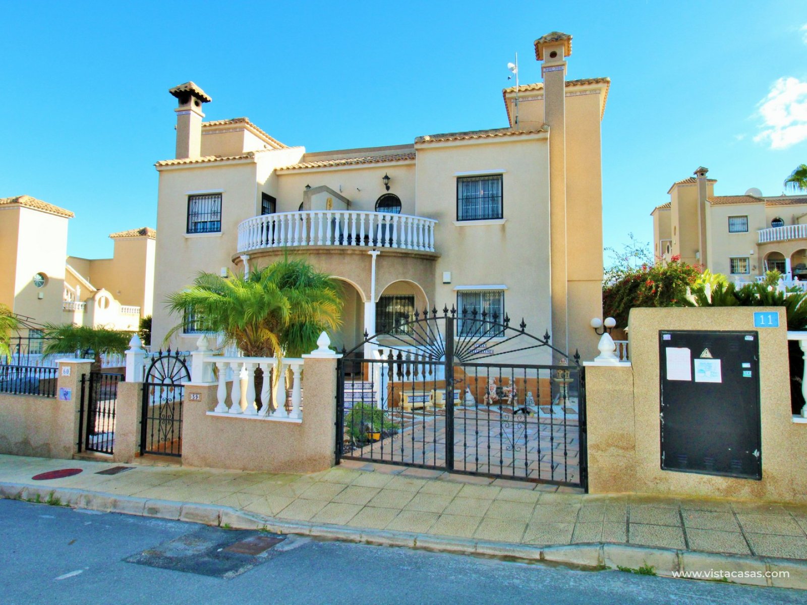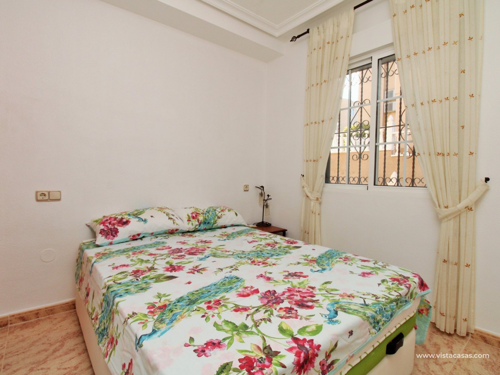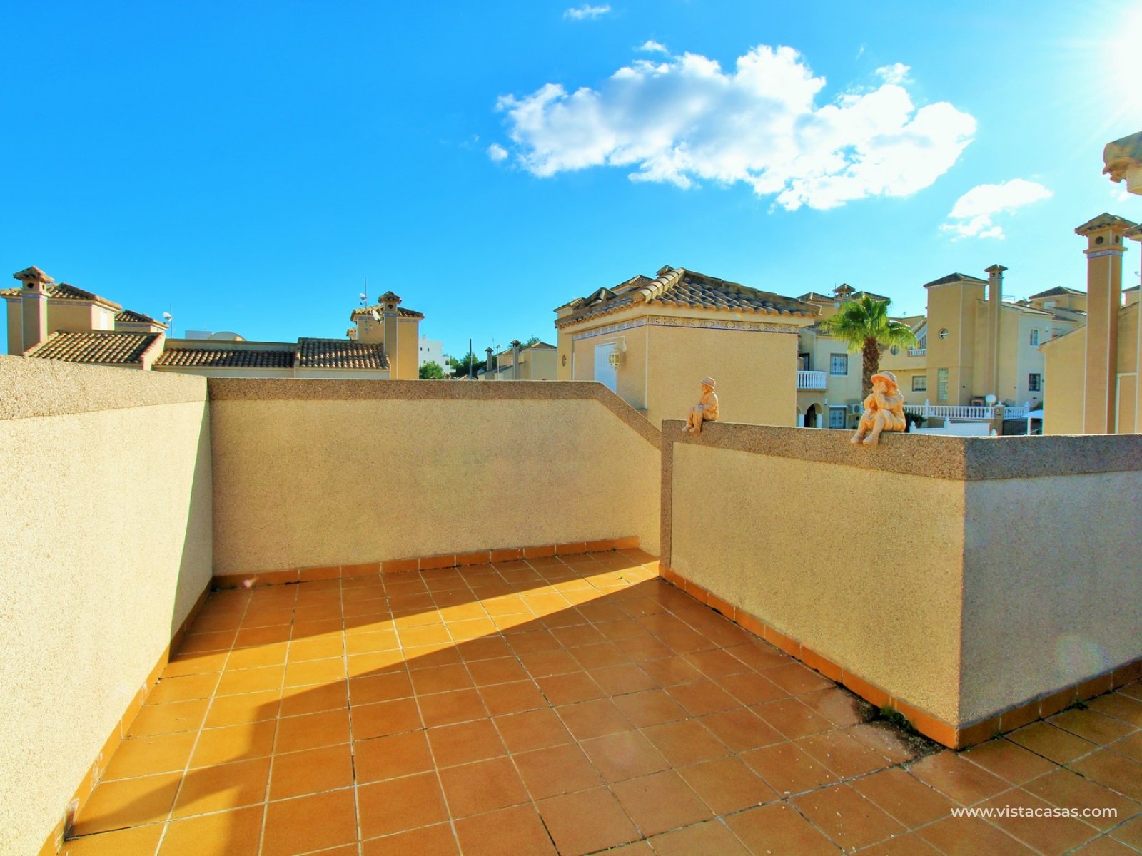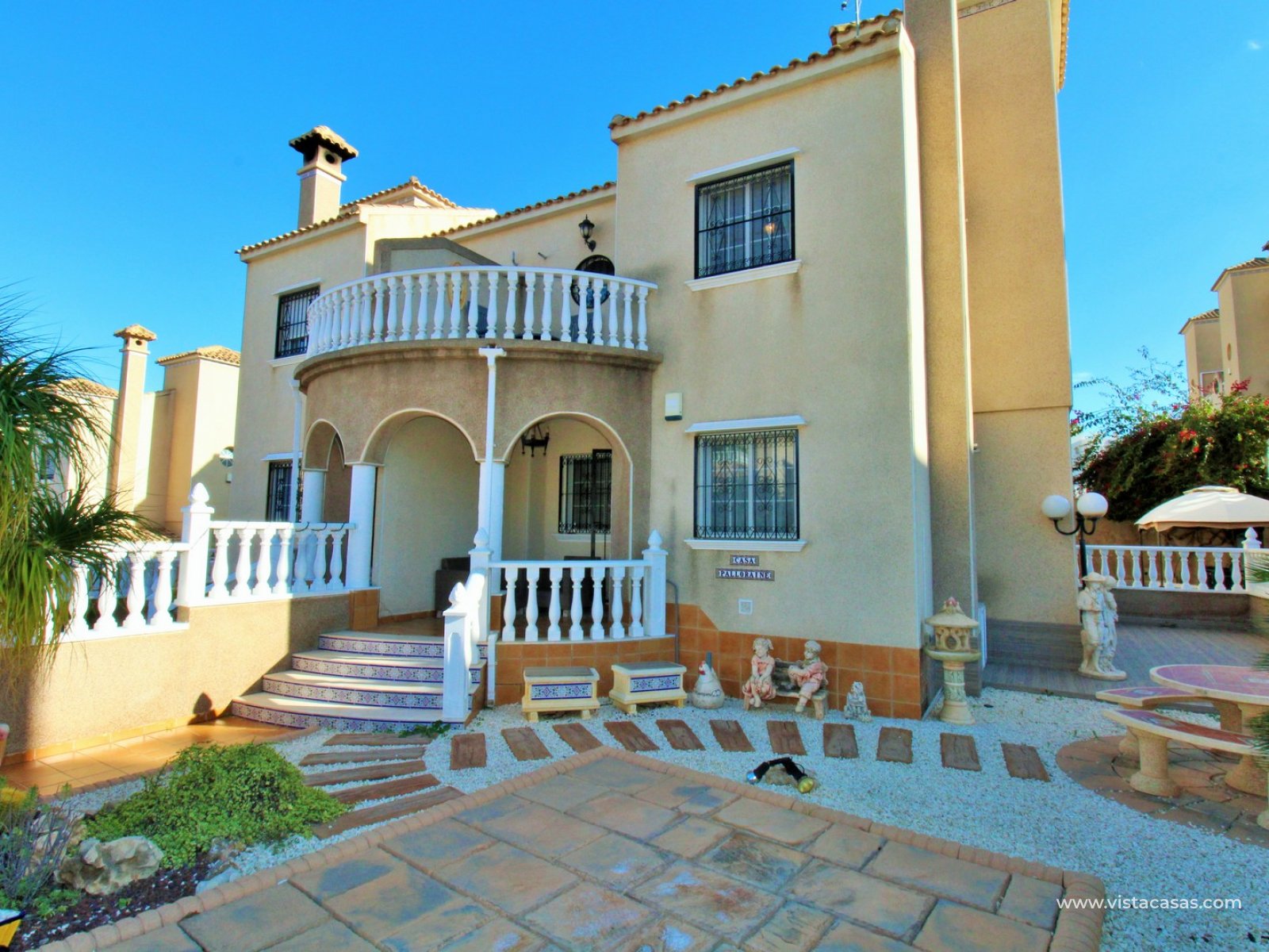 Trädgården är delvis kaklad med planterade ytor och ger en bra balans mellan användbar uteplats och grönska. Bostaden ligger nära det gemensamma poolområdet och i ett populärt bostadsområde i Villamartin.