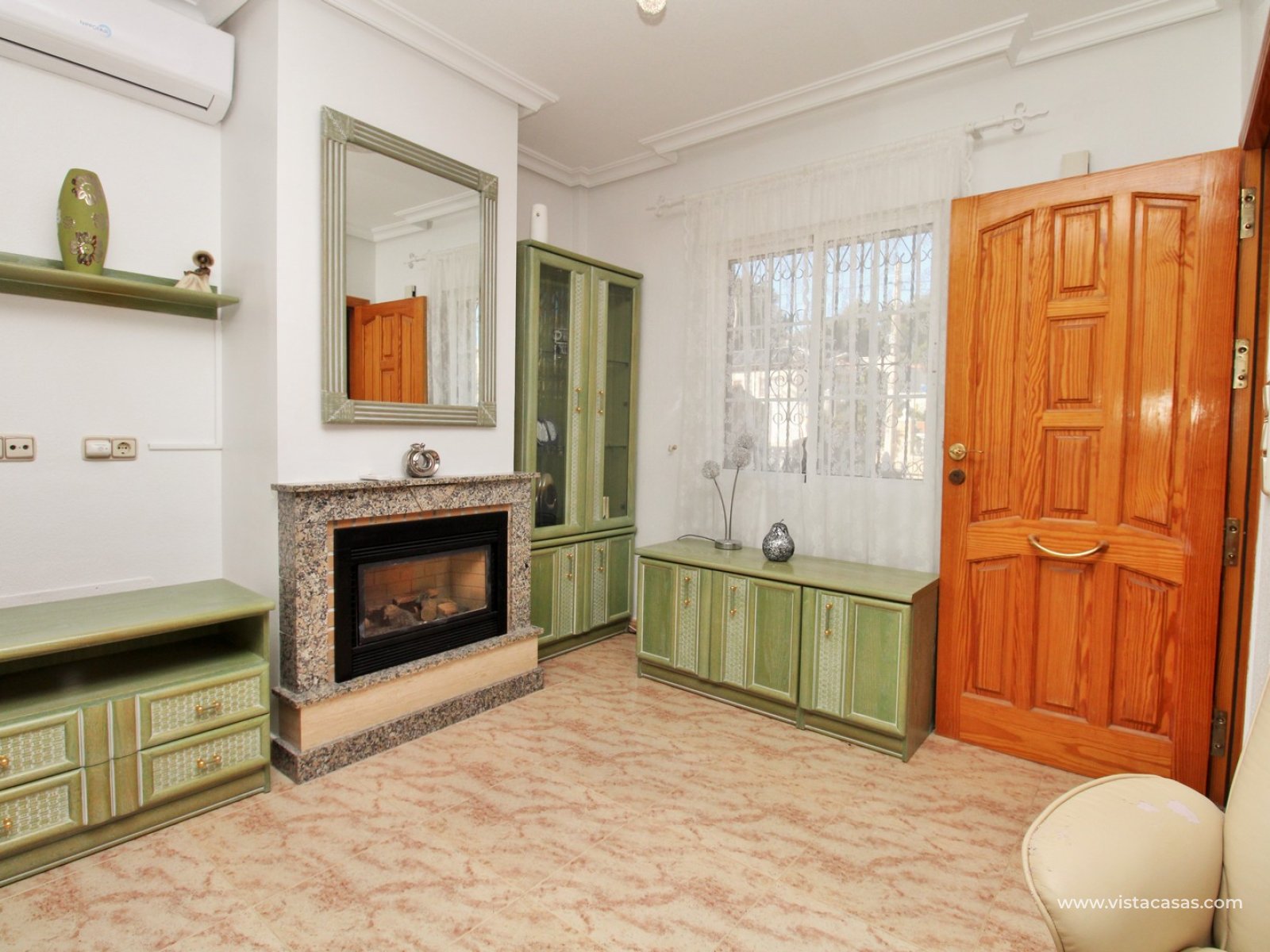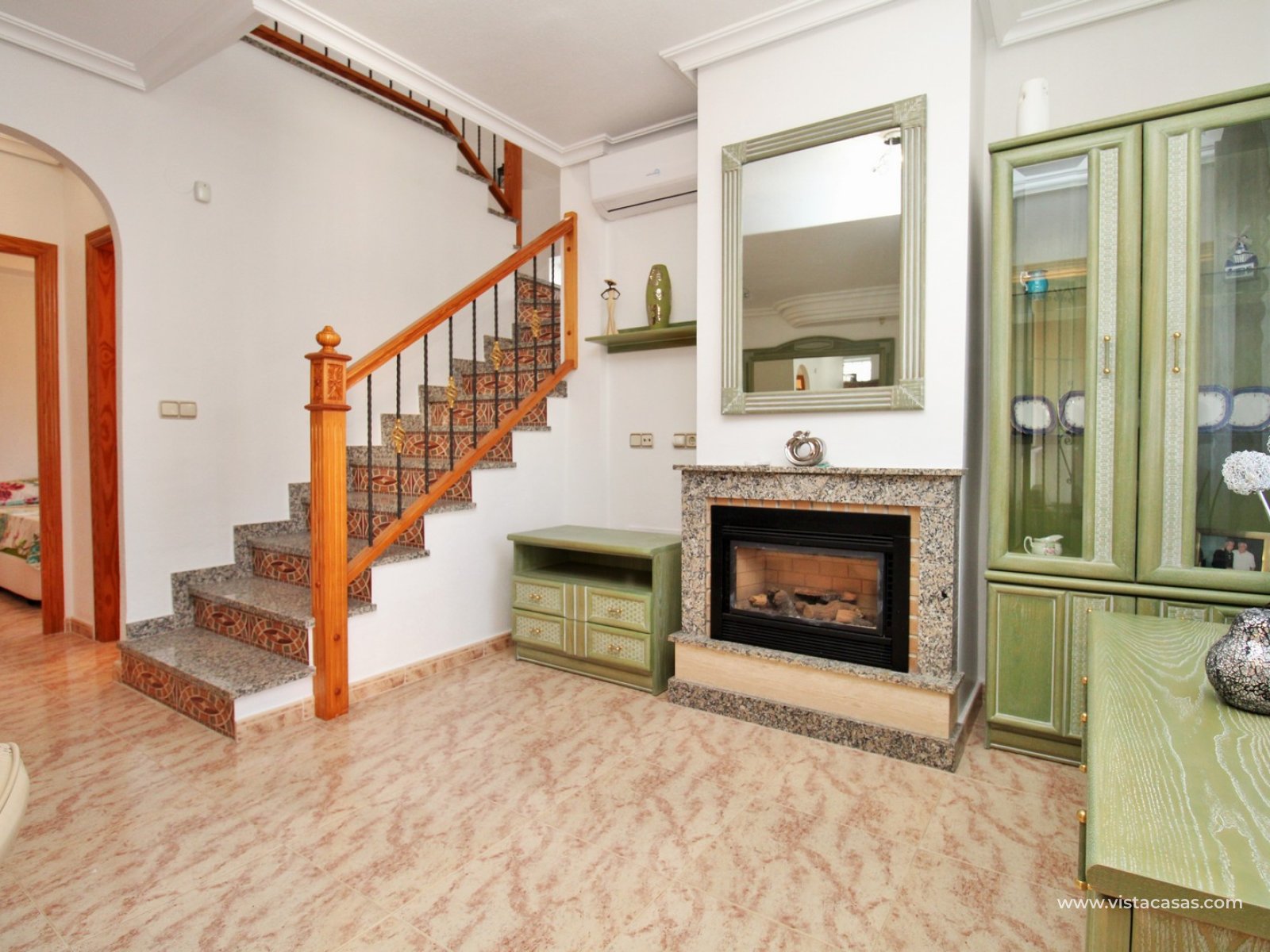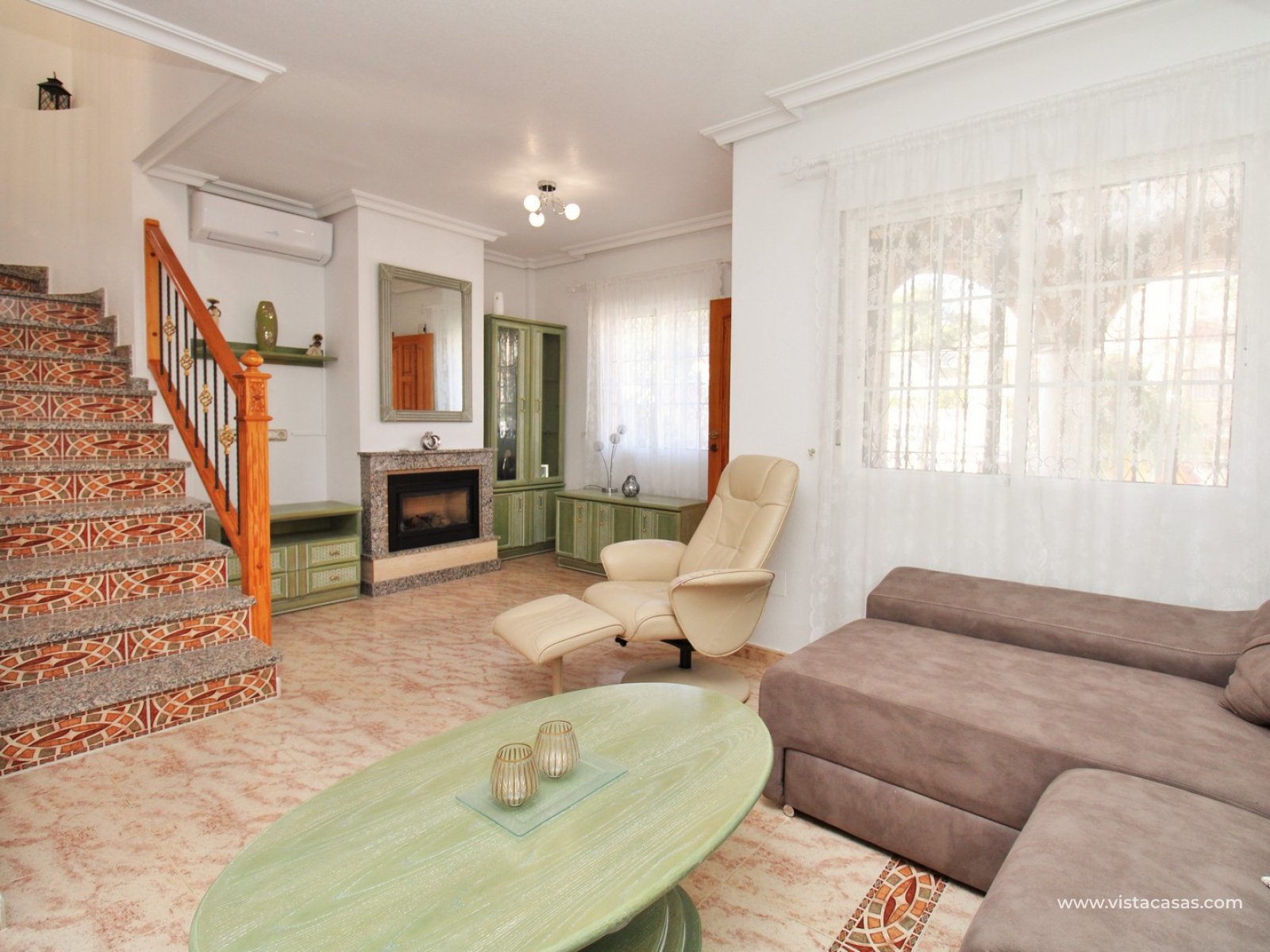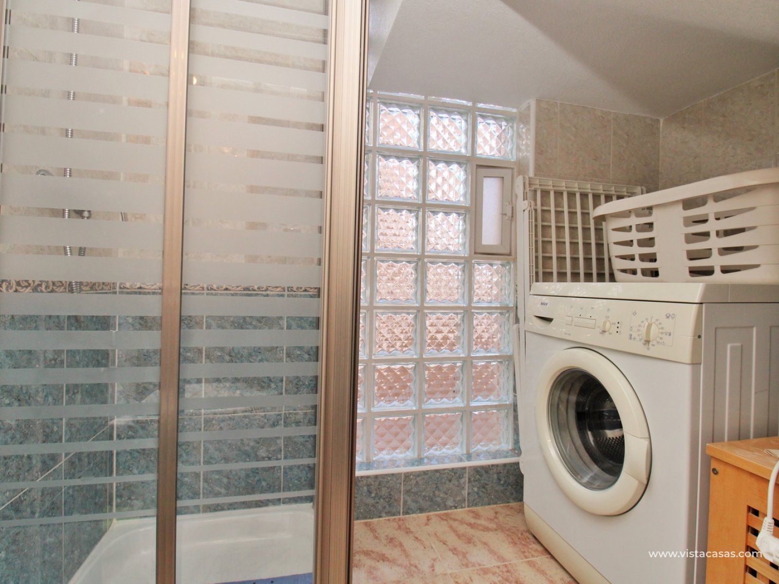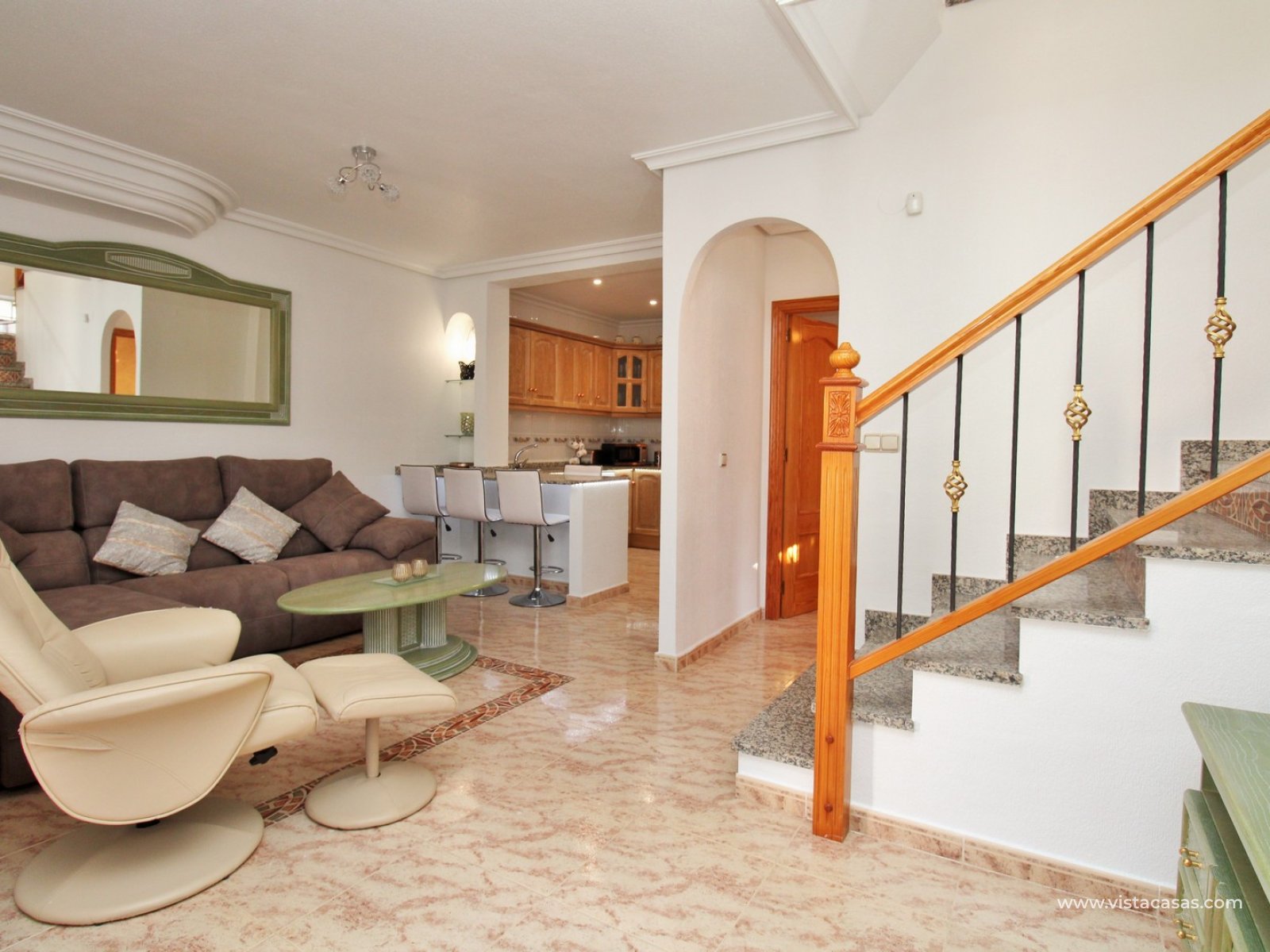 Trädgården är delvis kaklad med planterade ytor och ger en bra balans mellan användbar uteplats och grönska. Bostaden ligger nära det gemensamma poolområdet och i ett populärt bostadsområde i Villamartin.