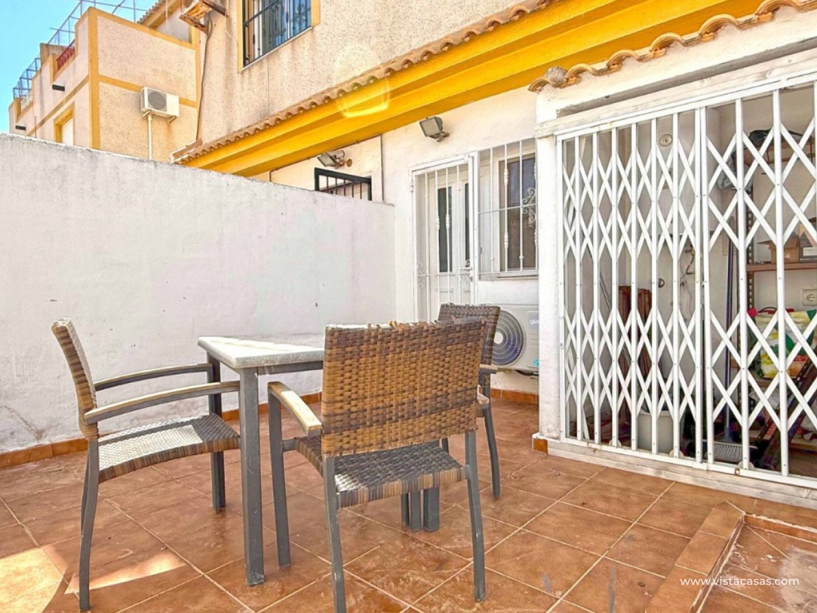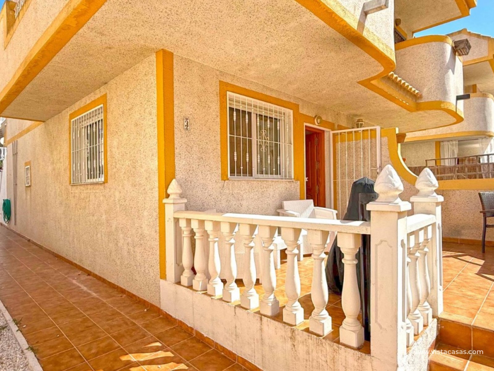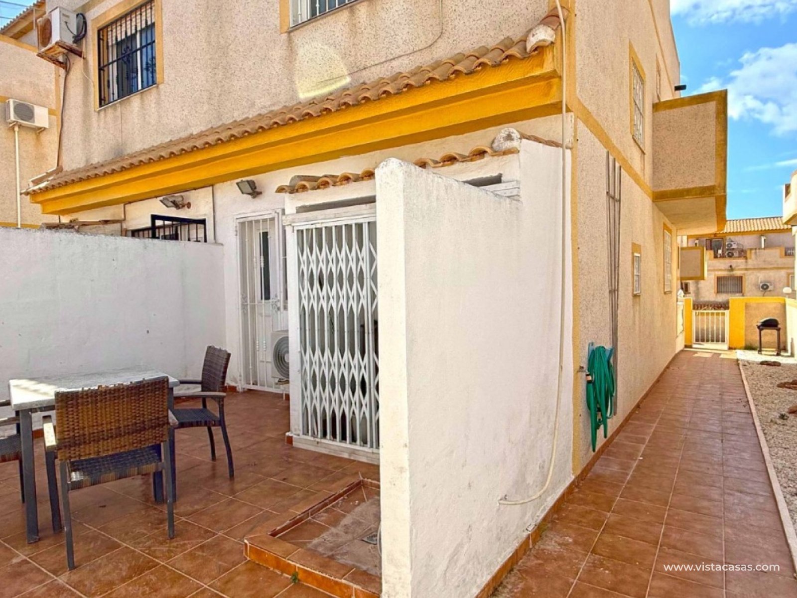 Diese ansprechende Doppelhaushälfte in der begehrten Wohngegend Los Altos, Orihuela Costa, bietet eine komfortable und großzügige Raumaufteilung – ideal für Dauerwohnen und Urlaubsgenuss. Das Anwesen verfügt über drei Schlafzimmer, zwei Badezimmer und ein zusätzliches Gäste-WC und bietet somit ausreichend Platz für Familien oder Gäste. Die separate, voll ausgestattete Küche lädt zum Kochen und Genießen ein. Genießen Sie das mediterrane Klima auf der großzügigen, umlaufenden Terrasse im Erdgeschoss, dem privaten Balkon und der Dachterrasse mit herrlichem Ausblick – ideal zum Entspannen, Sonnenbaden oder Genießen der abendlichen Sonnenuntergänge. Zu diesem Haus gehören außerdem eine private Tiefgarage und ein eigener Abstellraum für zusätzlichen Komfort und Sicherheit. Diese Villa wird komplett möbliert verkauft, ist bezugsfertig und Teil einer gepflegten Anlage mit Zugang zu einem Gemeinschaftspool. In der Nähe von Geschäften, Restaurants und nur eine kurze Autofahrt von den Stränden von Orihuela Costa entfernt, bietet sich hier eine großartige Gelegenheit, eine wunderschöne Villa in ruhiger und dennoch verkehrsgünstiger Lage zu erwerben.
