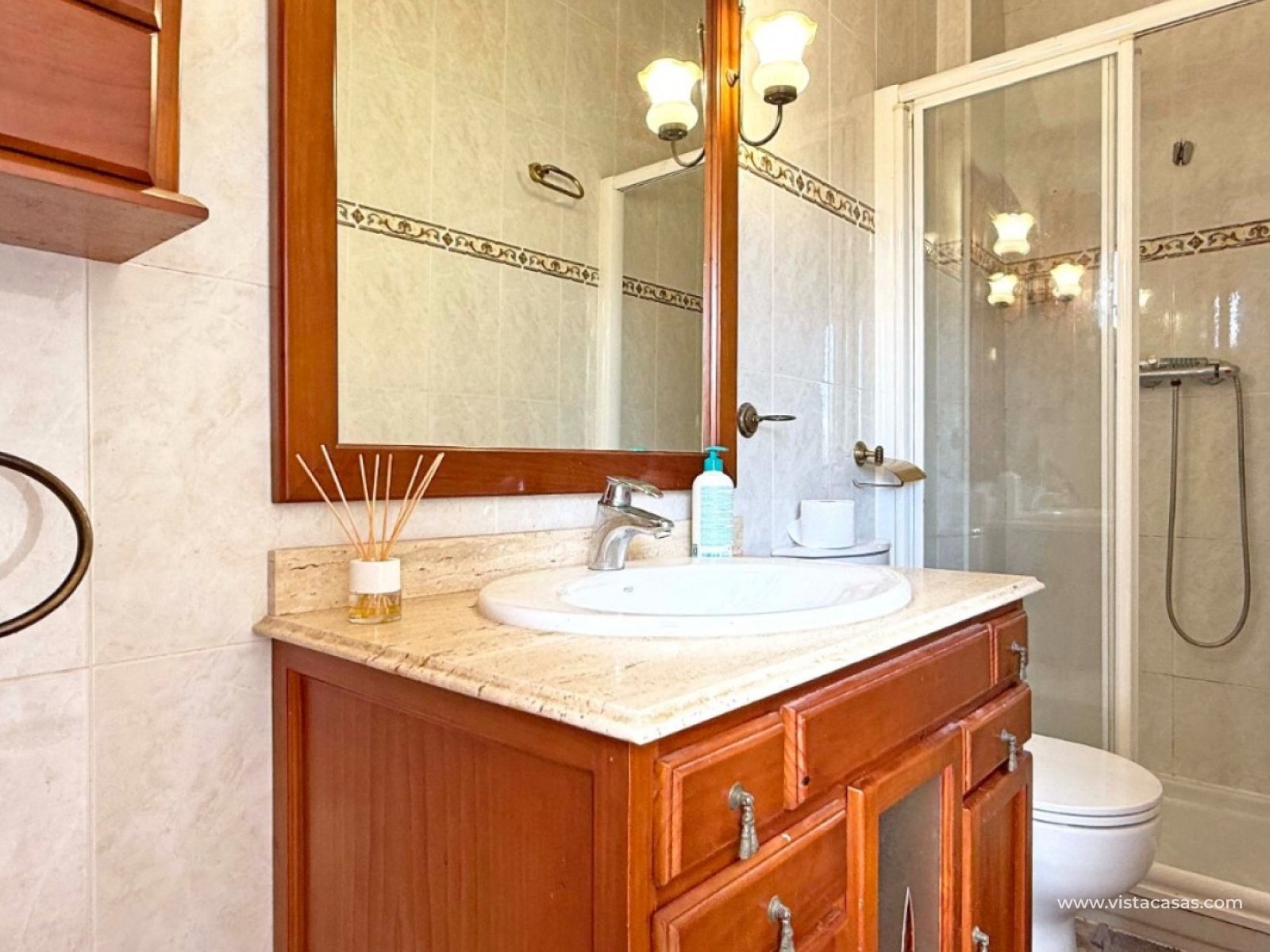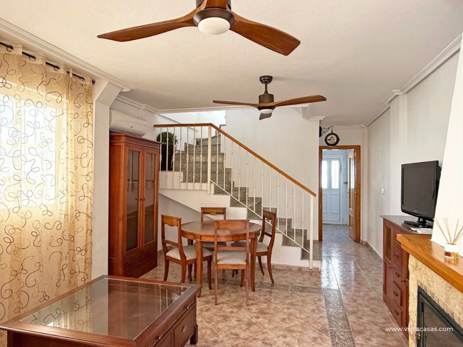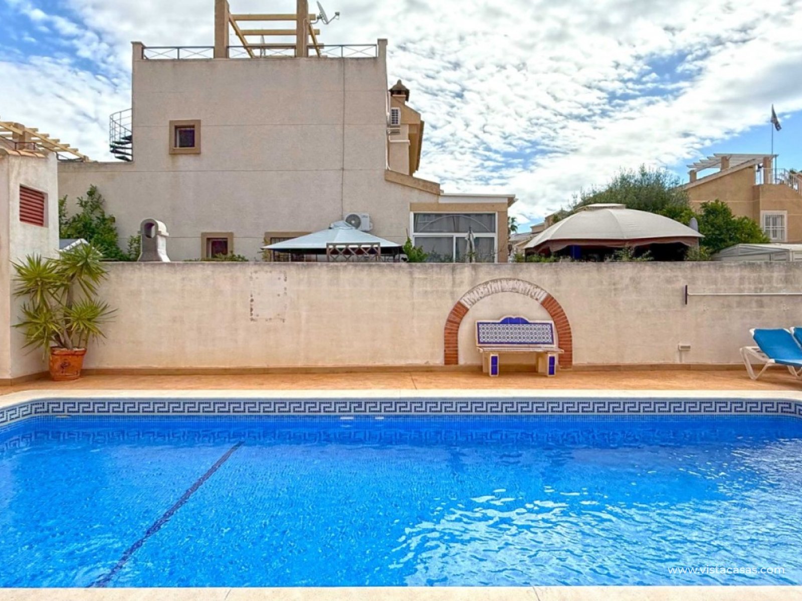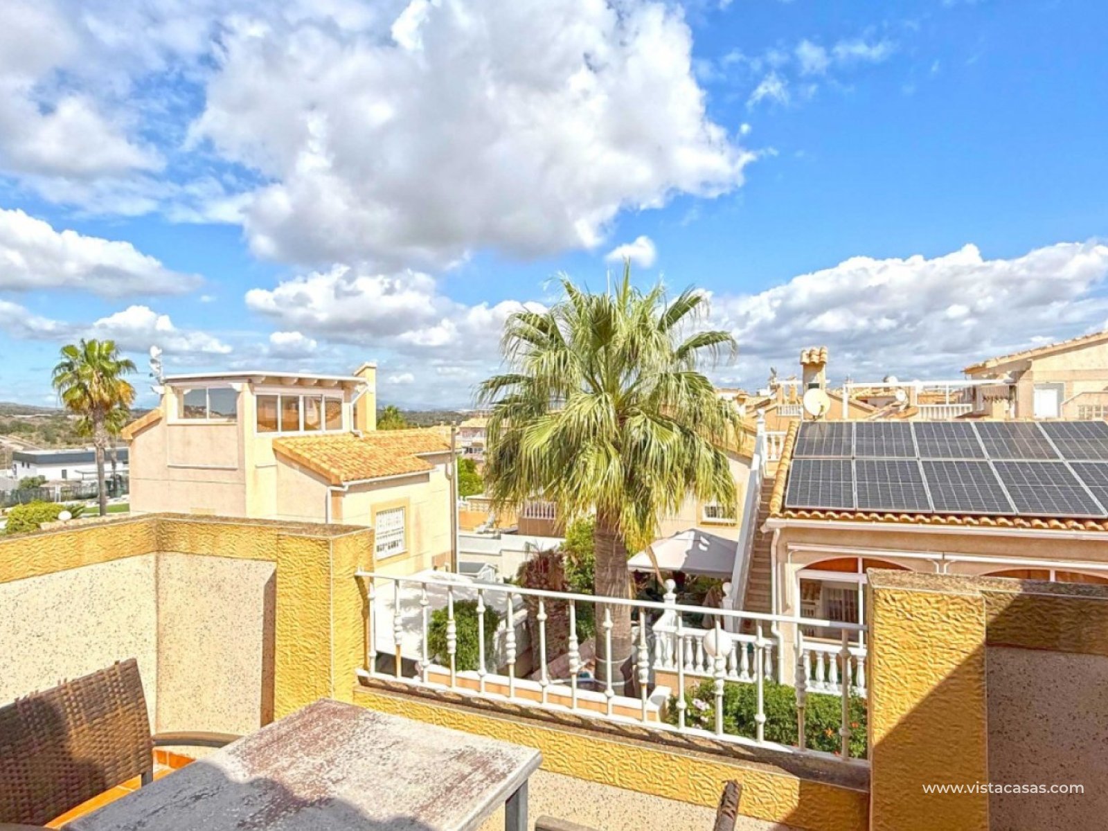 Diese ansprechende Doppelhaushälfte in der begehrten Wohngegend Los Altos, Orihuela Costa, bietet eine komfortable und großzügige Raumaufteilung – ideal für Dauerwohnen und Urlaubsgenuss. Das Anwesen verfügt über drei Schlafzimmer, zwei Badezimmer und ein zusätzliches Gäste-WC und bietet somit ausreichend Platz für Familien oder Gäste. Die separate, voll ausgestattete Küche lädt zum Kochen und Genießen ein. Genießen Sie das mediterrane Klima auf der großzügigen, umlaufenden Terrasse im Erdgeschoss, dem privaten Balkon und der Dachterrasse mit herrlichem Ausblick – ideal zum Entspannen, Sonnenbaden oder Genießen der abendlichen Sonnenuntergänge. Zu diesem Haus gehören außerdem eine private Tiefgarage und ein eigener Abstellraum für zusätzlichen Komfort und Sicherheit. Diese Villa wird komplett möbliert verkauft, ist bezugsfertig und Teil einer gepflegten Anlage mit Zugang zu einem Gemeinschaftspool. In der Nähe von Geschäften, Restaurants und nur eine kurze Autofahrt von den Stränden von Orihuela Costa entfernt, bietet sich hier eine großartige Gelegenheit, eine wunderschöne Villa in ruhiger und dennoch verkehrsgünstiger Lage zu erwerben.