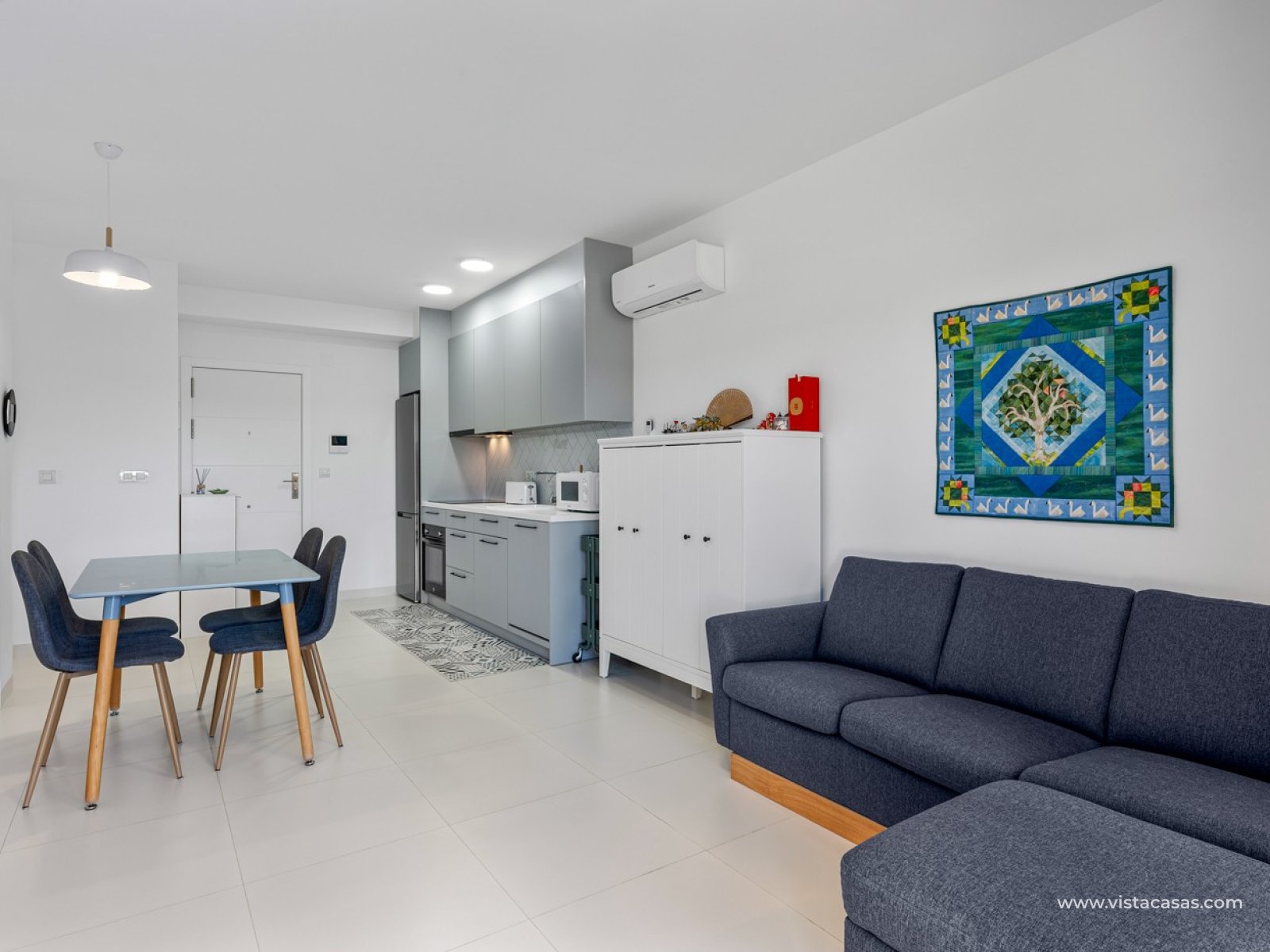 In einer der begehrtesten Wohnlagen von San Miguel de Salinas befindet sich diese attraktive Eckwohnung, ideal für alle, die Ruhe, Licht und Komfort schätzen und dennoch die Nähe zur Küste und zu allen Einrichtungen genießen möchten. Die Wohnung verfügt über zwei Schlafzimmer und zwei Badezimmer sowie über eine offene, funktionale Raumaufteilung, die ein großzügiges Wohngefühl schafft. Dank der südwestlichen Ausrichtung profitiert die Immobilie von viel Tageslicht sowie angenehmer Nachmittags- und Abendsonne. Vom Wohnbereich aus gelangt man auf den Balkon, einen schönen Ort zum Entspannen und Genießen der offenen Umgebung. Die Wohnung wird vollständig möbliert verkauft und ist sofort bezugsfertig. Zudem stehen ein privater Tiefgaragenstellplatz und ein geräumiger Abstellraum zur Verfügung, ideal für zusätzlichen Stauraum, Fahrräder oder Strandausrüstung. Innerhalb der Anlage gibt es einen großen Gemeinschaftspool, der an warmen Tagen für Erfrischung sorgt. Die Lage ist ein besonderer Pluspunkt. Der renommierte Las Colinas Golf and Country Club ist nur wenige Autominuten entfernt. Das Zentrum von San Miguel de Salinas mit seinen lokalen Geschäften, täglichen Einrichtungen und dem wöchentlichen Markt ist schnell erreichbar. Auch die Strände der Orihuela Costa, das Einkaufszentrum La Zenia Boulevard und Torrevieja liegen in kurzer Fahrdistanz. Diese Eckwohnung eignet sich hervorragend als Ferienimmobilie, Investition zur Vermietung oder als komfortabler dauerhafter Wohnsitz und überzeugt durch Ruhe, Sonne und eine gefragte Lage mit sehr gutem Preis-Leistungs-Verhältnis.