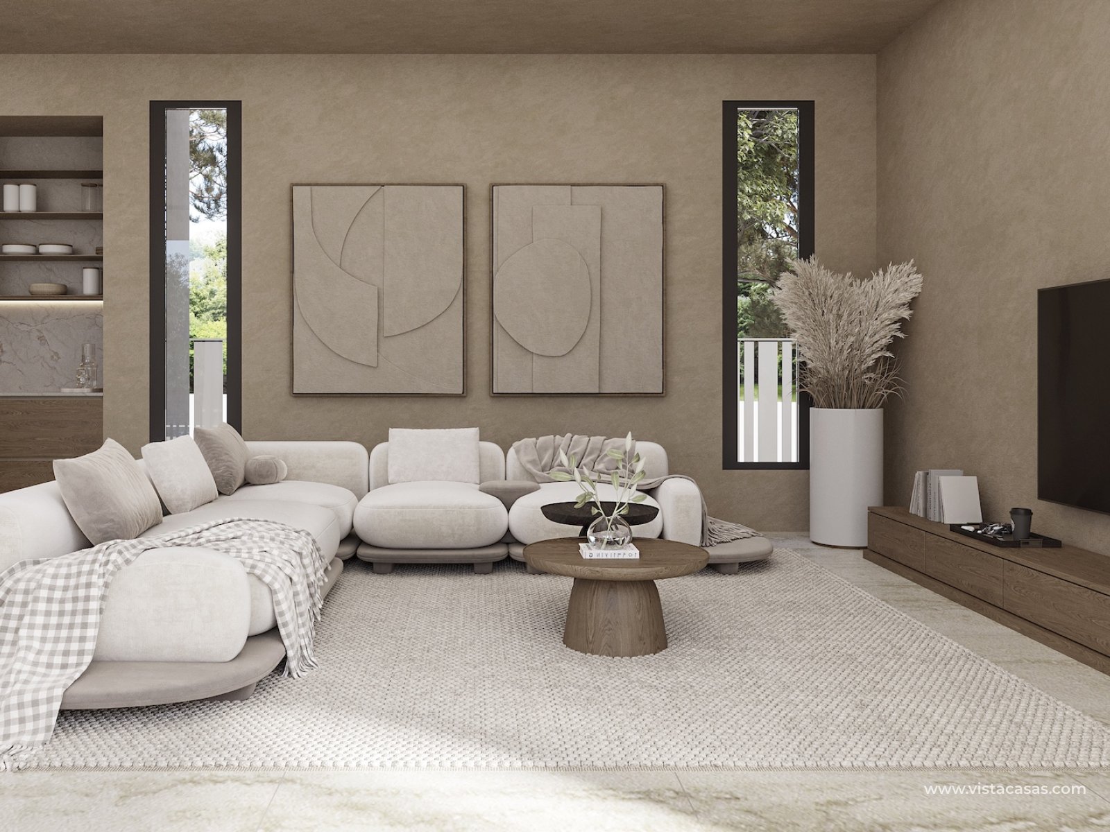 Das Innere dieser unabhängigen Wohnhäuser in Calpe ist mit einem Fokus auf Qualität und Komfort gestaltet. Die Feinsteinzeugböden verleihen einen Hauch von Eleganz und sind pflegeleicht. Die Klimatisierung ist dank der Klimaanlage gewährleistet, die das ganze Jahr über eine angenehme Temperatur sicherstellt. Elektrische Rollläden und die Video-Gegensprechanlage bieten zusätzlichen Komfort und Sicherheit. Einbauschränke in den Schlafzimmern bieten effizienten Stauraum und halten die Räume ordentlich und frei von Unordnung. Die Aufteilung der Häuser, mit Optionen von 3 oder 4 Schlafzimmern und 2 bis 4 Bädern, ist darauf ausgelegt, den Bedürfnissen jeder Familie gerecht zu werden und bietet geräumige und gut beleuchtete Bereiche.