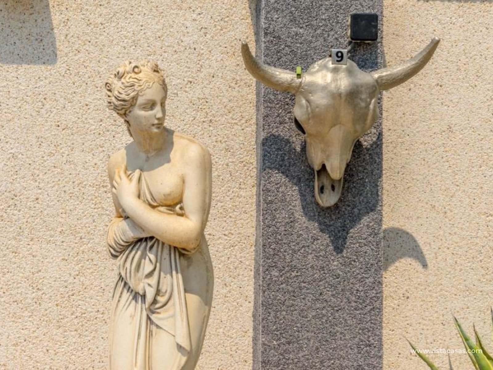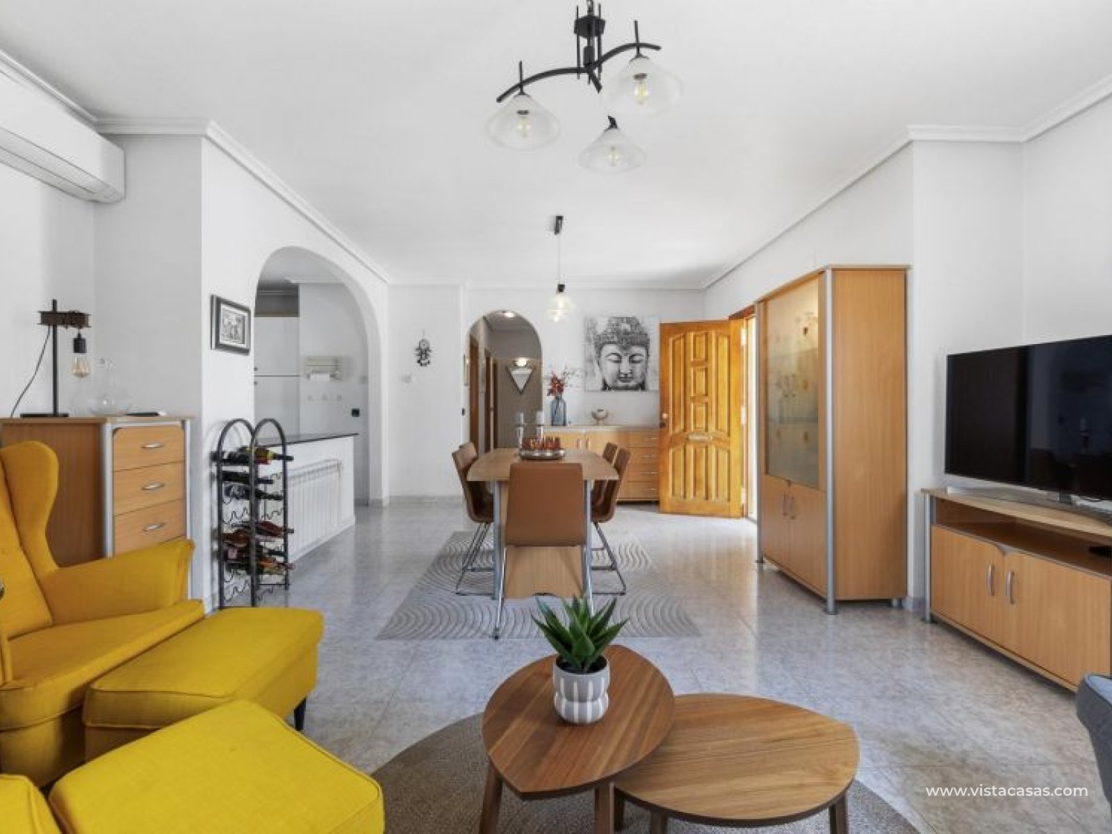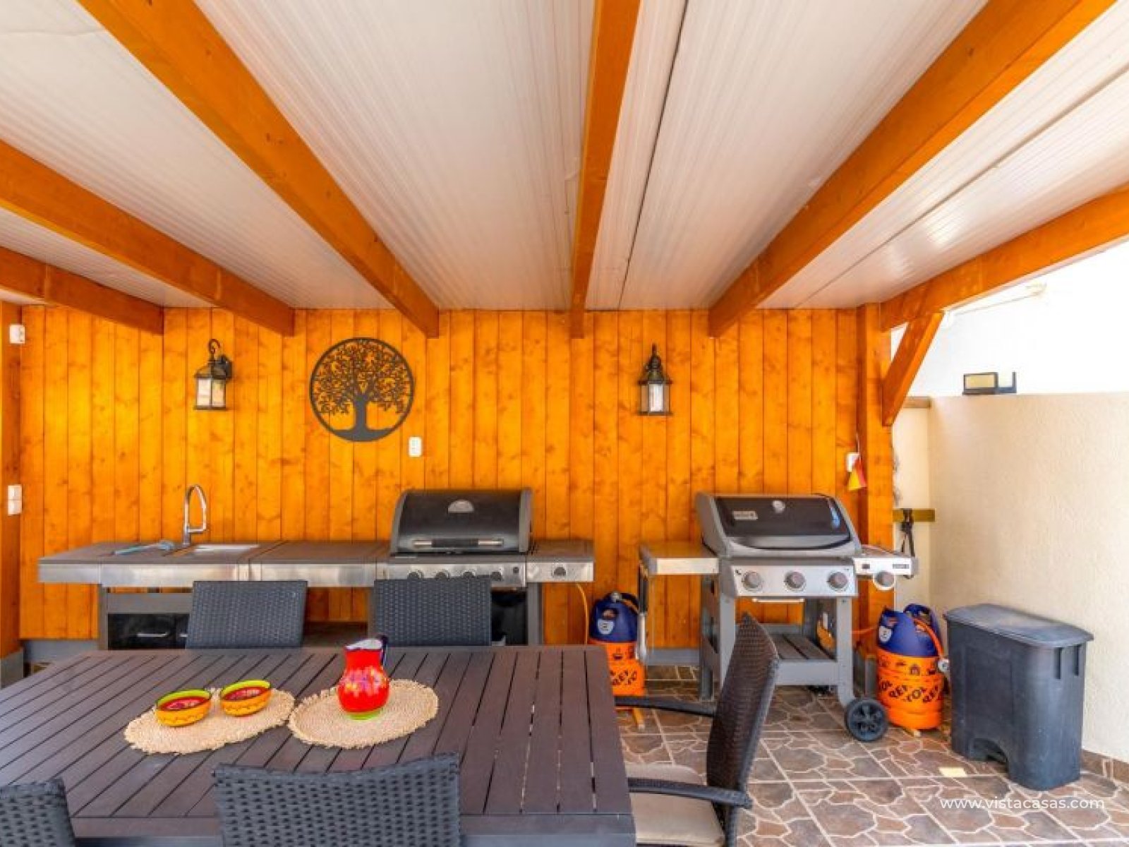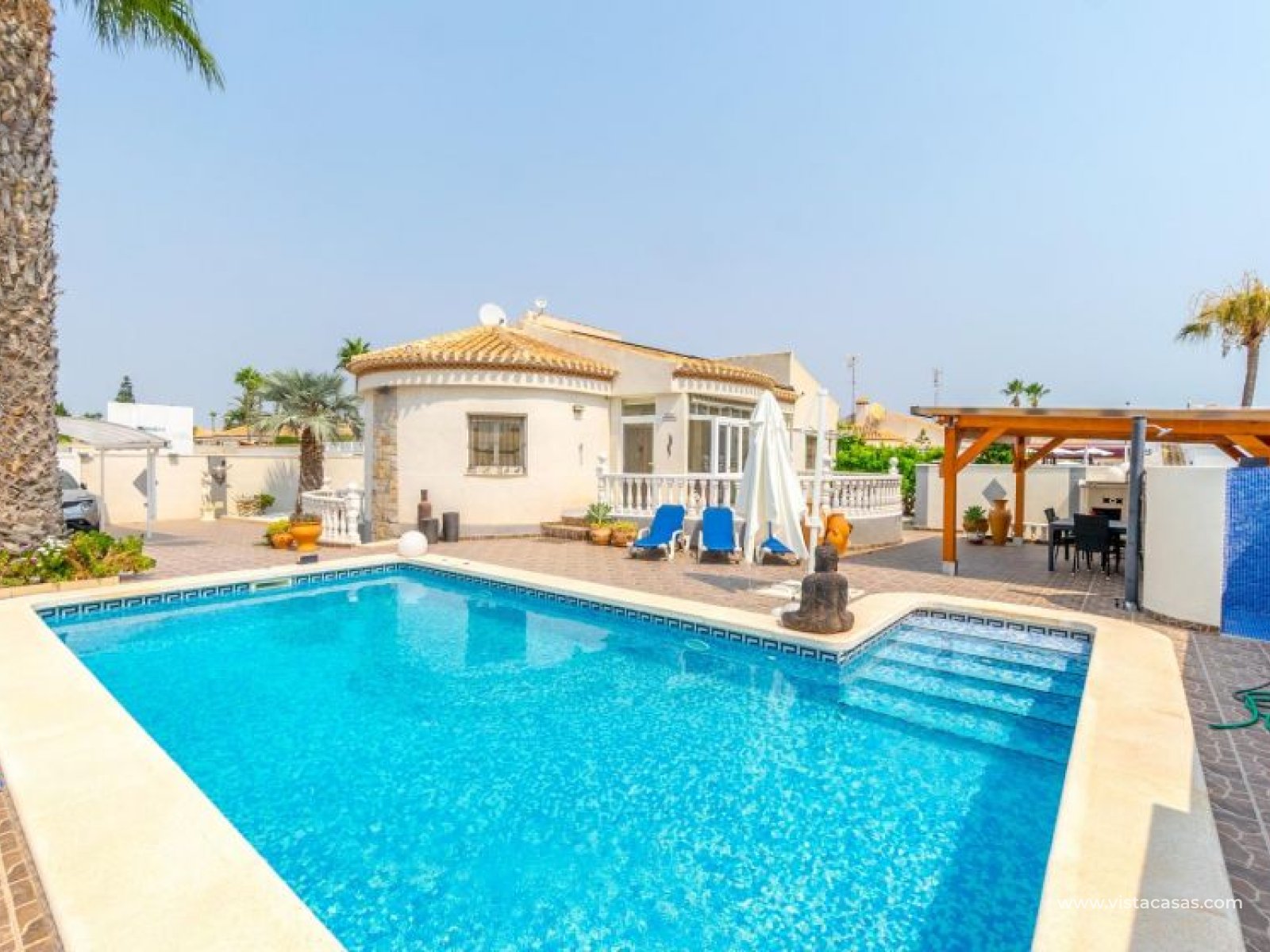 Espectacular chalet independiente en Playa Flamenca Descubre esta maravillosa vivienda ubicada en una de las zonas más vibrantes y deseadas de la Costa Mediterránea: Playa Flamenca. Una ubicación privilegiada con un clima envidiable durante todo el año, ideal para disfrutar del sol, la playa y la vida al aire libre. A tan solo unos pasos se encuentra el famoso Centro Comercial Zenia Boulevard, un espacio moderno y emblemático que ofrece más de 150 tiendas de moda, ocio, restauración y entretenimiento para toda la familia. Además, podrás disfrutar del tradicional mercado de los sábados, restaurantes de todo tipo y todos los servicios necesarios para tu día a día sin tener que coger el coche. La parcela de 578 m² es un auténtico oasis privado con zonas ajardinadas y arboles frutales (mandarino, limonero y naranjo): Piscina propia de agua salada, perfecta para refrescarte o nadar en cualquier época del año. Jardín embaldosado, fácil de mantener y diseñado para aprovechar cada rincón. Pérgola cubierta para aparcar tu vehículo y una acogedora pérgola de madera con cocina de verano y comedor, ideal para veladas en familia o con amigos junto a la piscina. Al acceder a la vivienda, nos recibe una terraza acristalada perfecta para tus desayunos o cafés al sol, además de otra terraza abierta que invita a relajarse. El interior, impecable y completamente amueblado, está pensado para la comodidad de toda la familia ya que todo se distribuye en una sola planta: Luminoso salón comedor con acceso directo a la cocina. Cocina americana totalmente equipada. 3 amplios dormitorios y 2 baños modernos. La vivienda dispone además de un semisótano que originalmente fue garaje, hoy transformado en una cuarta habitación con un aseo y entrada independiente y un práctico cuarto de lavandería. Todas las estancias cuentan con aire acondicionado y suelo radiante, garantizando confort en cualquier estación del año. Como extra, en el exterior encontrarás un trastero/cuarto de máquinas para la piscina, que aporta aún más funcionalidad. Una propiedad lista para entrar a vivir, que combina el estilo mediterráneo con todas las comodidades modernas. ¡Cumple tu sueño de tener tu casa en Playa Flamenca, en pleno corazón de la Costa Blanca! No pierdas la oportunidad de conocer esta vivienda única. Llámanos hoy mismo y agenda tu visita, ¡te enamorarás en cuanto la veas!