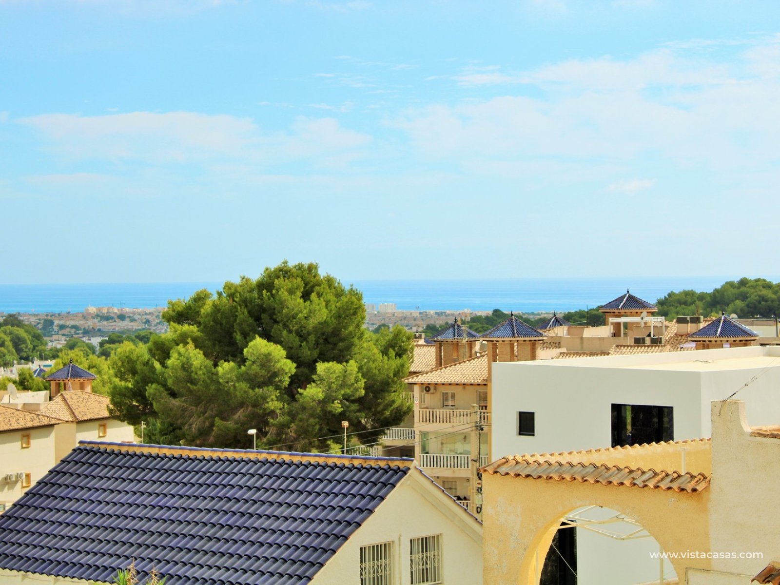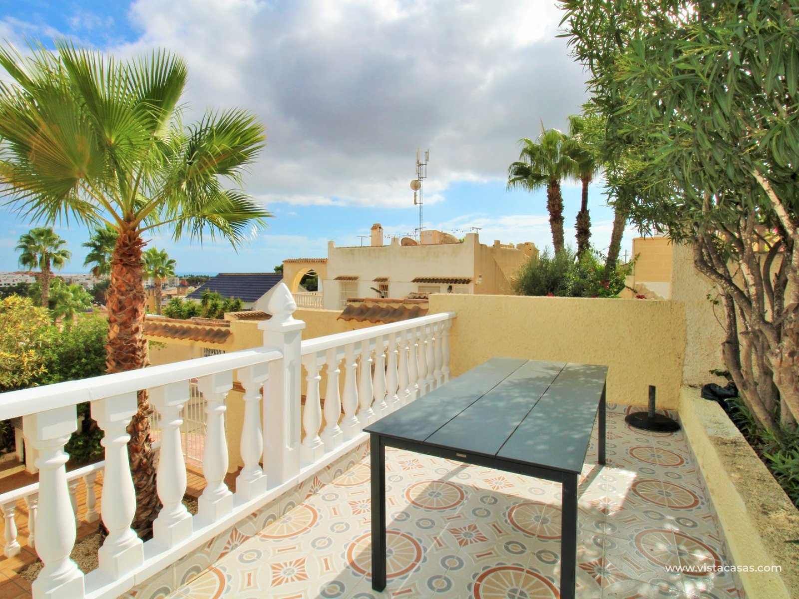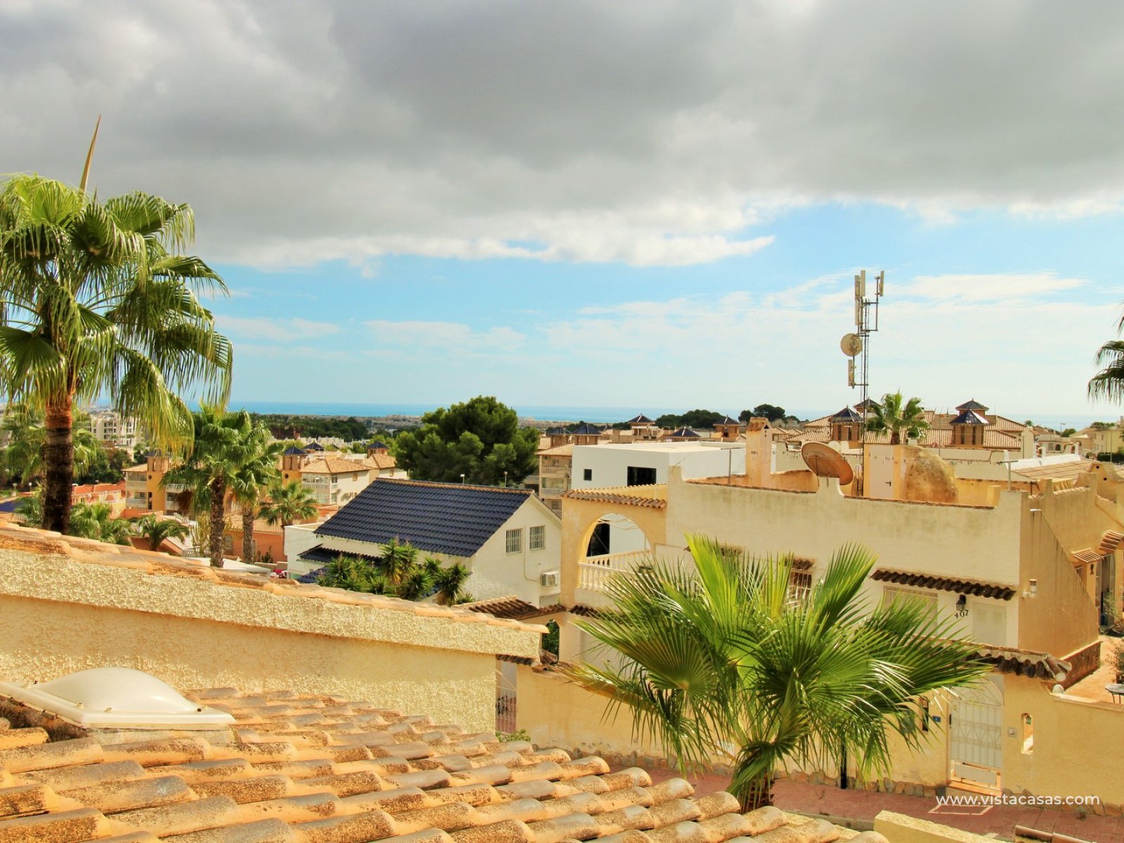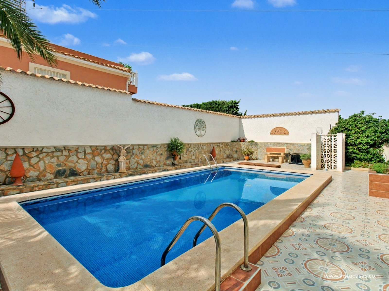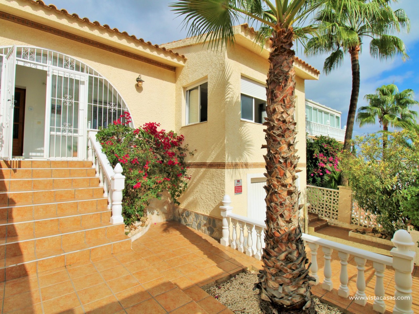 Bonita villa independiente de cuatro dormitorios con piscina privada situada en la zona de Blue Lagoon, Villamartin. Construida sobre una parcela de 430m², la vivienda ofrece la comodidad de tener la mayoría de las estancias en una sola planta. En el exterior hay una amplia piscina, varias terrazas, un garaje y un solárium con vistas abiertas al mar y al campo. A solo 500 metros de bares, restaurantes y tiendas.