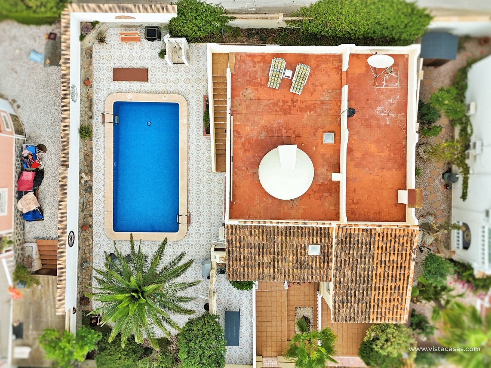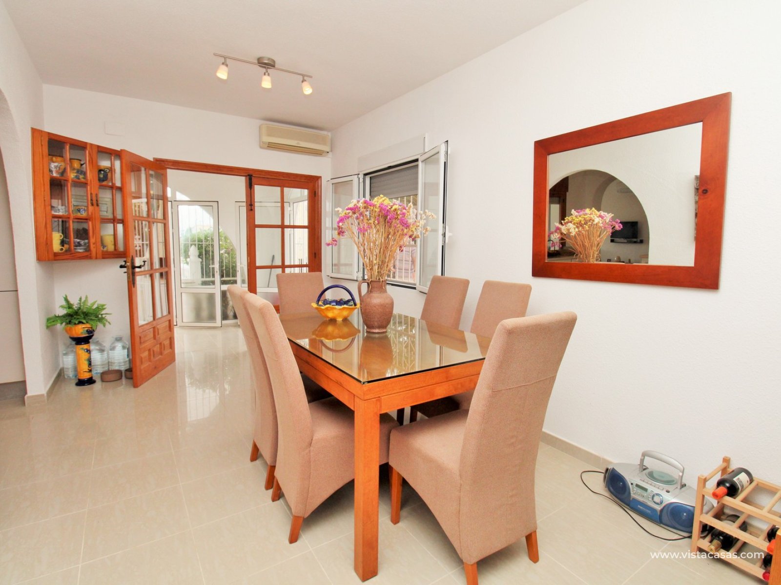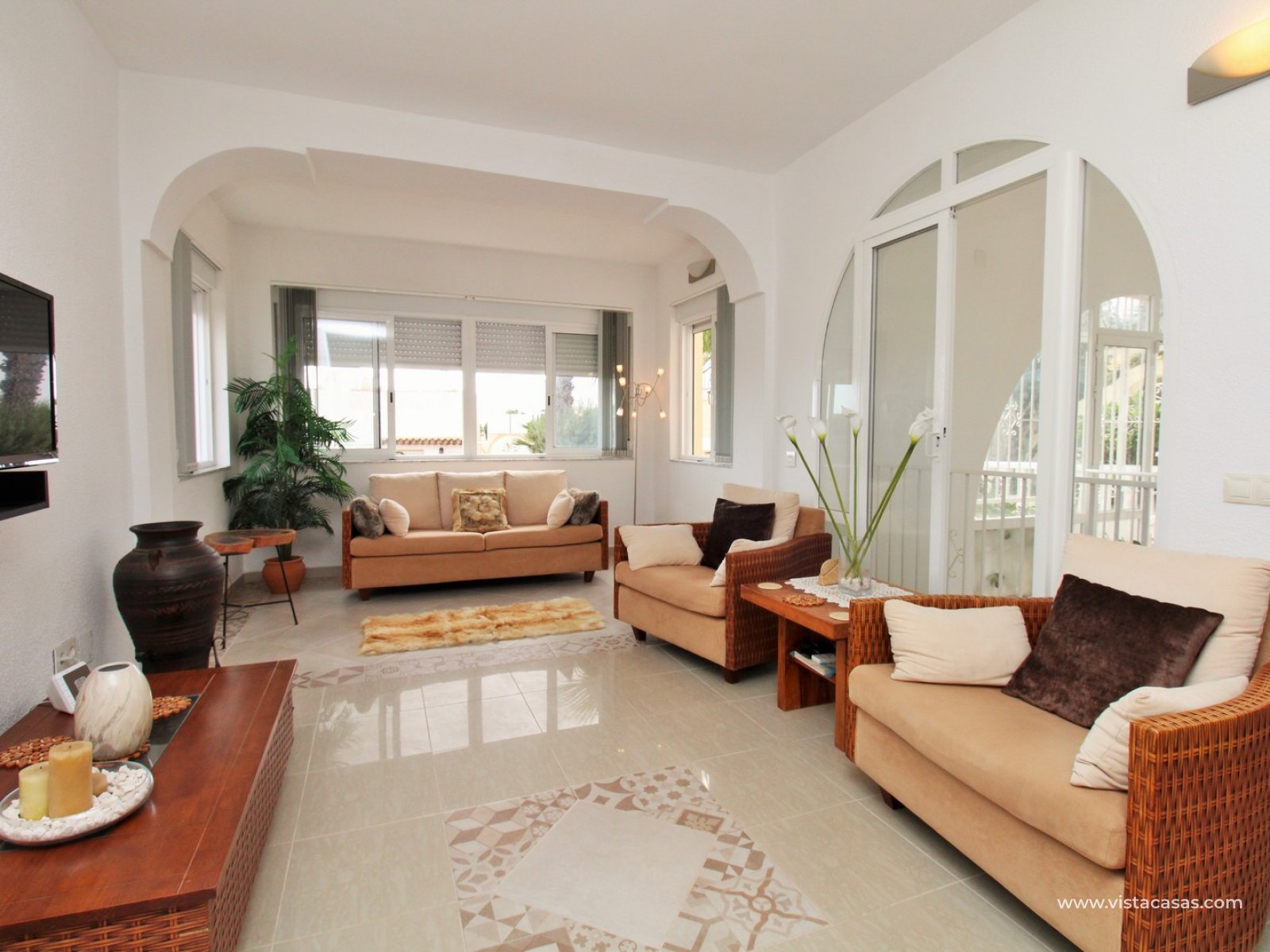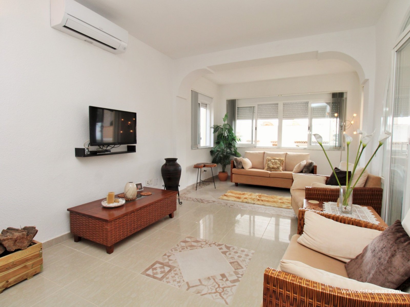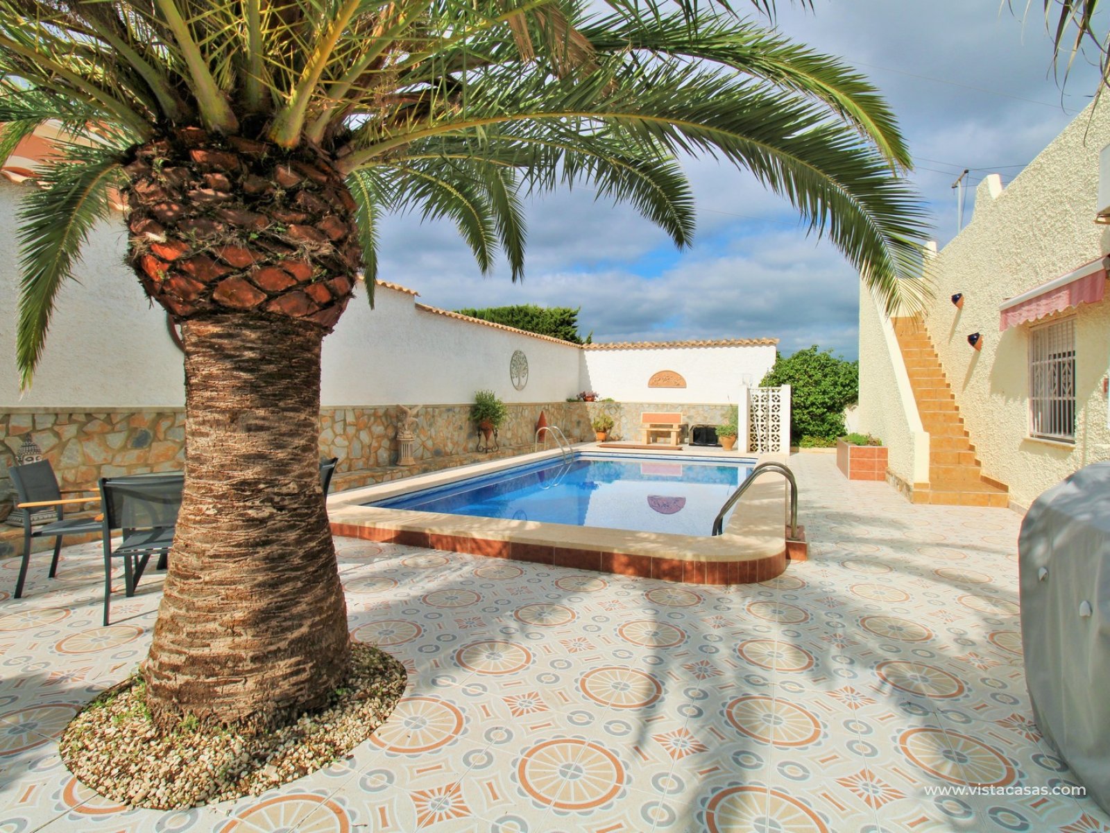 Bonita villa independiente de cuatro dormitorios con piscina privada situada en la zona de Blue Lagoon, Villamartin. Construida sobre una parcela de 430m², la vivienda ofrece la comodidad de tener la mayoría de las estancias en una sola planta. En el exterior hay una amplia piscina, varias terrazas, un garaje y un solárium con vistas abiertas al mar y al campo. A solo 500 metros de bares, restaurantes y tiendas.