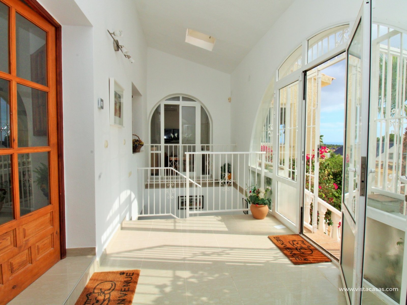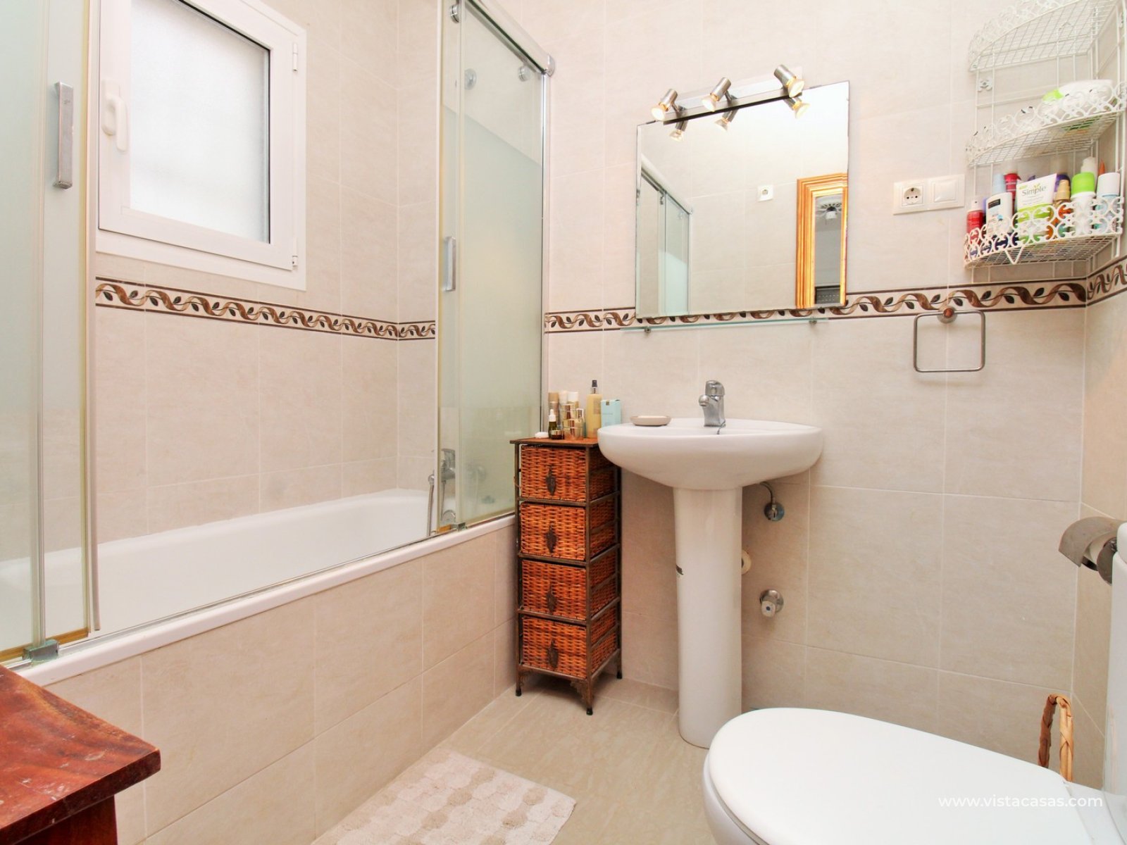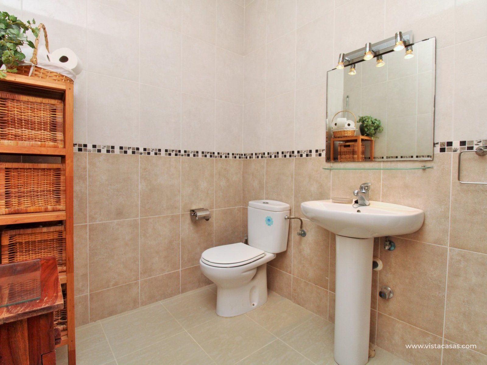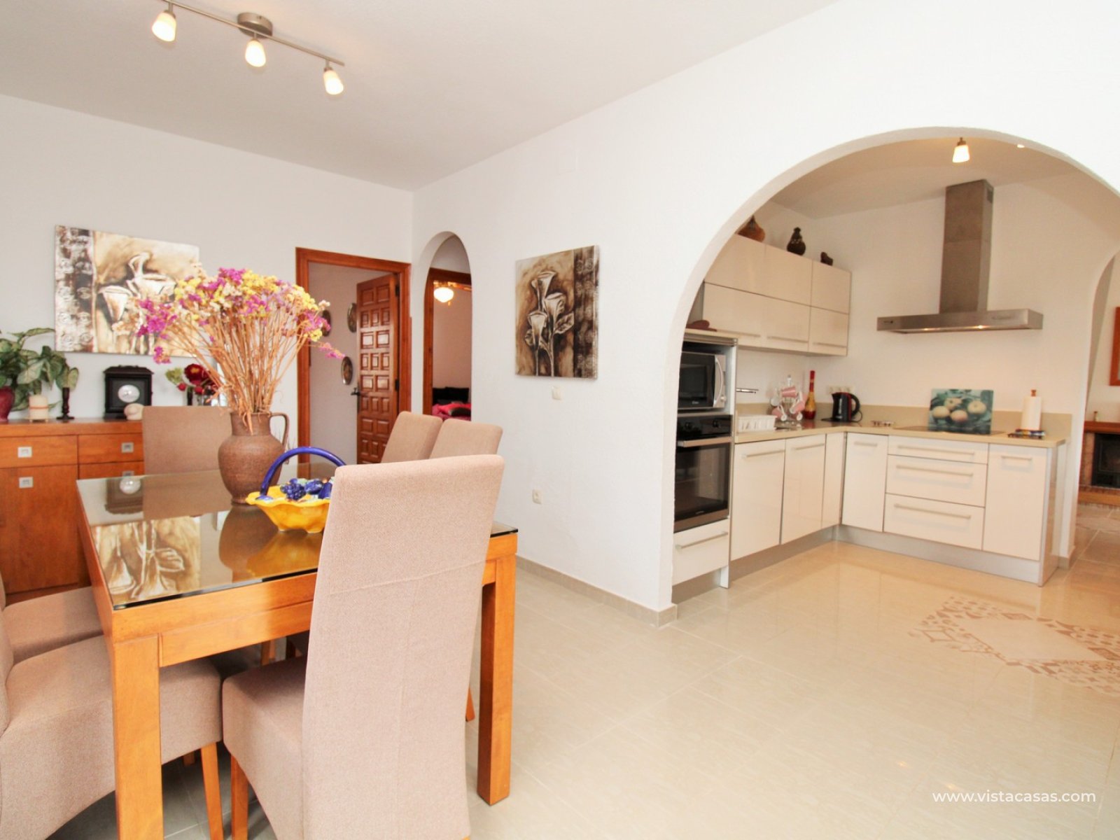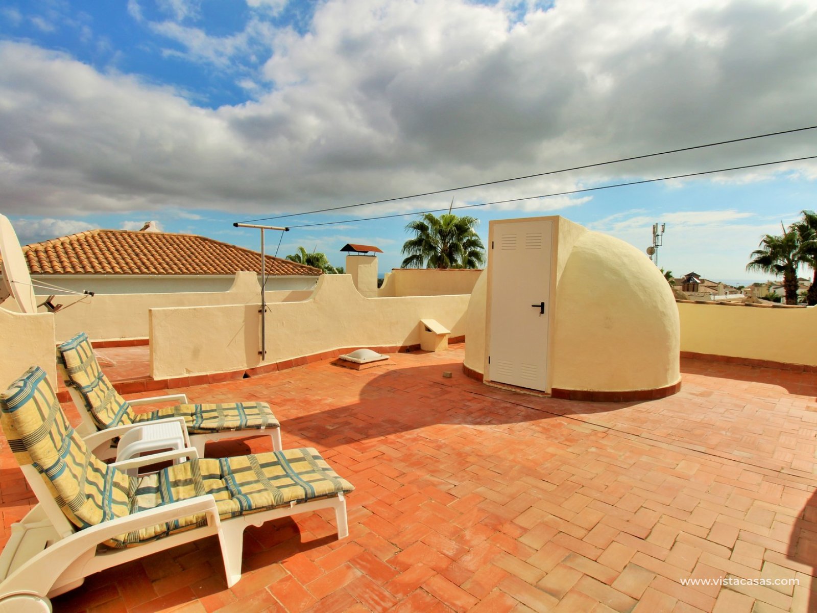 Bonita villa independiente de cuatro dormitorios con piscina privada situada en la zona de Blue Lagoon, Villamartin. Construida sobre una parcela de 430m², la vivienda ofrece la comodidad de tener la mayoría de las estancias en una sola planta. En el exterior hay una amplia piscina, varias terrazas, un garaje y un solárium con vistas abiertas al mar y al campo. A solo 500 metros de bares, restaurantes y tiendas.