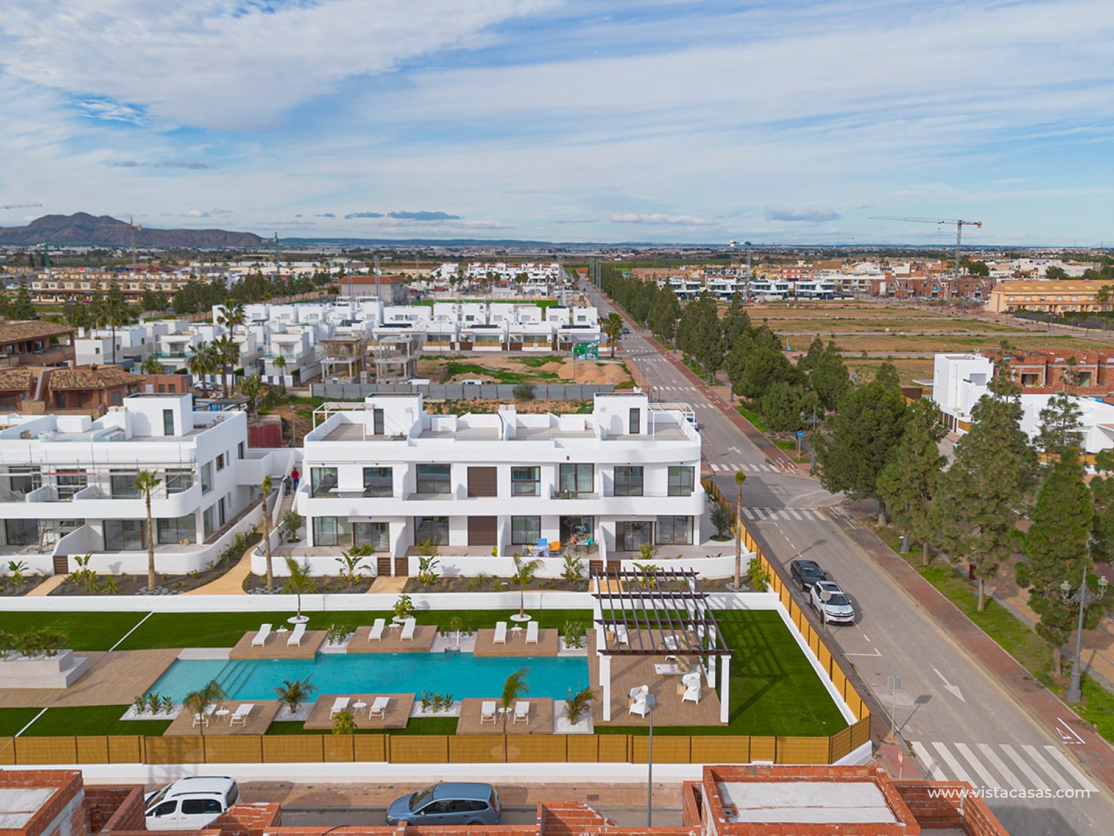 Los exteriores de este residencial están diseñados para complementar el entorno natural de Los Alcázares. Las viviendas cuentan con terrazas privadas, perfectas para disfrutar del clima mediterráneo y de las vistas al entorno. Además, algunas propiedades ofrecen la opción de un solárium, proporcionando un espacio adicional al aire libre para relajarse o socializar. Los jardines comunitarios están cuidadosamente mantenidos, ofreciendo un espacio verde donde los residentes pueden disfrutar de la tranquilidad y la belleza del paisaje. La cercanía al mar, a solo 1 km, permite disfrutar de paseos costeros y actividades acuáticas.