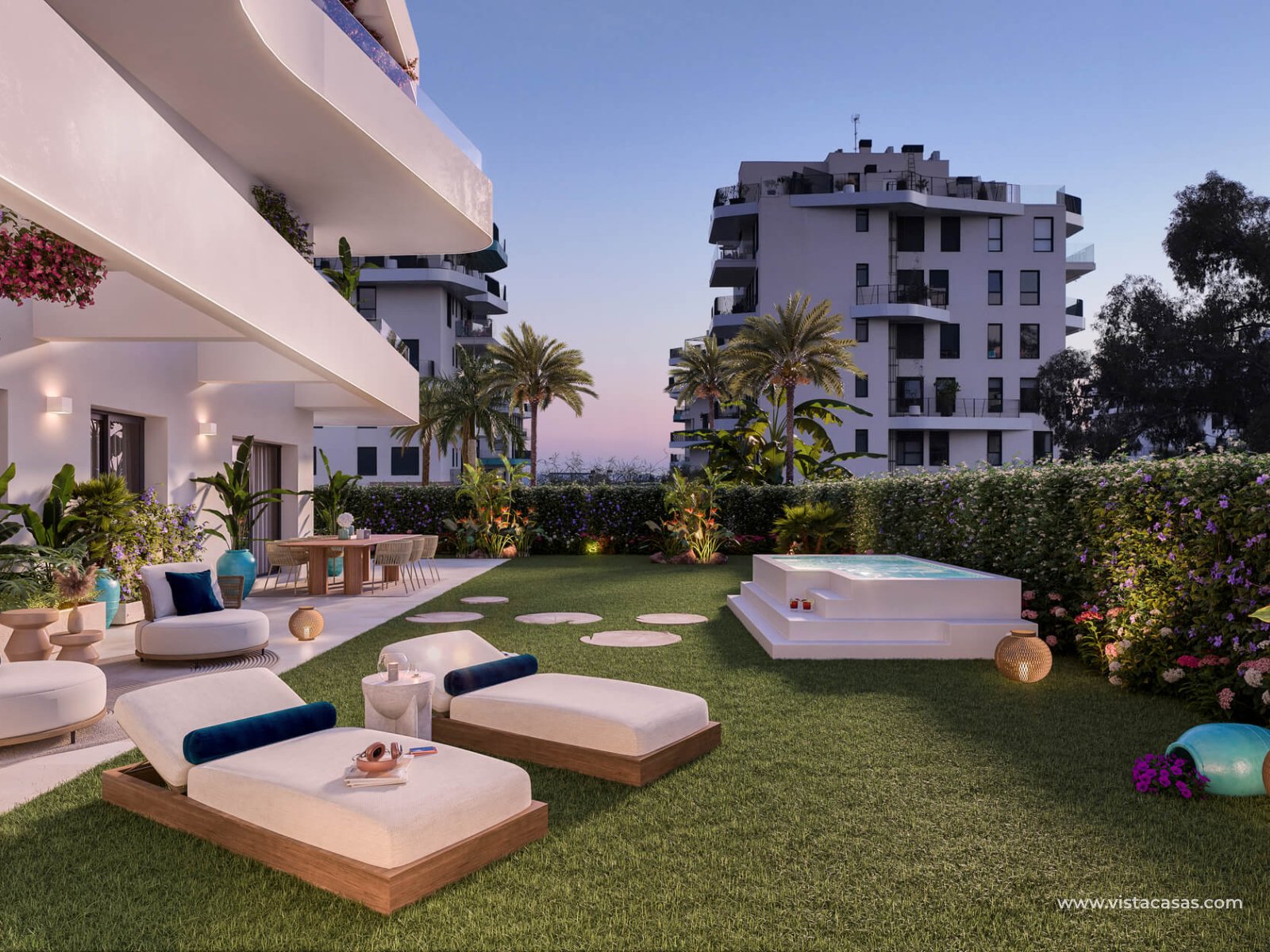 En el exterior, las propiedades cuentan con terrazas privadas ideales para relajarse al aire libre y disfrutar del clima mediterráneo. Algunas tipologías también ofrecen jardines privados, perfectos para crear tu propio oasis personal. Los solariums disponibles en ciertas unidades te permitirán aprovechar al máximo el sol durante todo el año. La cercanía al mar añade un atractivo especial, facilitando el acceso a paseos costeros y actividades acuáticas.