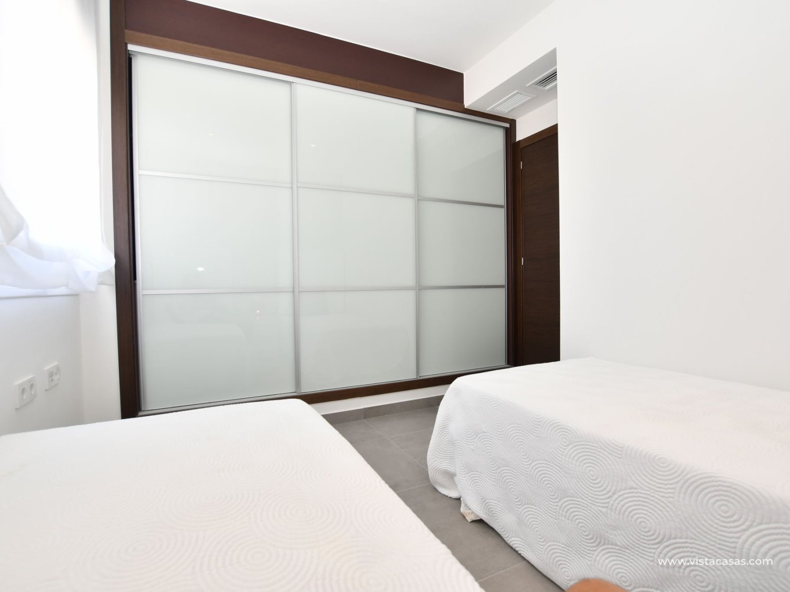 Chaque bungalow est conçu pour offrir un maximum de confort et de modernité. Les intérieurs disposent de sols en carrelage en porcelaine qui ajoutent non seulement une touche d'élégance, mais qui sont également faciles à entretenir. Les logements sont équipés de placards intégrés, offrant un espace de rangement généreux. De plus, la pré-installation de la climatisation garantit un environnement toujours agréable, tandis que le vidéophone ajoute une couche supplémentaire de sécurité et de confort. La disposition comprend deux chambres et deux salles de bains, s'adaptant parfaitement aux besoins de différents types de familles ou de couples.