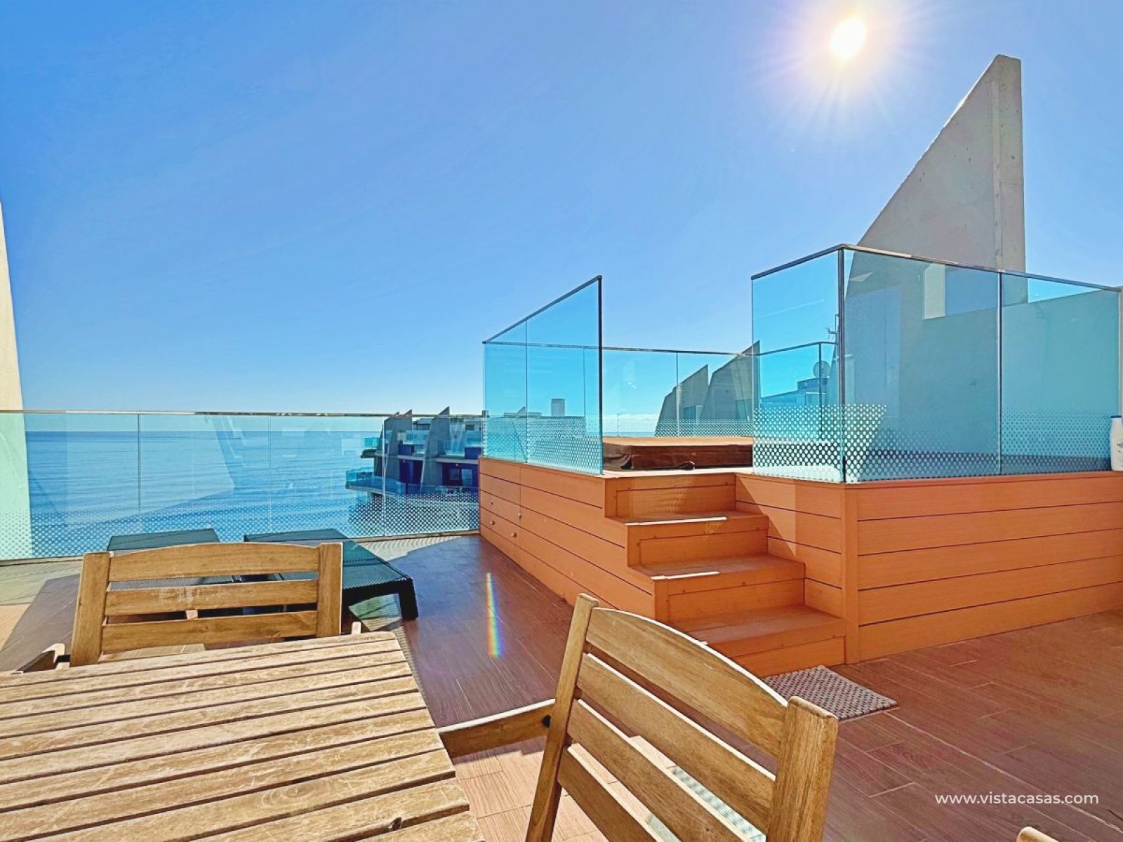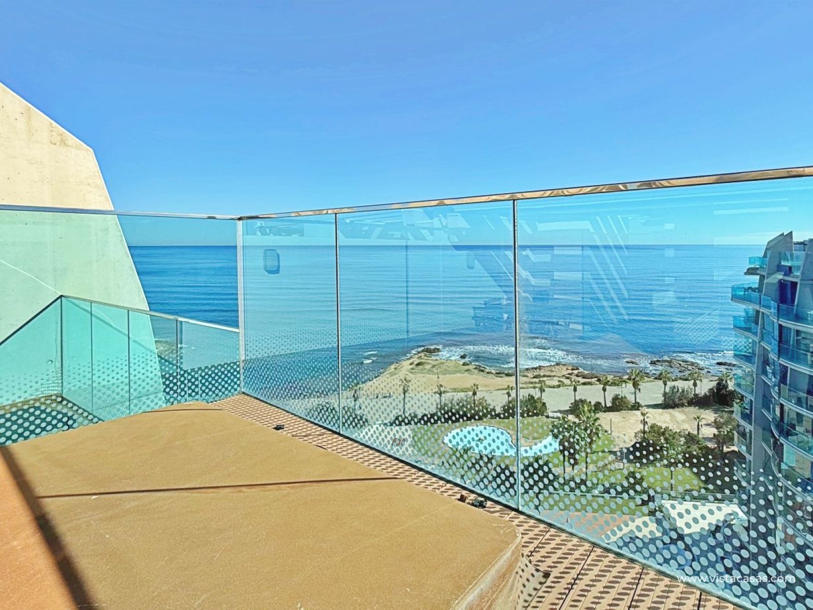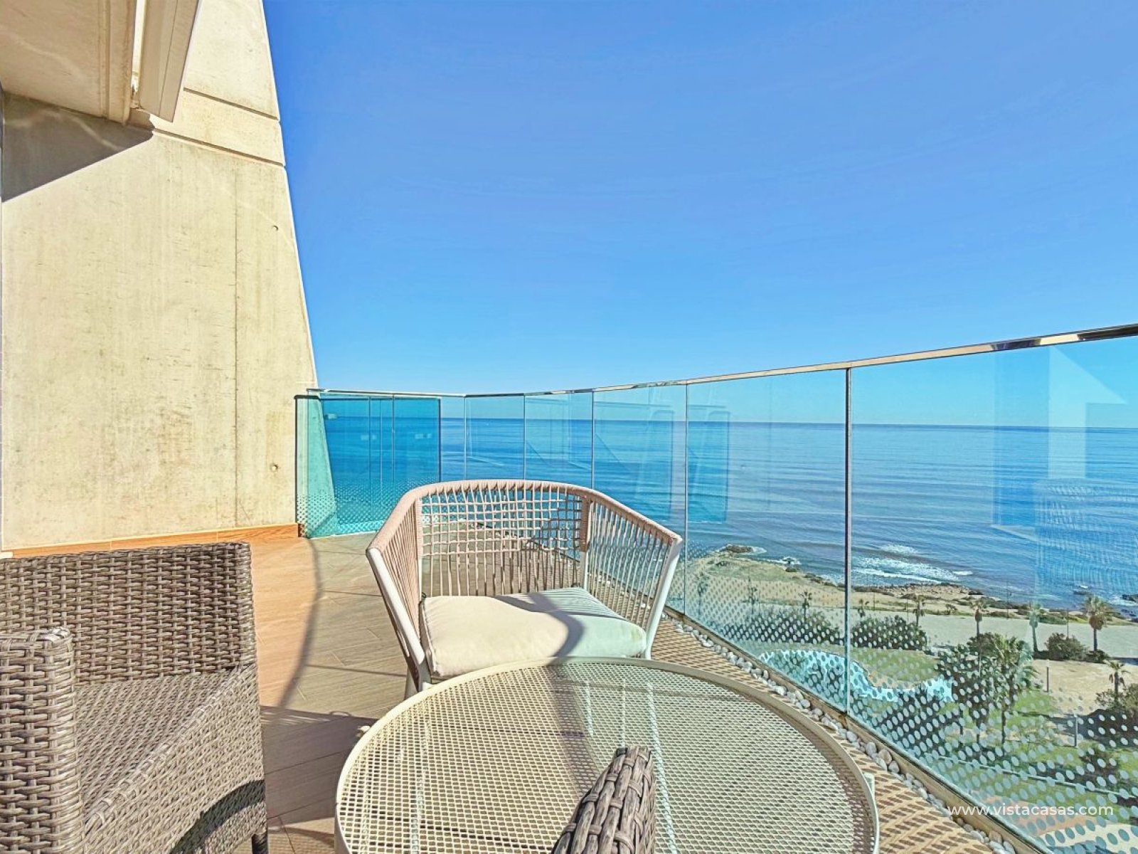 Nous vous présentons ce superbe penthouse de luxe situé dans la résidence exclusive Sea Senses, l’un des complexes les plus prisés de Punta Prima. Avec une orientation sud-est exceptionnelle et des vues panoramiques sur la Méditerranée, cette propriété offre un style de vie privilégié en bord de mer. Le logement dispose de 2 chambres et 2 salles de bains, conçues dans un style moderne et fonctionnel pour garantir un confort optimal. Depuis le salon lumineux, vous accédez à une charmante terrasse de 12 m², idéale pour profiter du lever du soleil et de la brise marine. L’atout majeur de cet attique est son spectaculaire solarium privé de 83 m², équipé d’un jacuzzi et de zones de détente — un véritable oasis privé avec des vues infinies sur la mer, parfait pour profiter du climat méditerranéen toute l’année. La propriété comprend également une place de parking souterrain et un débarras, offrant confort et espace de rangement supplémentaire. La résidence Sea Senses est l’une des plus prestigieuses de la Costa Blanca Sud, offrant des espaces communs haut de gamme : piscines à débordement face à la mer, salle de sport, spa, jacuzzis, terrains de sport et jardins paysagers. Un environnement pensé pour offrir intimité, luxe et bien-être. Situé dans le quartier renommé de Punta Prima, ce penthouse se trouve à quelques pas de la plage et à proximité de tous les services tout au long de l’année : supermarchés, restaurants, cafés, transports publics et zones de loisirs. Il est également proche du centre commercial Zenia Boulevard, de prestigieux parcours de golf et des principaux accès vers Torrevieja et Orihuela Costa. Une propriété unique où exclusivité, confort et vues sur la mer se combinent pour offrir une expérience de vie incomparable.