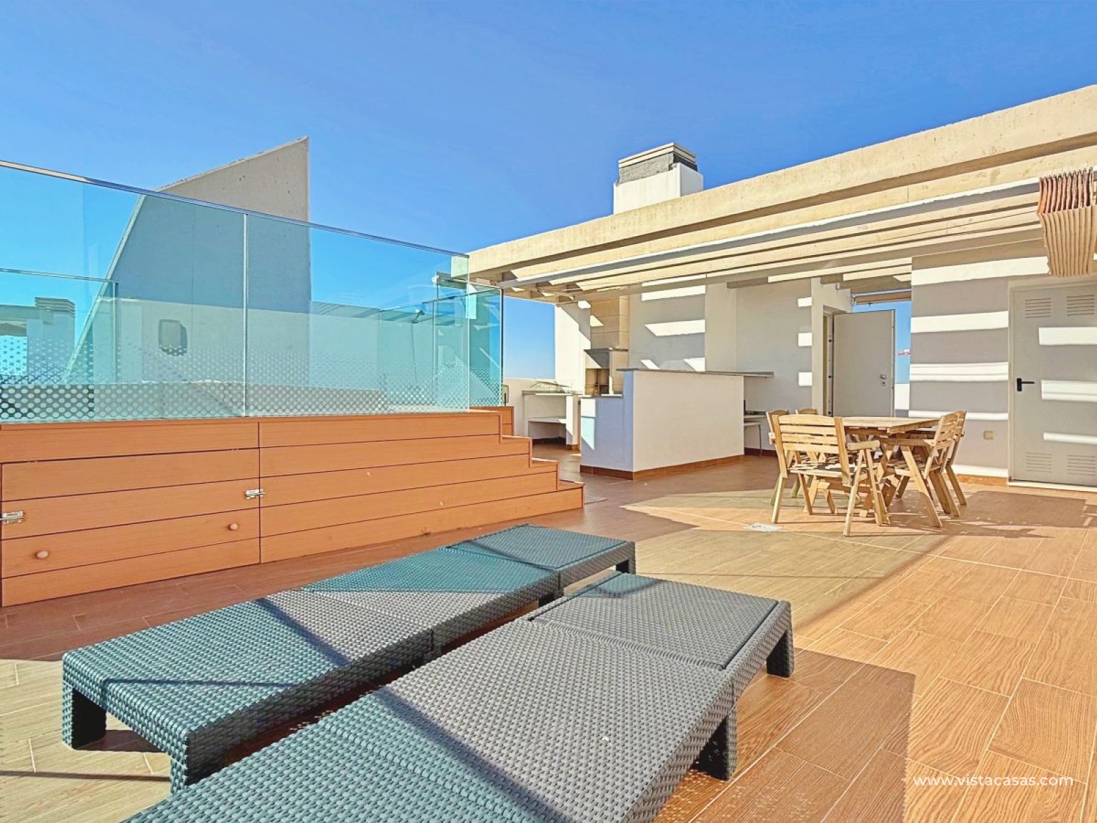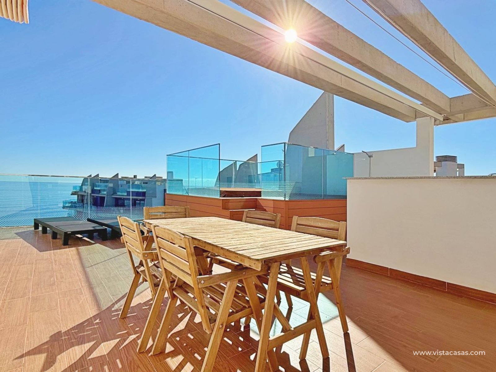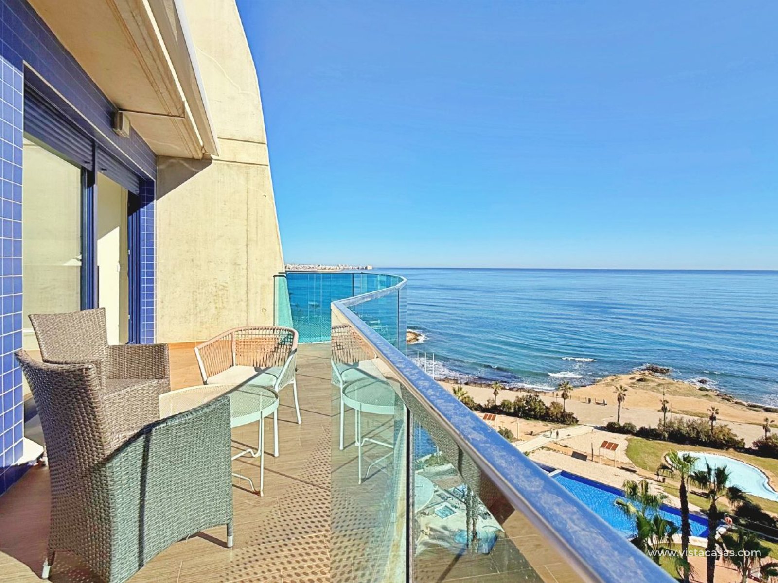 Nous vous présentons ce superbe penthouse de luxe situé dans la résidence exclusive Sea Senses, l’un des complexes les plus prisés de Punta Prima. Avec une orientation sud-est exceptionnelle et des vues panoramiques sur la Méditerranée, cette propriété offre un style de vie privilégié en bord de mer. Le logement dispose de 2 chambres et 2 salles de bains, conçues dans un style moderne et fonctionnel pour garantir un confort optimal. Depuis le salon lumineux, vous accédez à une charmante terrasse de 12 m², idéale pour profiter du lever du soleil et de la brise marine. L’atout majeur de cet attique est son spectaculaire solarium privé de 83 m², équipé d’un jacuzzi et de zones de détente — un véritable oasis privé avec des vues infinies sur la mer, parfait pour profiter du climat méditerranéen toute l’année. La propriété comprend également une place de parking souterrain et un débarras, offrant confort et espace de rangement supplémentaire. La résidence Sea Senses est l’une des plus prestigieuses de la Costa Blanca Sud, offrant des espaces communs haut de gamme : piscines à débordement face à la mer, salle de sport, spa, jacuzzis, terrains de sport et jardins paysagers. Un environnement pensé pour offrir intimité, luxe et bien-être. Situé dans le quartier renommé de Punta Prima, ce penthouse se trouve à quelques pas de la plage et à proximité de tous les services tout au long de l’année : supermarchés, restaurants, cafés, transports publics et zones de loisirs. Il est également proche du centre commercial Zenia Boulevard, de prestigieux parcours de golf et des principaux accès vers Torrevieja et Orihuela Costa. Une propriété unique où exclusivité, confort et vues sur la mer se combinent pour offrir une expérience de vie incomparable.