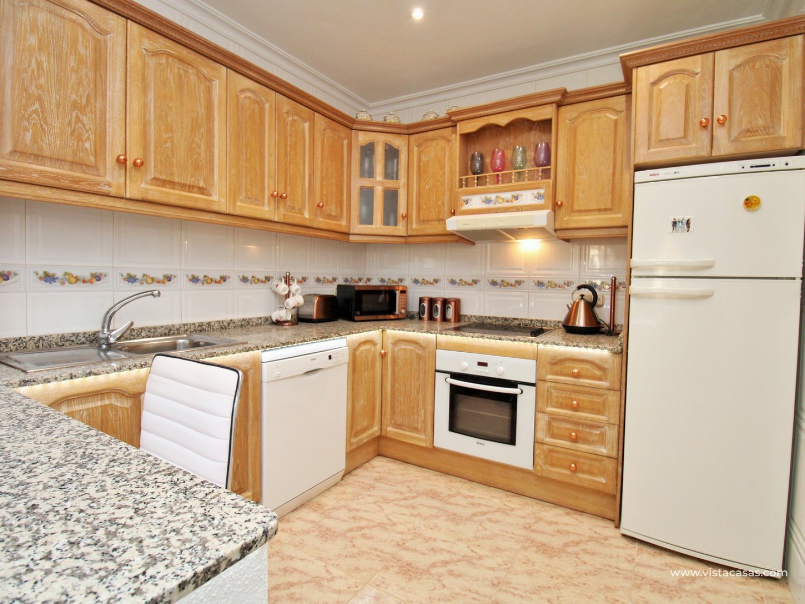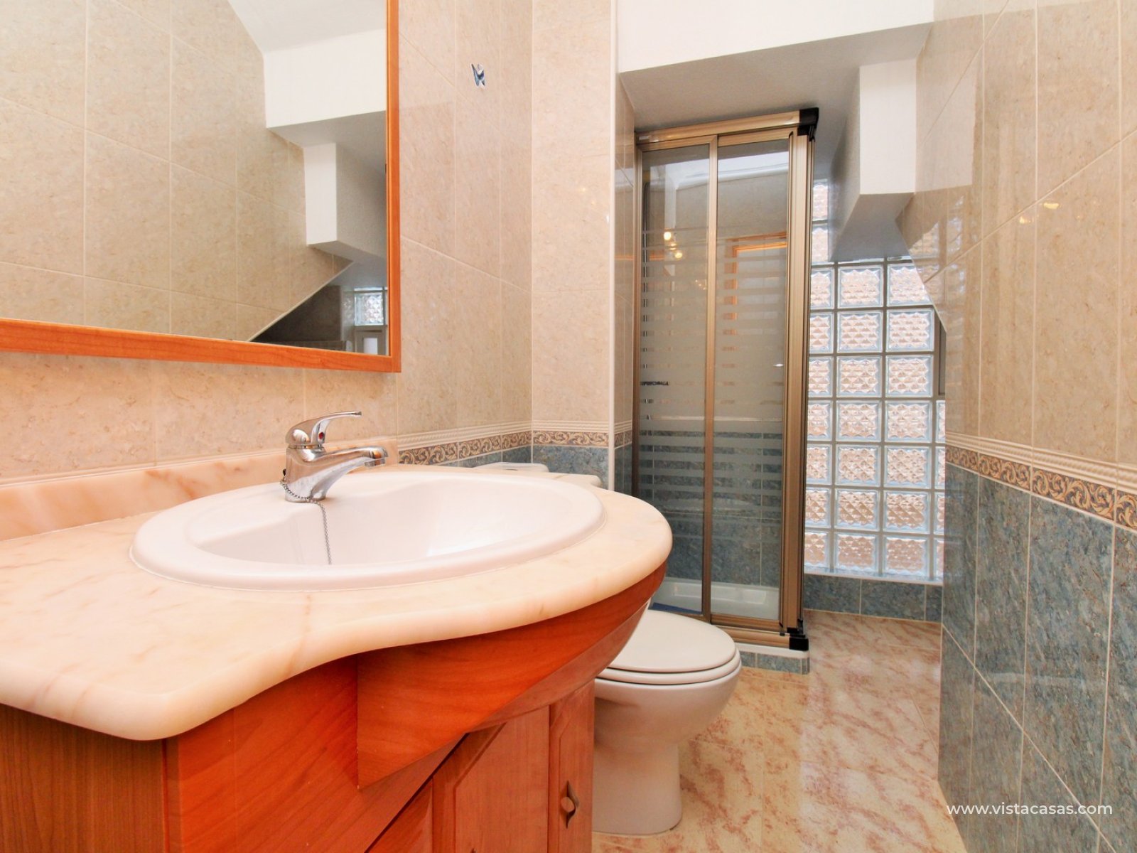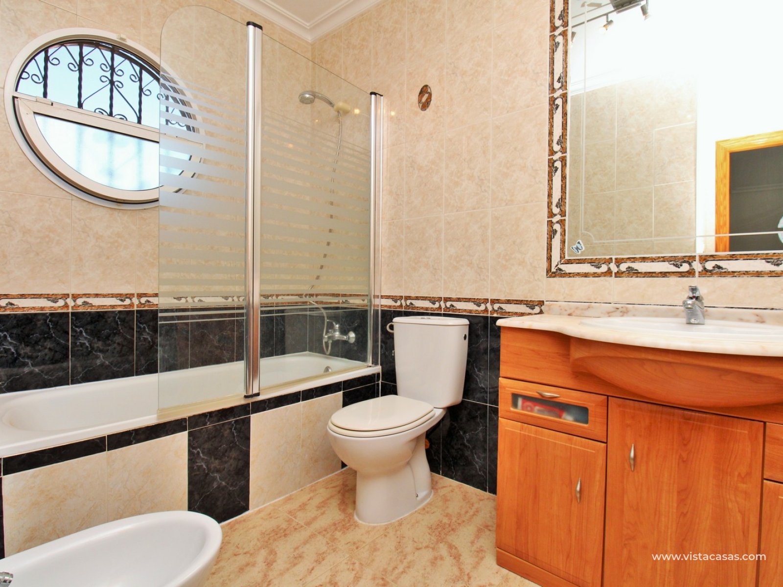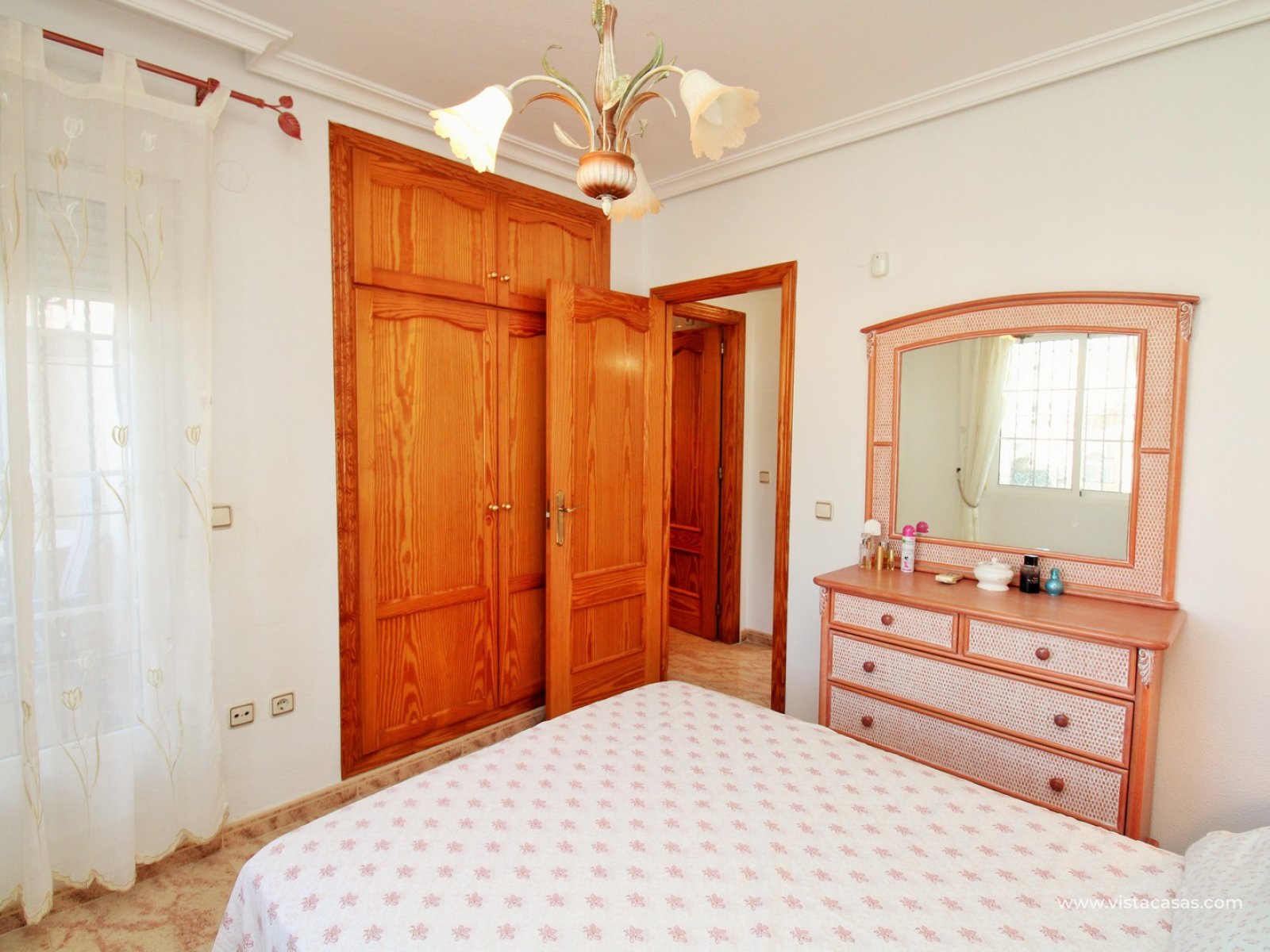 Le jardin est partiellement carrelé et comprend des zones plantées, offrant un bon équilibre entre espace extérieur et verdure. La propriété est située à proximité de la piscine communautaire et fait partie d’un quartier résidentiel prisé de Villamartin.