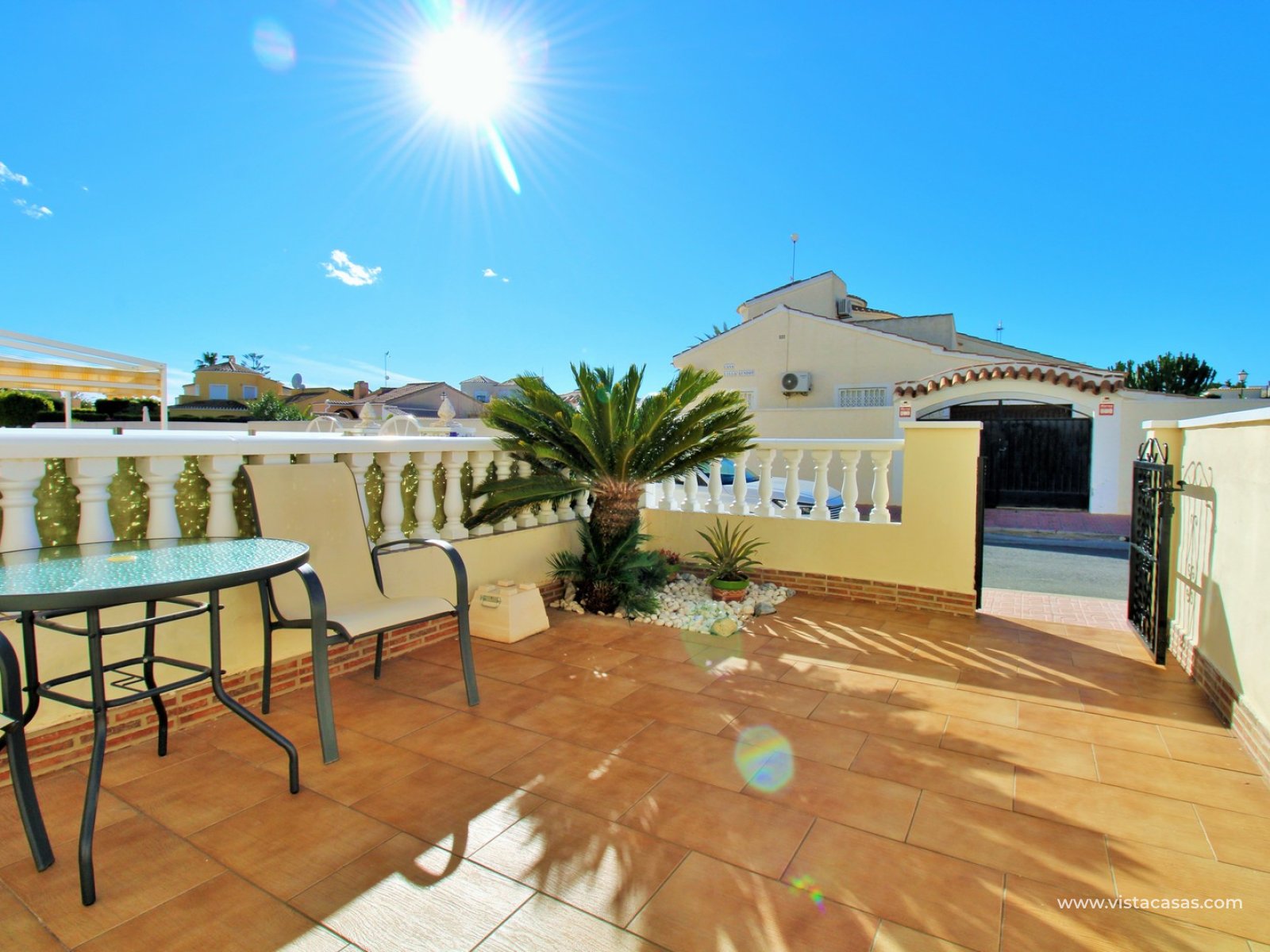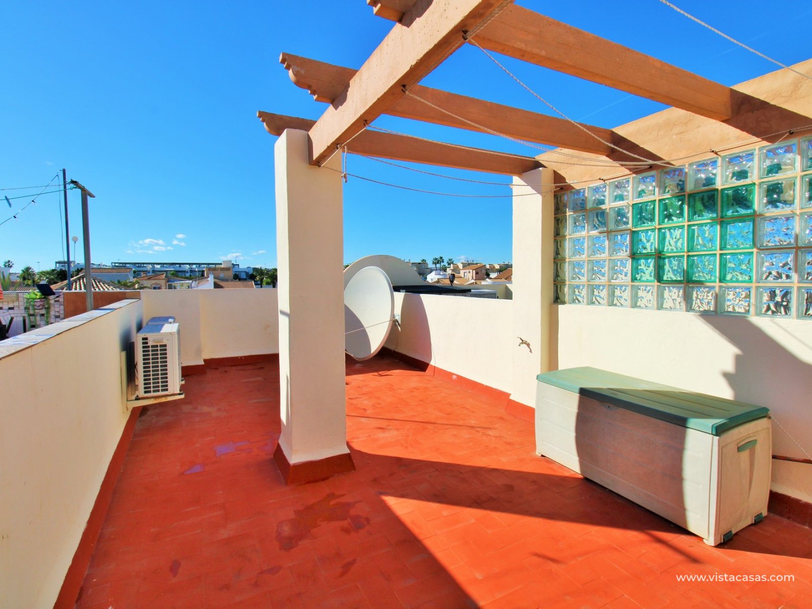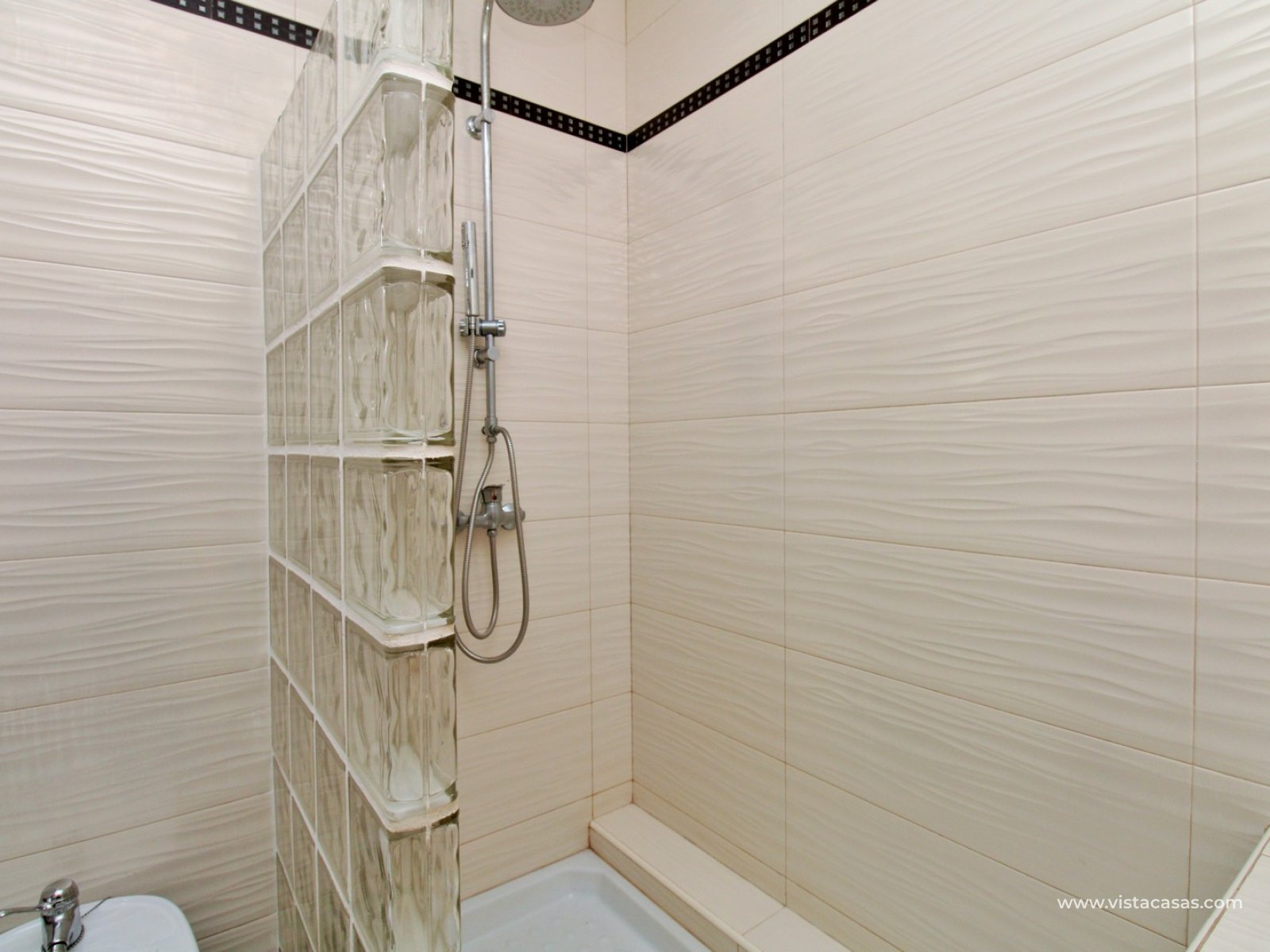 À l’étage se trouvent deux chambres doubles et une salle de bain moderne avec douche à l’italienne. La chambre principale dispose d’un balcon Juliet et la seconde chambre mène à une terrasse privée avec accès au solarium pleine longueur, offrant des vues vers La Manga.