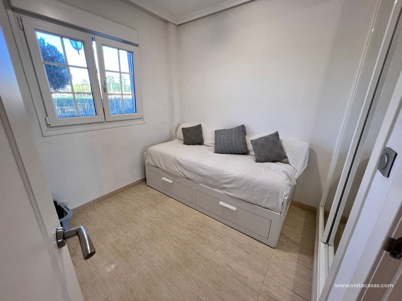 Nous avons le plaisir de vous présenter ce spacieux appartement d'angle de deux chambres, situé sur un grand terrain privatif au sein de la résidence sécurisée et intimiste El Raso. Composée de seulement 12 appartements, cette résidence fermée offre un cadre de vie paisible, intime et confortable. Cet appartement d'angle exposé plein sud bénéficie d'un espace extérieur exceptionnel, le distinguant des autres appartements du quartier. La résidence est accessible par un portail électrique et comprend un garage sécurisé avec une place de parking privative attenante à l'appartement. À l'avant du bâtiment se trouvent une piscine commune bien entretenue, entourée d'un jardin arboré, ainsi qu'un local de rangement commun. L'appartement se distingue notamment par ses généreux espaces extérieurs. À l'avant, une terrasse couverte avec deux pièces de rangement s'ouvre sur un vaste jardin latéral et arrière. Cet espace extérieur offre de nombreuses possibilités de détente, de réception ou pour profiter du climat agréable tout au long de l'année. À l'intérieur, l'appartement dispose d'un espace de vie lumineux et ouvert comprenant salon, salle à manger et cuisine, avec portes-fenêtres, volets roulants électriques et climatisation. Deux chambres spacieuses, chacune dotée d'une armoire intégrée, sont accessibles depuis le couloir. La chambre principale donne directement sur la terrasse arrière. On trouve également une salle de bains spacieuse avec douche et une buanderie pratique. Cet appartement allie le confort d'une maison facile d'entretien à l'espace et à l'intimité généralement offerts par une villa. Situé dans un quartier calme et prisé, à proximité de la côte, de divers commerces et d'un golf, il représente une opportunité de vie attrayante et unique.