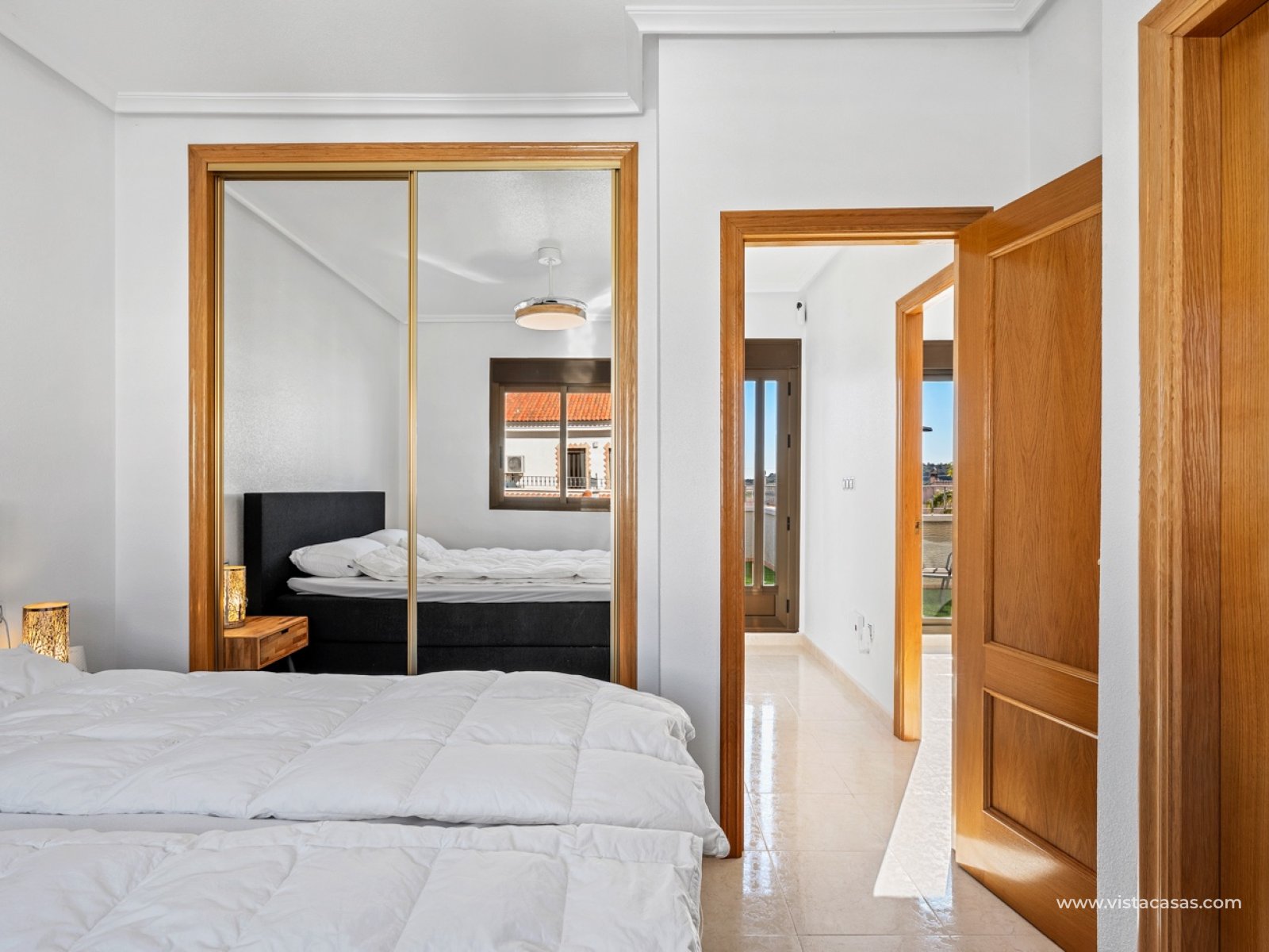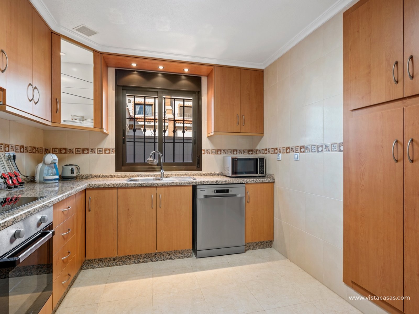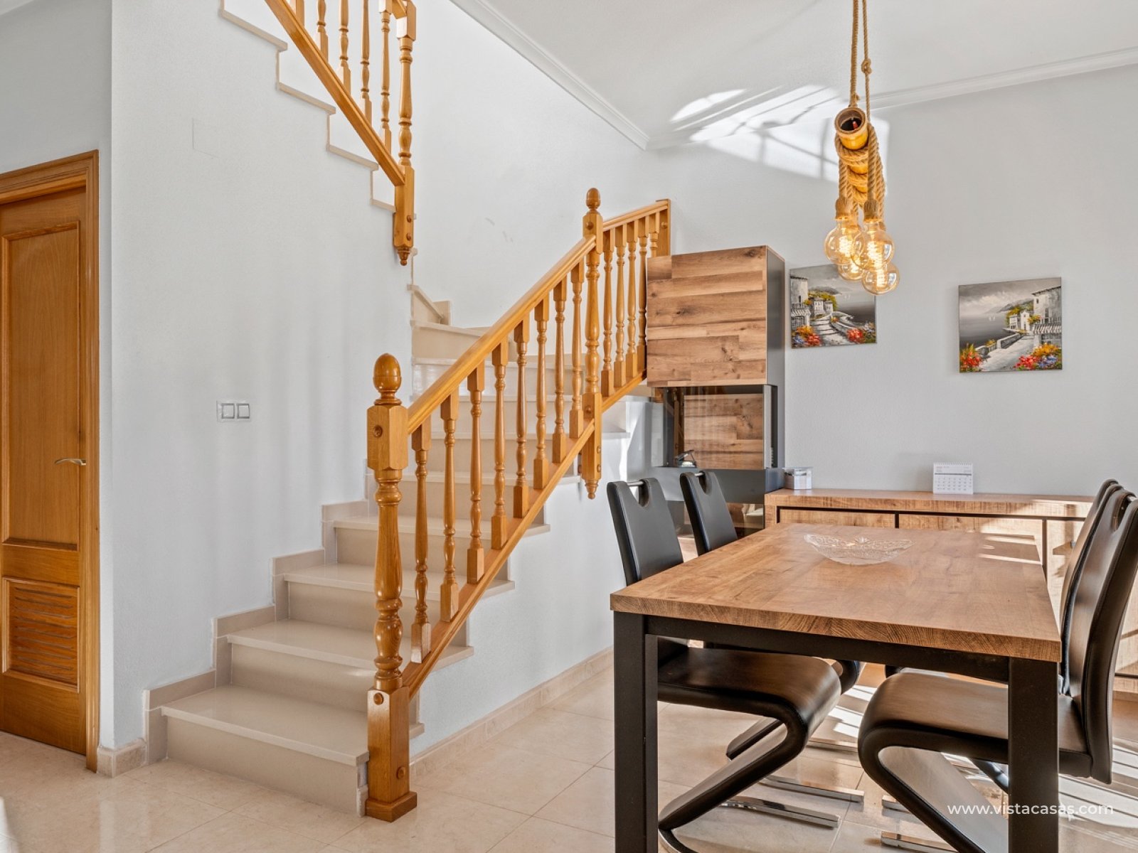 Charmante maison de ville avec jardin à Villas María – San Miguel de Salinas Cette maison de ville, en parfait état, comprend 3 chambres et 3 salles de bains et se situe dans le charmant complexe résidentiel Villas María à San Miguel de Salinas. C'est le logement idéal pour ceux qui recherchent un confort optimal sous le soleil espagnol, que ce soit pour y vivre à l'année ou pour les vacances. La maison est agencée de façon pratique et bien pensée. Au rez-de-chaussée, vous trouverez une chambre et une salle de bains, idéales pour les invités ou pour ceux qui préfèrent un logement de plain-pied. La cuisine séparée et entièrement équipée s'ouvre sur une terrasse attenante, parfaite pour prendre le petit-déjeuner au soleil. Le vaste espace de vie ouvert, comprenant salon et salle à manger, bénéficie d'une abondante lumière naturelle et s'ouvre sur un agréable jardin exposé sud-est, un endroit merveilleux pour profiter de la vie en plein air toute l'année. Il y a un grand parking souterrain sous la maison avec : une place de parking privée un local de rangement spacieux d'environ 15 m² La maison fait partie d'une urbanisation agréable et bien entretenue et se situe à seulement 2 km du centre du village , où vous trouverez toutes les commodités telles que des commerces, des restaurants, des écoles, une pharmacie et des terrasses accueillantes. San Miguel de Salinas est un charmant village espagnol authentique situé au sud de la Costa Blanca. Bénéficiant d'une situation légèrement surélevée entre les lagunes salées de Torrevieja et la mer Méditerranée, il offre des vues imprenables et un microclimat sain. Ce qui rend cet endroit si attrayant : À seulement 15 minutes en voiture des plages d'Orihuela Costa À proximité de plusieurs terrains de golf renommés tels que Las Colinas, Campoamor et Villamartín Bonnes liaisons avec les aéroports d'Alicante et de Murcie Un quartier résidentiel calme avec des résidents internationaux Marché hebdomadaire et place de village animée à l'ambiance locale San Miguel allie tranquillité et nature à une excellente accessibilité et à toutes les commodités à proximité immédiate — un lieu idéal pour ceux qui souhaitent découvrir l'Espagne authentique sans sacrifier leur confort. Communauté / VVE : 52 € / an Taxe foncière (Suma) : 350 €/an
