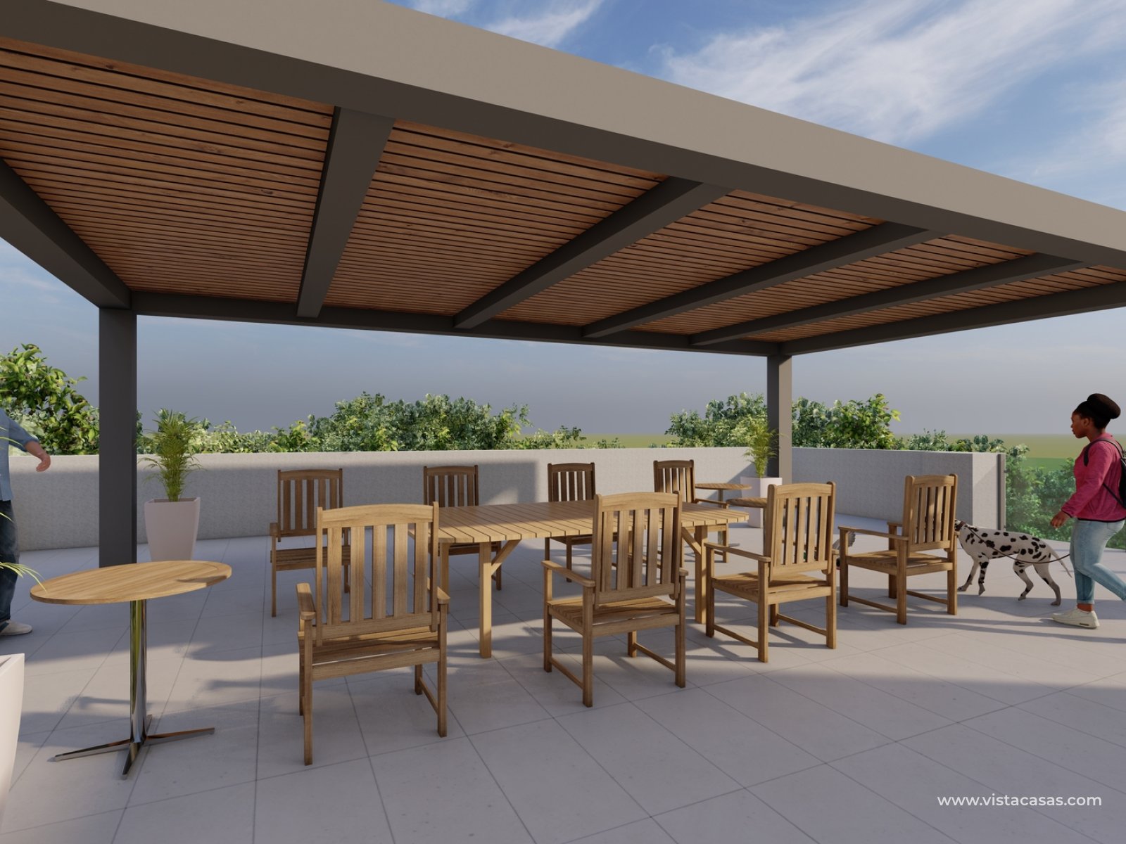 Les extérieurs sont conçus pour maximiser le plaisir du climat méditerranéen. Chaque propriété dispose d'un jardin privé, parfait pour les amateurs de jardinage ou ceux qui souhaitent un espace vert personnel. Les terrasses offrent un endroit idéal pour se détendre à l'extérieur, et la possibilité d'inclure une piscine privée ajoute une touche de luxe et d'exclusivité. Les pergolas offrent de l'ombre et du confort, permettant de profiter de l'extérieur même les jours les plus ensoleillés. Pour ceux qui recherchent un espace de loisirs supplémentaire, certains types offrent la possibilité d'un solarium.