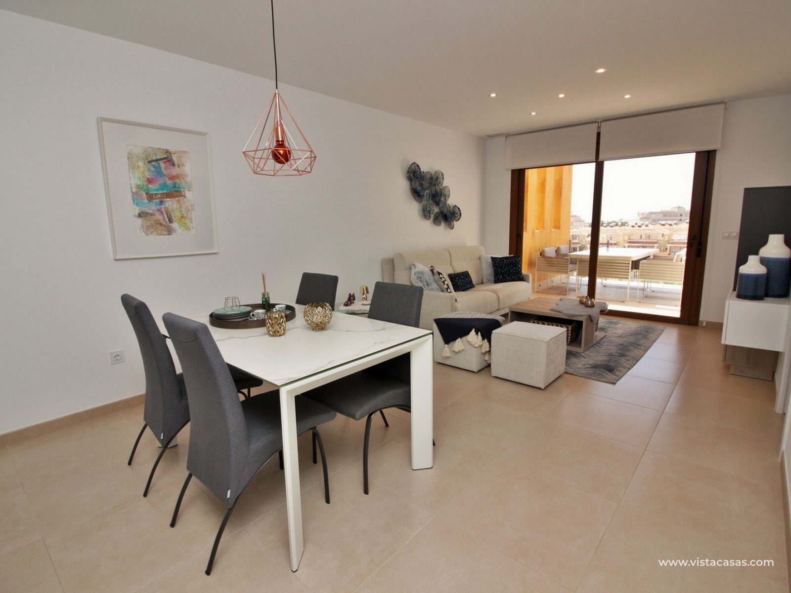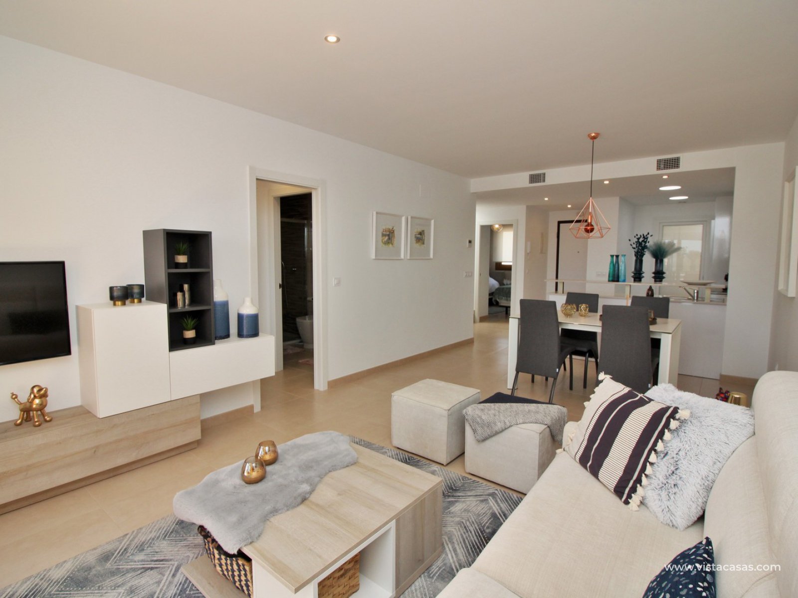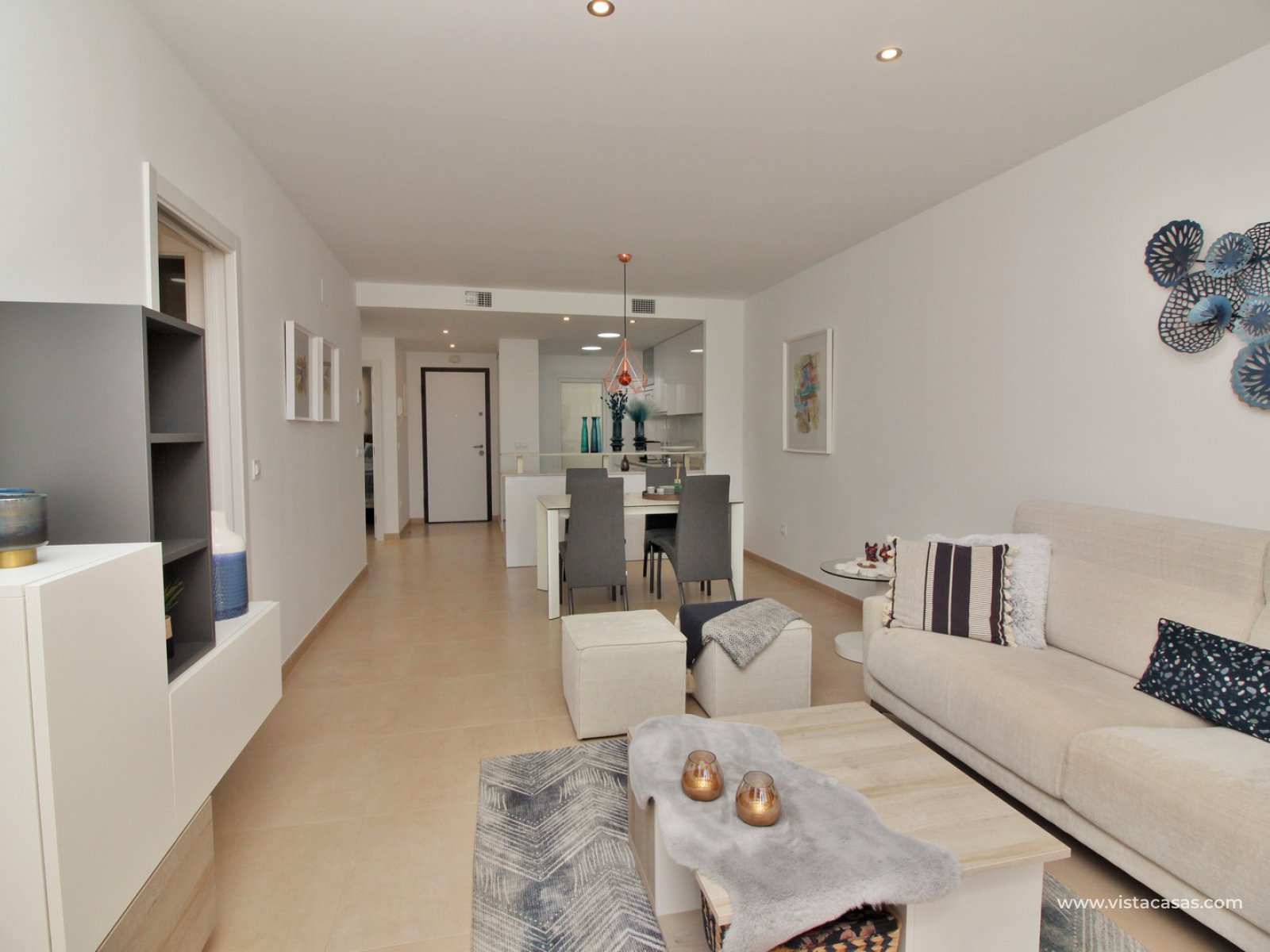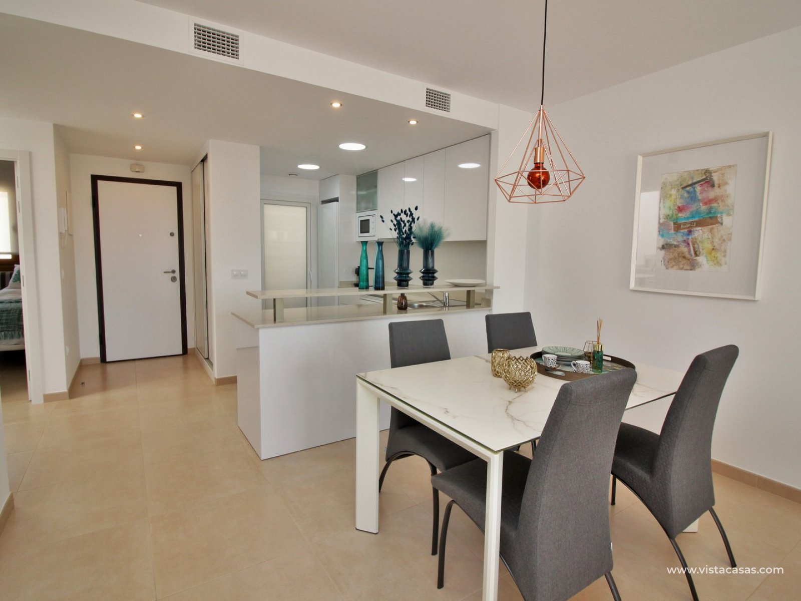 ETAT NEUF ! Un appartement de revente impeccable de 2 chambres et 2 salles de bains donnant sur la piscine à vendre à Residencial Gala à Los Dolses, Orihuela Costa. Le complexe a été construit fin 2019 et offre de superbes installations, notamment une grande piscine, une piscine et une aire de jeux pour enfants, des jacuzzis et un ascenseur à tous les étages, le tout situé dans une communauté fermée sécurisée. L'appartement est orienté sud-est et offre de belles vues sur la piscine, la mer et les jardins communaux depuis son grand balcon couvert. L'appartement est vendu entièrement équipé avec des meubles de haute qualité, des appareils électroménagers et la climatisation par conduits partout, ainsi que le chauffage au sol dans les deux salles de bains. Il s'agit d'une propriété à voir absolument, qui est dans un état de maison témoin, une solution clé en main parfaite si vous recherchez un appartement nouvellement construit, sans attendre !