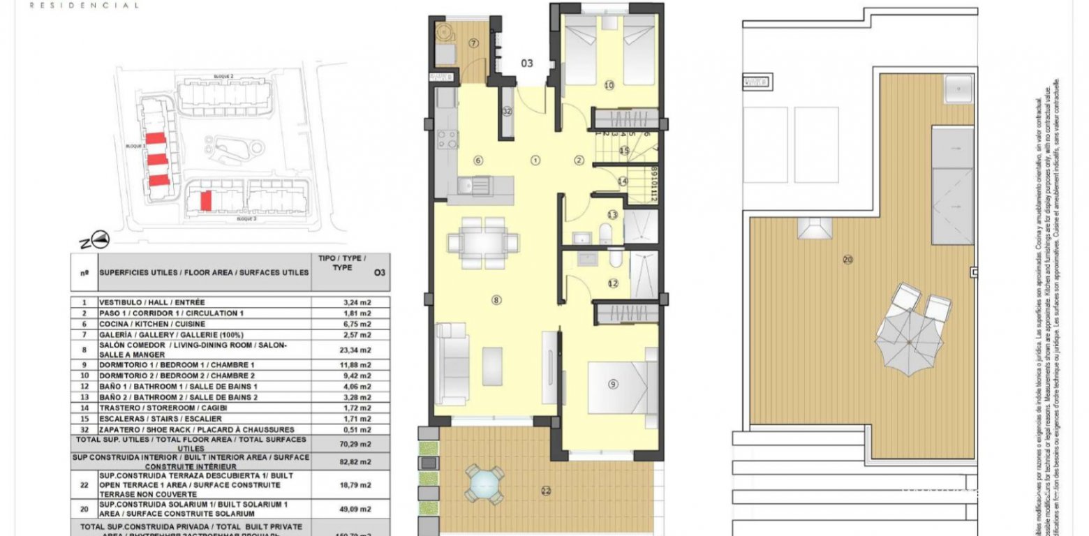 Residencial Gala a été construit par un promoteur renommé, reconnu pour sa qualité de construction et ses finitions de haut de gamme. Le complexe offre à tous les propriétaires l'utilisation d'une grande piscine, de jacuzzis, d'une aire de jeux pour enfants, de terrains de pétanque et d'un grand espace vert entourant la piscine. Situé à seulement 7 minutes à pied du centre commercial Los Dolses, qui offre de nombreux services dont un supermarché, une banque, des bars, des restaurants, des magasins, un arrêt de bus, etc... Le centre commercial de la Zenia est à 20 minutes à pied et à seulement quelques minutes en voiture de la plage de Cala Bosque (La Zenia).