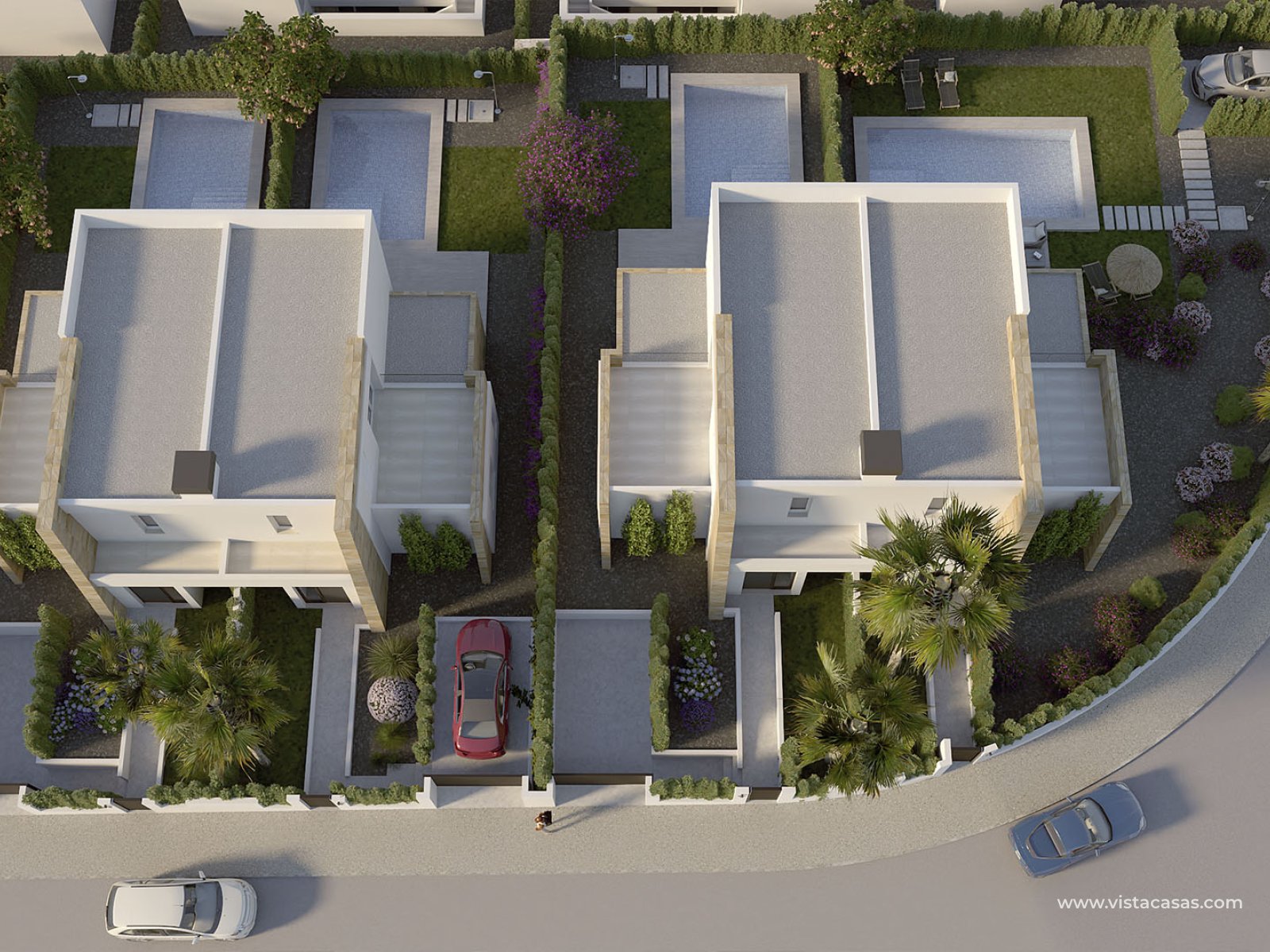 Deze rijwoningen zijn een uitstekende keuze voor degenen die een woning willen kopen dicht bij de Alicante-kust, waarbij luxe en functionaliteit op één plek worden gecombineerd. Met hun interieurontwerp dat gericht is op kwaliteit en efficiëntie, creëren deze huizen een gezellige en moderne sfeer die uitnodigt om van elke hoek te genieten. Mis de kans niet om te wonen in deze exclusieve enclave aangeboden door Vistacasas, waar comfort en stijl slechts een paar stappen van de Middellandse Zee verwijderd zijn.