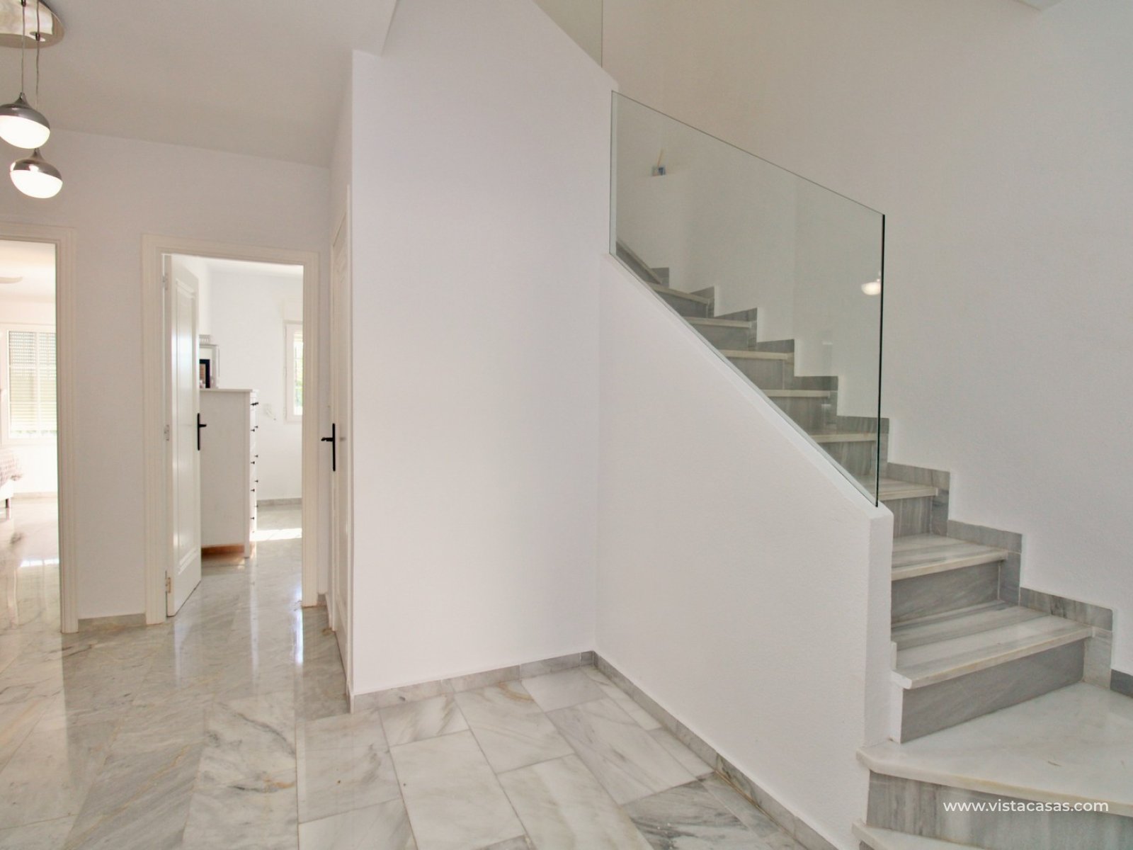Deze prachtige vrijstaande villa met 3 slaapkamers en 2 badkamers ligt op een unieke frontline locatie op het prestigieuze Las Ramblas Golf resort, met schitterend uitzicht over de golfbaan, het omliggende landschap en de Middellandse Zee. Slechts vijf minuten lopen van het clubhuis met restaurant en driving range, en dicht bij het commerciële centrum La Fuente met talrijke bars en restaurants. De Blauwe Vlag-stranden liggen op minder dan tien minuten rijden.