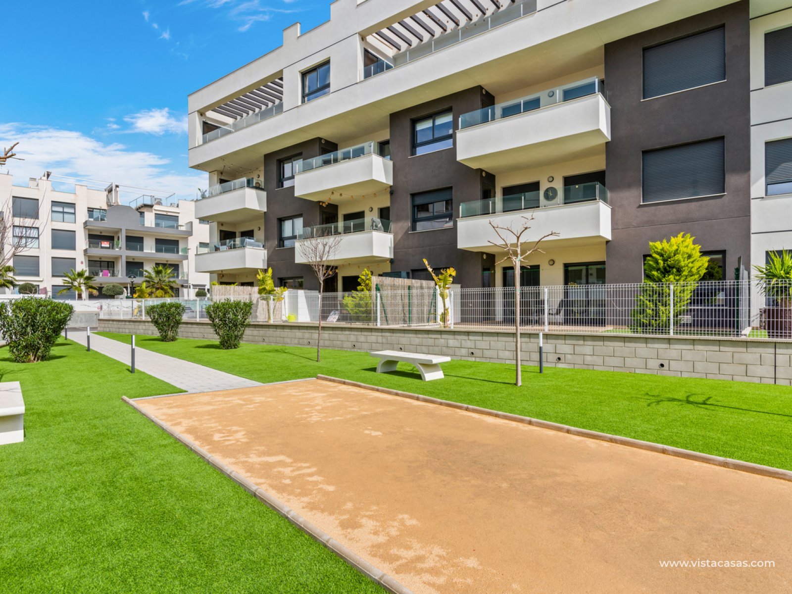 Dit modern penthouse appartement met 2 slaapkamers en 2 badkamers is gesitueerd in Villamartin, Alicante, op een geweldige locatie en op slechts een paar minuten wandelen naar alle lokale voorzieningen (restaurants, bars en winkels). Het fantastische strand van La Zenia en het populaire winkelcentrum La Zenia Boulevard zijn ook op minder dan 10 minuten rijden. Villamartin Plaza en Villamartin Golf zijn op minder dan 4 minuten te bereiken. De woning bestaat uit een ruime woonkamer/eetkamer, een moderne open keuken in U-vorm, elektrische rolluiken, airconditioning (koeling/verwarming), een grote slaapkamer met garderobe en een en-suite badkamer, een tweede slaapkamer met garderobe en een extra badkamer met inloopdouche. Via de schuifdeuren komt u op het terras (met kleine berging) terecht waar u de hele dag van de zon kunt genieten en er is ook een enorm prive dakterras/solarium met een buitenkeuken, buitendouche en met een prachtig uitzicht. Er is tevens een privé parkeerplaats inbegrepen in de prijs. Op het domein zijn mooie gemeenschappelijke tuinen voorzien met zwembad, een petanquebaan, een kinderspeeltuin en een park om te ontspannen. Deze appartementen bieden een fantastische prijs-kwaliteitverhouding en de locatie is echt geweldig met alle bars, restaurants en alle andere voorzieningen op wandelafstand. Het Villamartin-gebied is erg populair bij toeristen en het grootste deel van de bevolking bestaat uit West-Europese expatgemeenschappen die zich er in de afgelopen 10 jaar hebben gevestigd, waardoor het dorp vrijwel is veranderd in een modern ogende stadje. Er zijn ook verschillende golfbanen in de buurt en talrijke witte zandstranden.